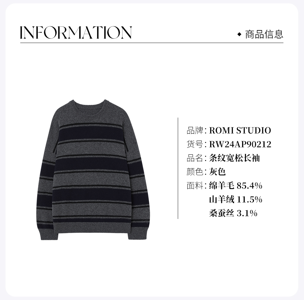 ROMI STUDIO山羊绒绵羊毛桑蚕丝混纺软糯条纹套头毛衫RW24AP90212
