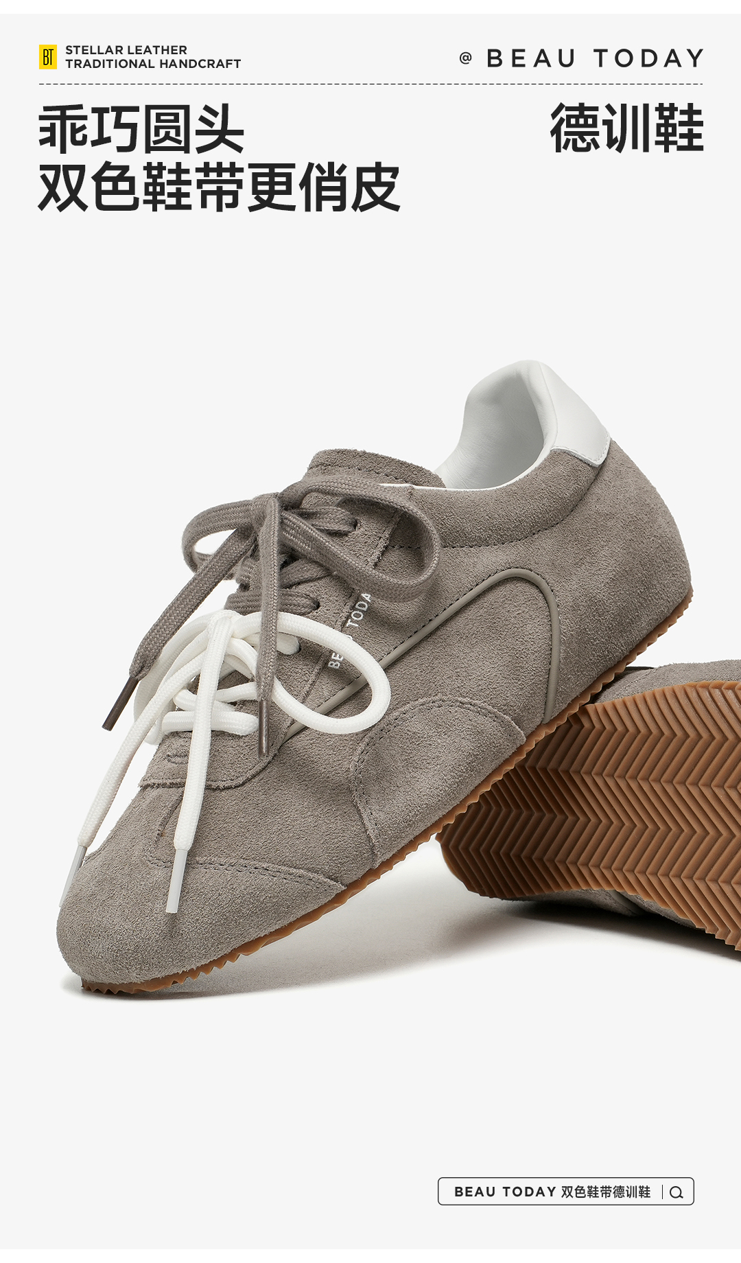 BeauToday 双鞋带休闲鞋阿甘鞋拼色平底鞋29906