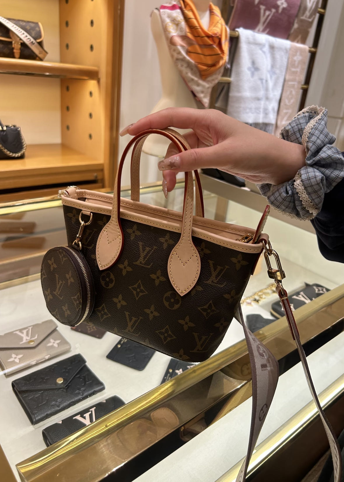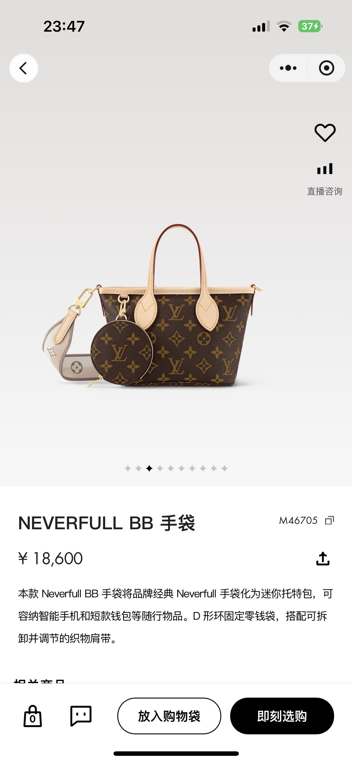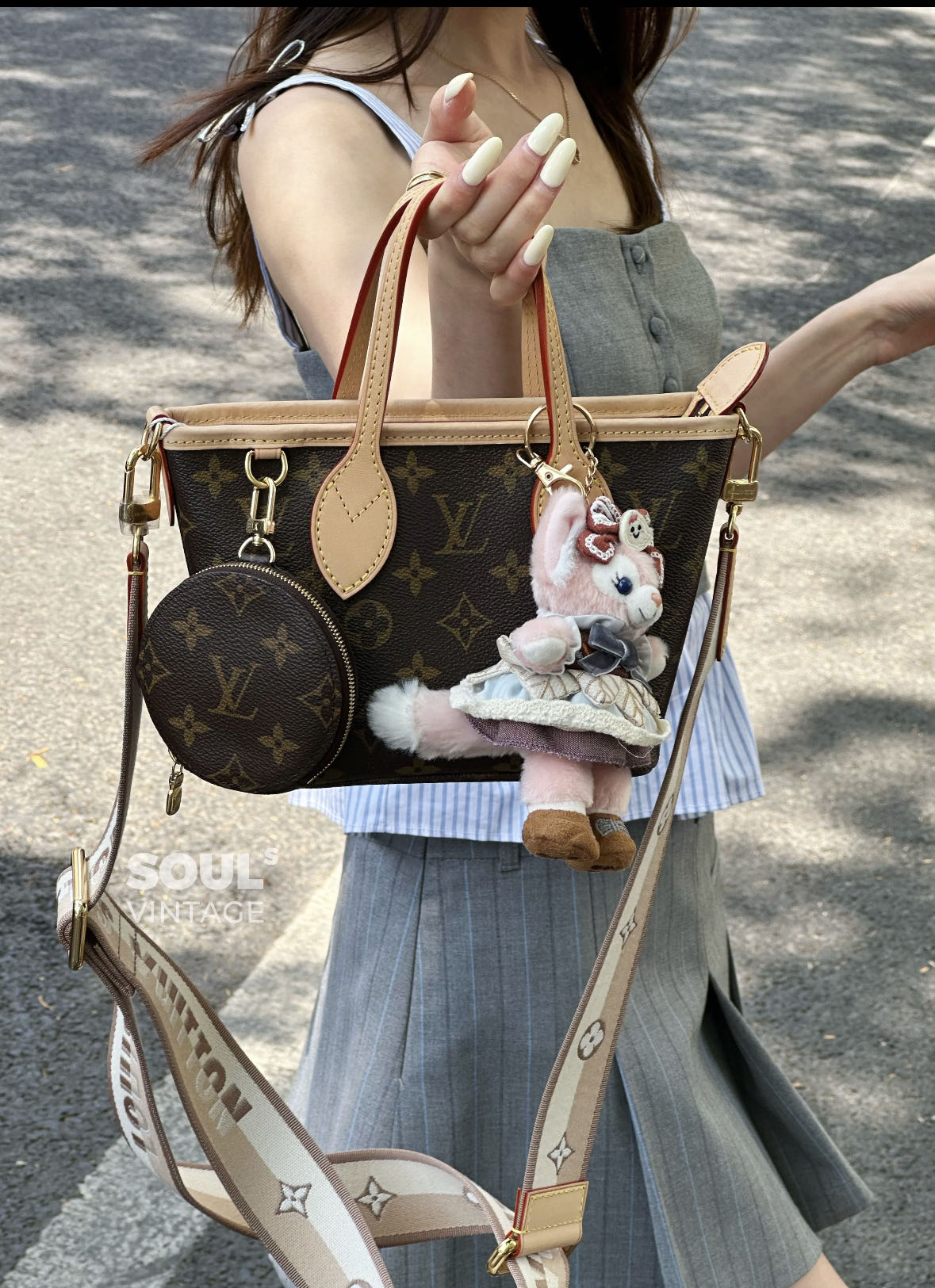 热门重磅复刻系列‼️Neverfull BB手袋将品牌经典Neverfull 手袋化为迷你托特包,改变了以往笨重的感觉,整体特别精致小巧可爱的一只,包包+零钱包挂件+宽尼龙肩带,三合一的配置 ,是近两年很流行这种刺绣宽肩带,搭配老花会比较活泼很多!在一支手机就能走天下的时代,包包的容量够用就好,可容纳智能手机和短款钱包等随行物品。