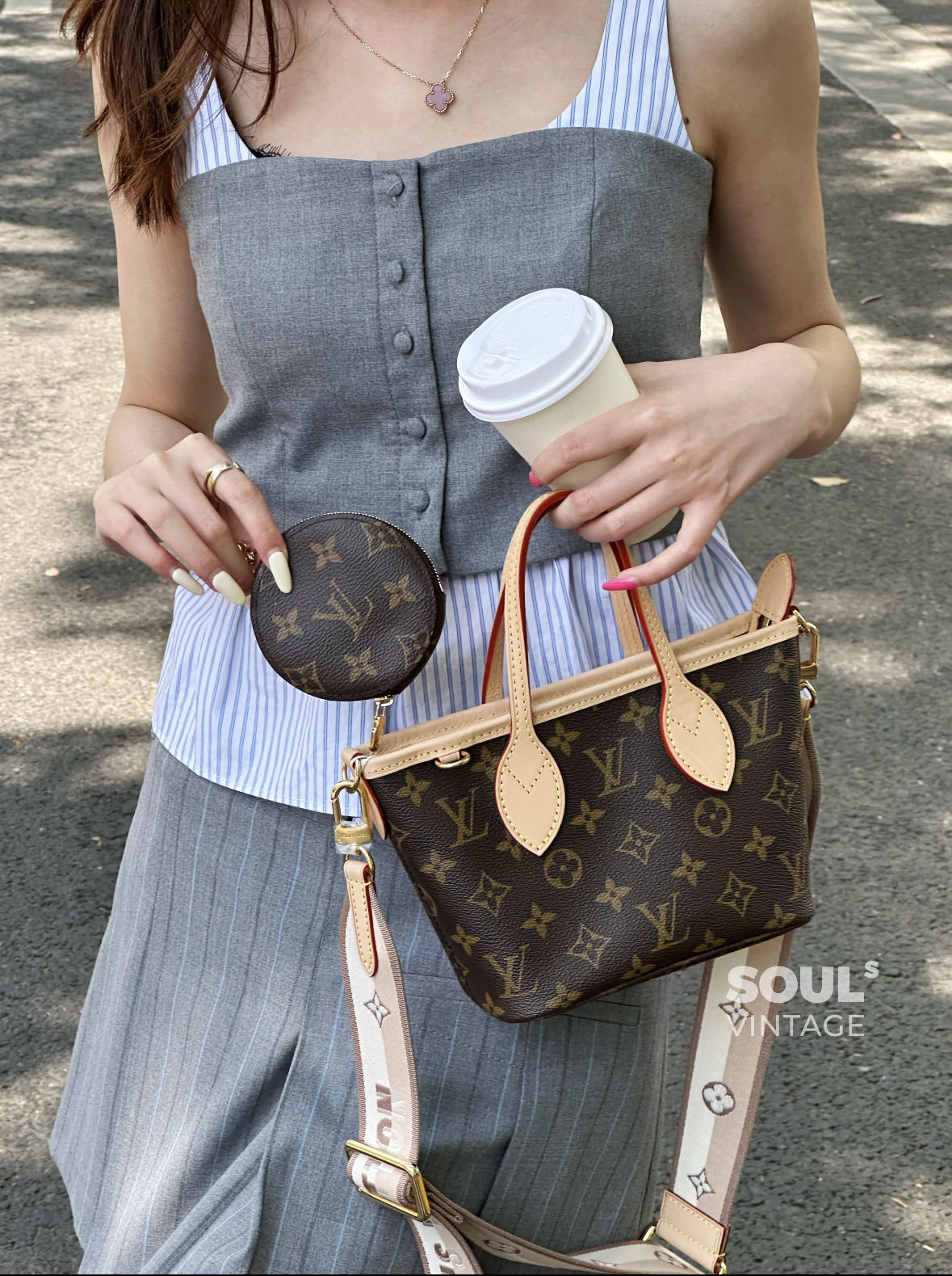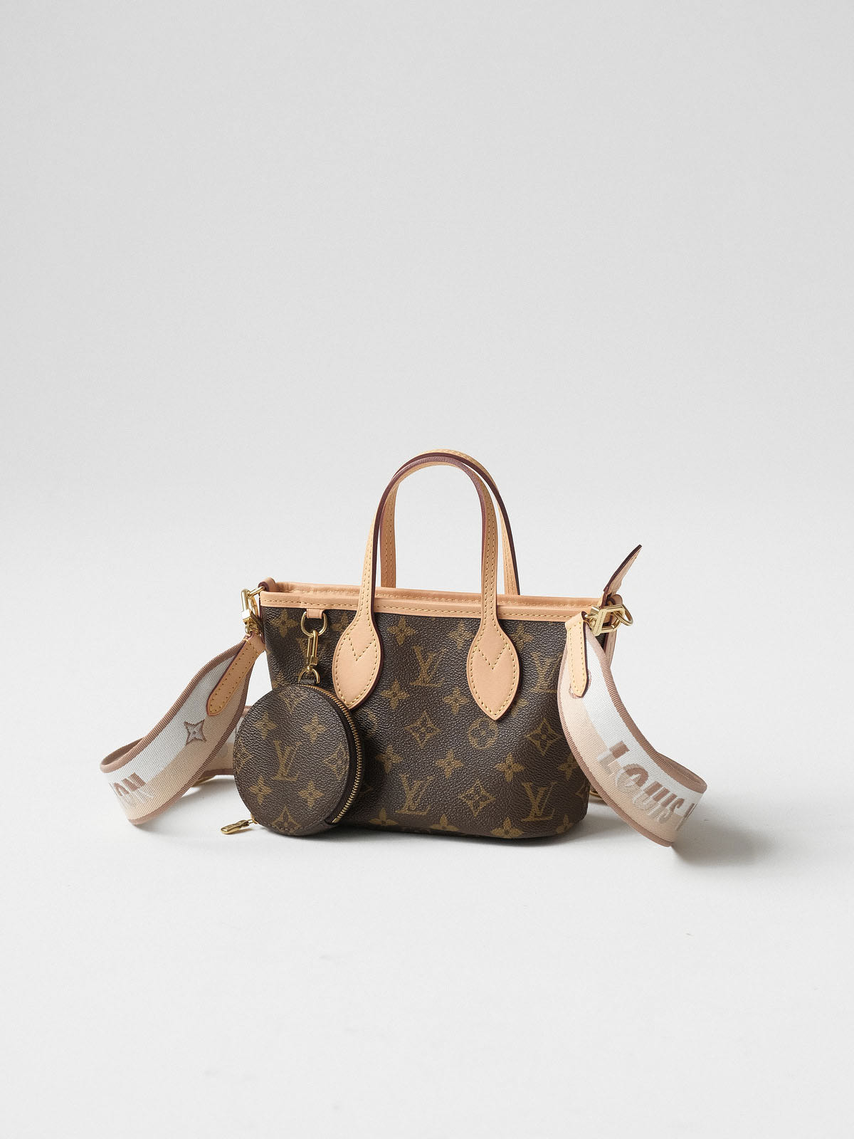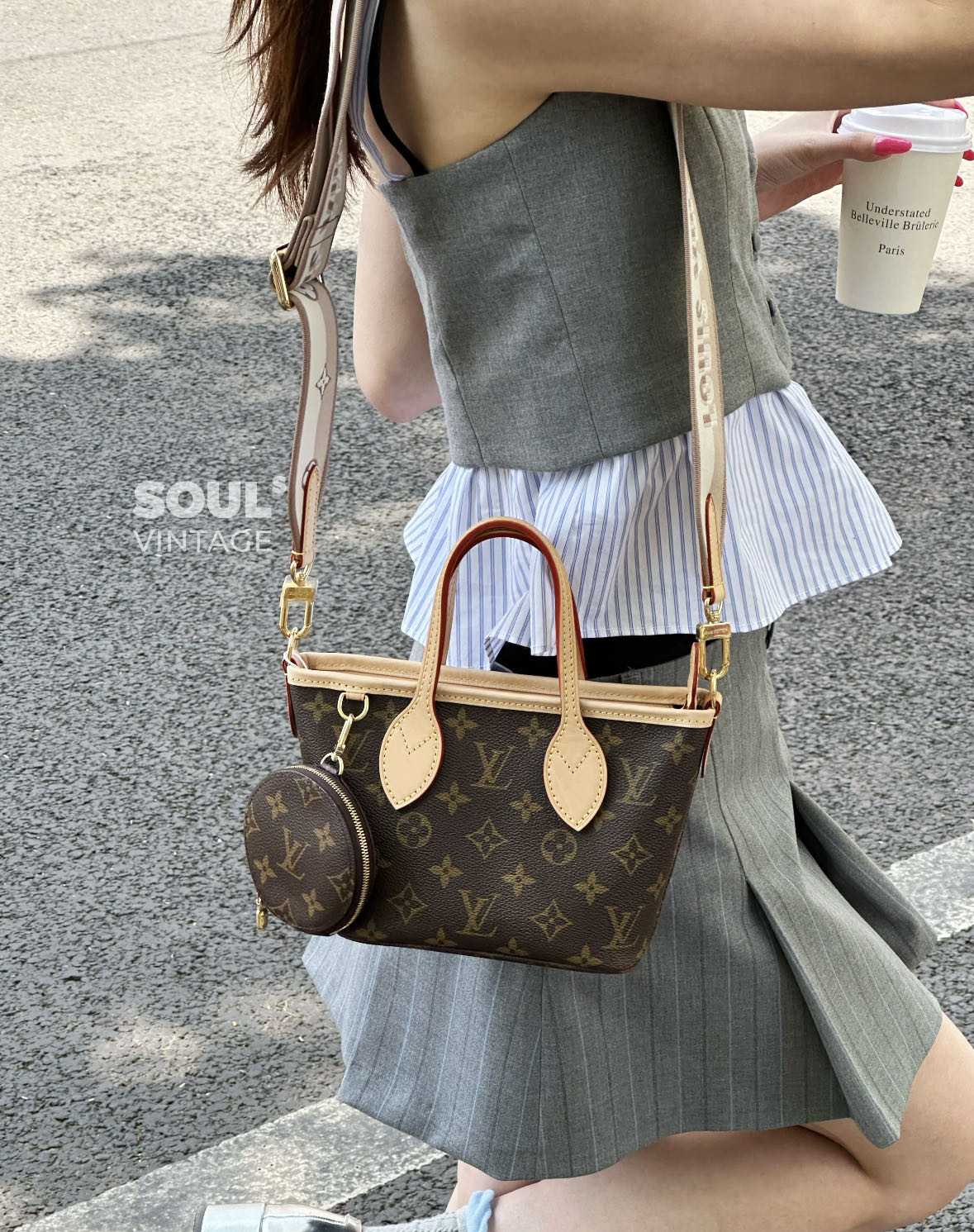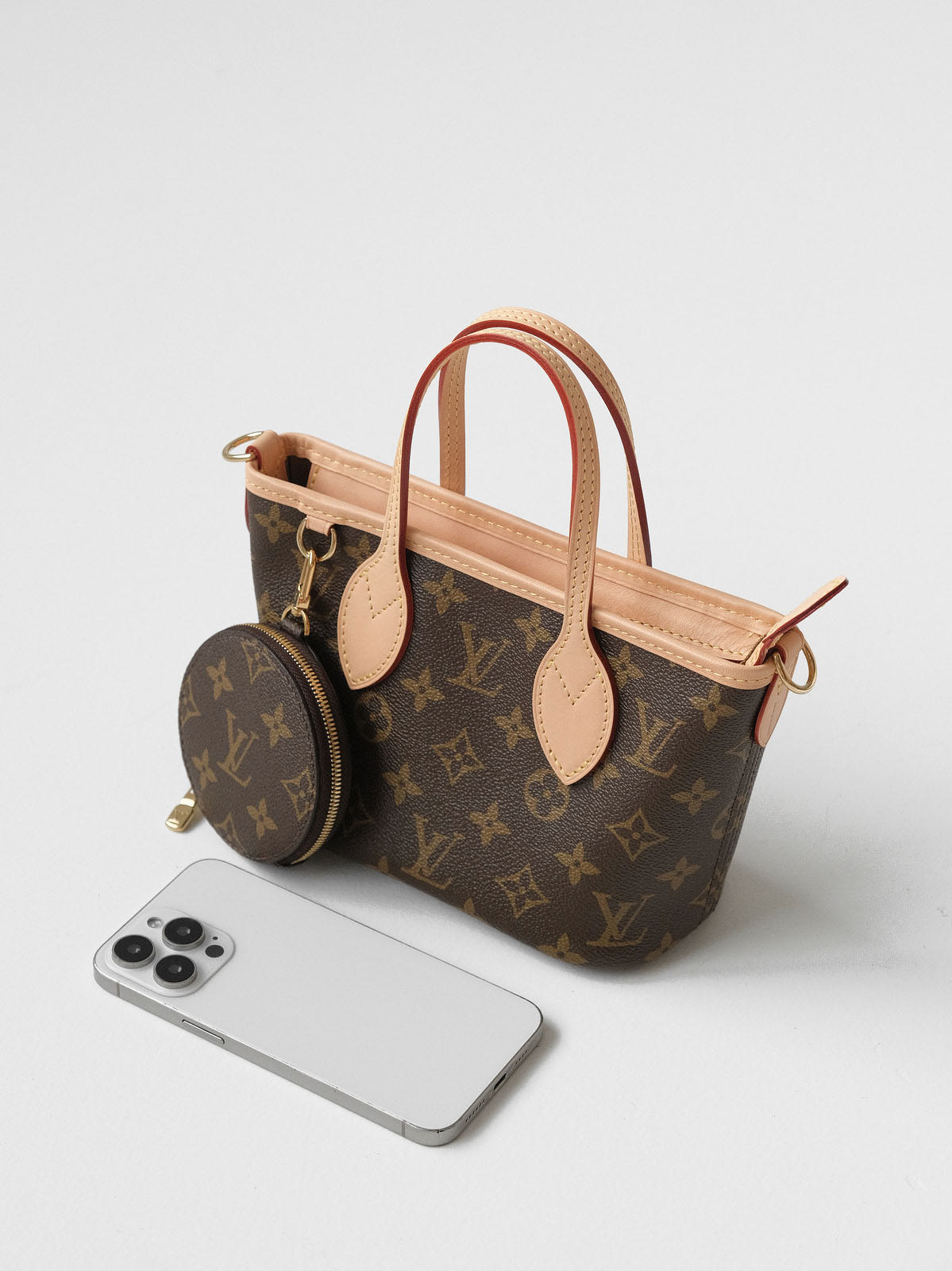 热门重磅复刻系列‼️Neverfull BB手袋将品牌经典Neverfull 手袋化为迷你托特包,改变了以往笨重的感觉,整体特别精致小巧可爱的一只,包包+零钱包挂件+宽尼龙肩带,三合一的配置 ,是近两年很流行这种刺绣宽肩带,搭配老花会比较活泼很多!在一支手机就能走天下的时代,包包的容量够用就好,可容纳智能手机和短款钱包等随行物品。