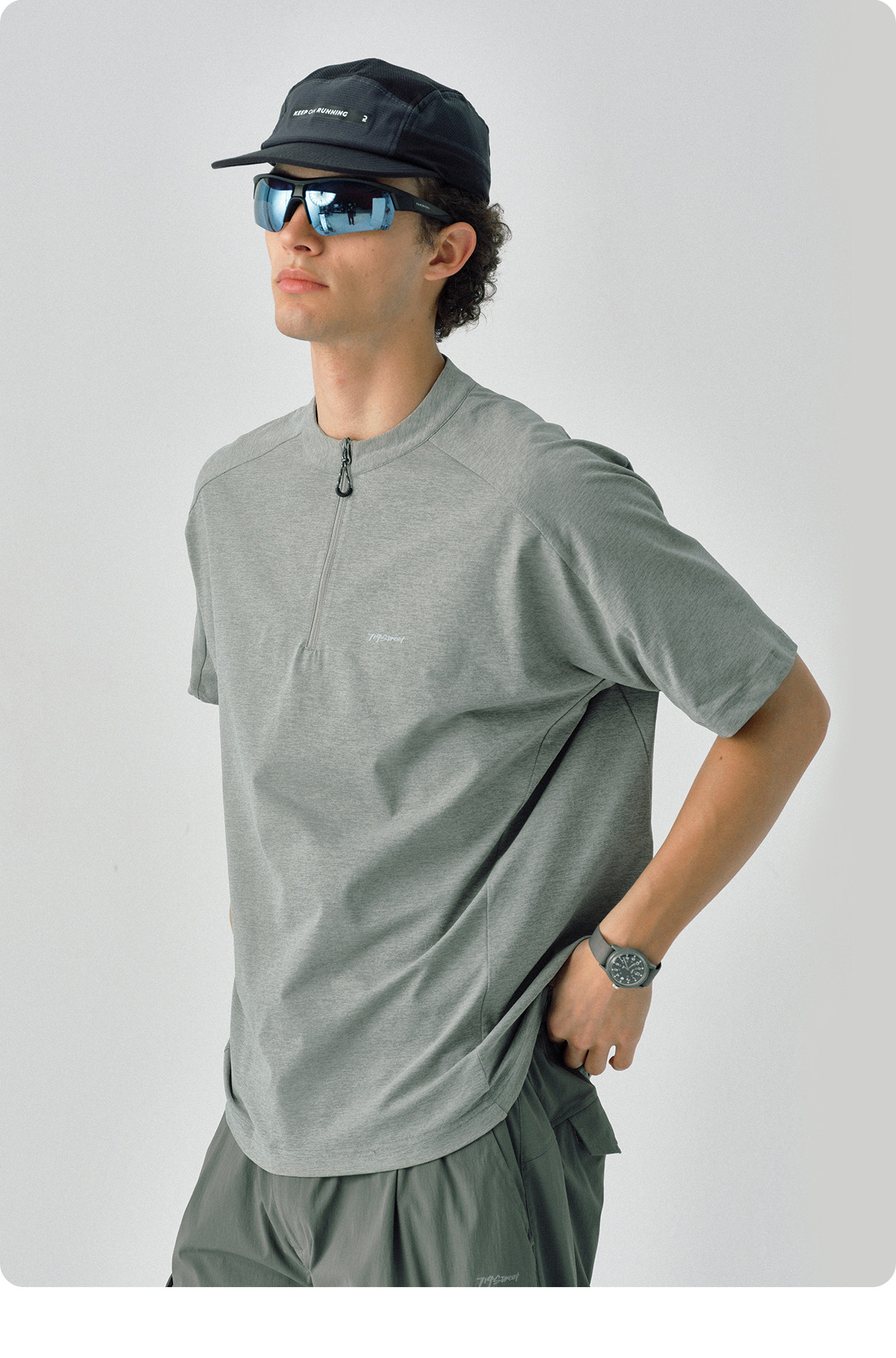 714street撞色拼接网眼透气运动短袖 2026夏季凉感速干情侣T恤男