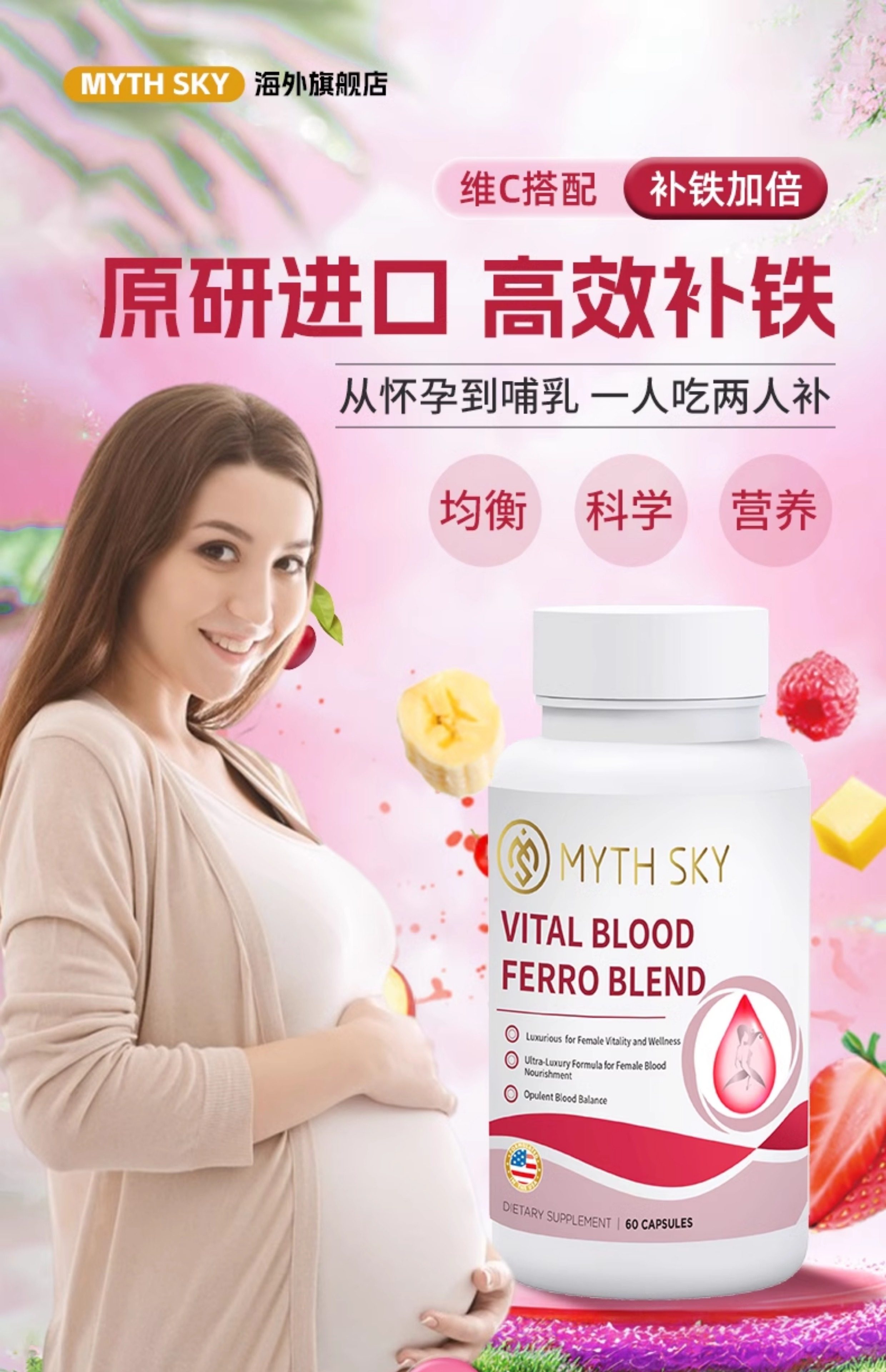 mythsky补铁剂胶囊补铁片贫血孕妇补铁剂铁元素官方正品秘境天空