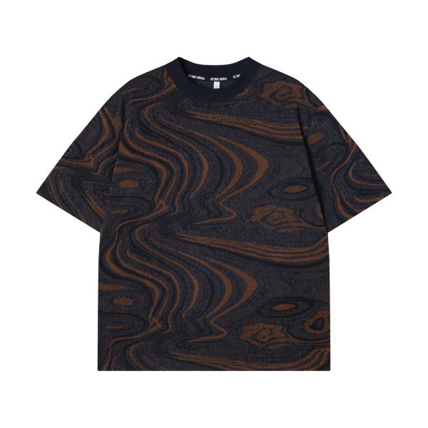 T2630夏季高级感新款美式抽象撞色圆领短袖T恤小众设计百搭宽松上衣