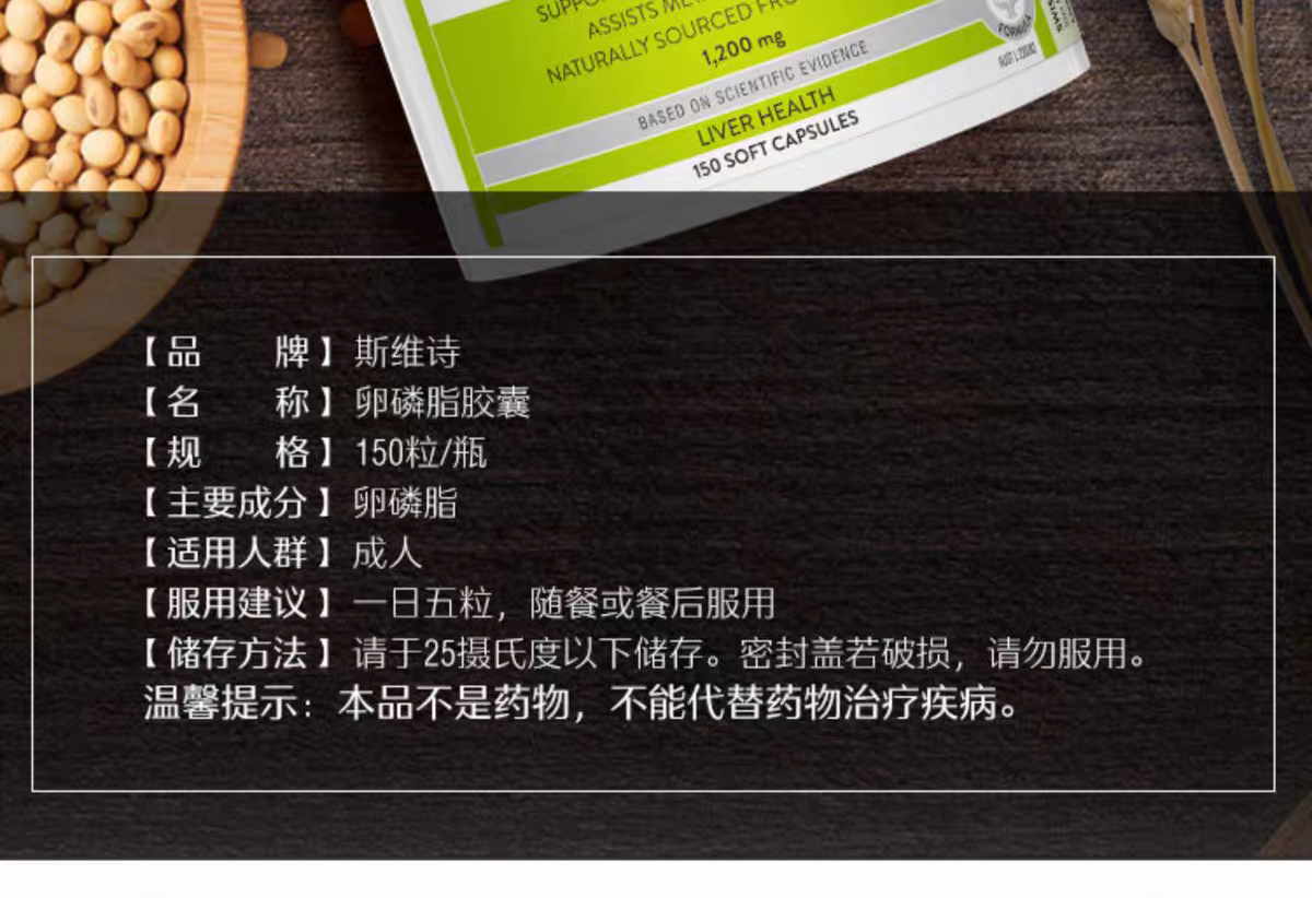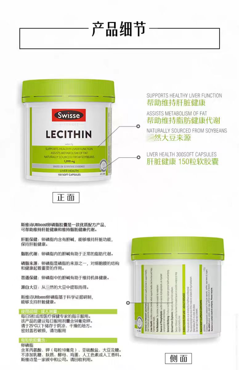 斯维诗swisse 大豆卵磷脂软胶囊成人中老年健康营养150粒*1瓶
