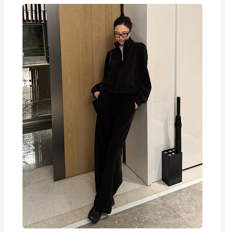 ROMI STUDIO“冬日松弛”双面摇粒绒弹力松紧运动休闲裤RW24WXW0805