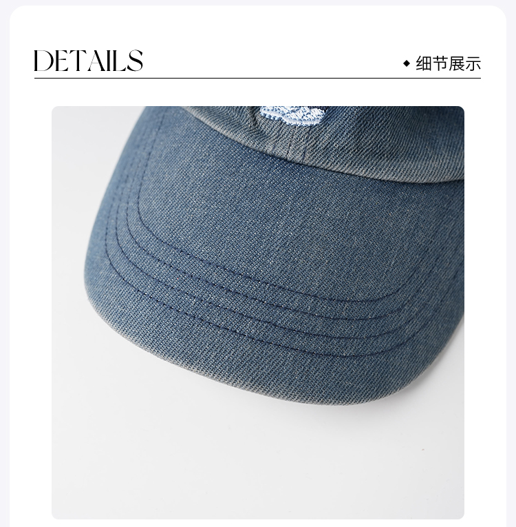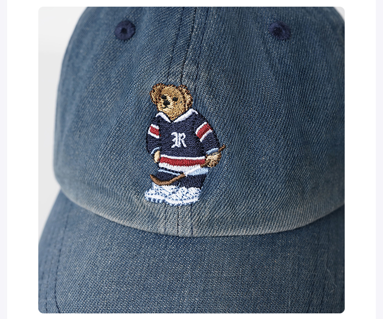ROMI STUDIO“美式复古”牛仔棉洗水做旧小熊刺绣棒球帽405C2005
