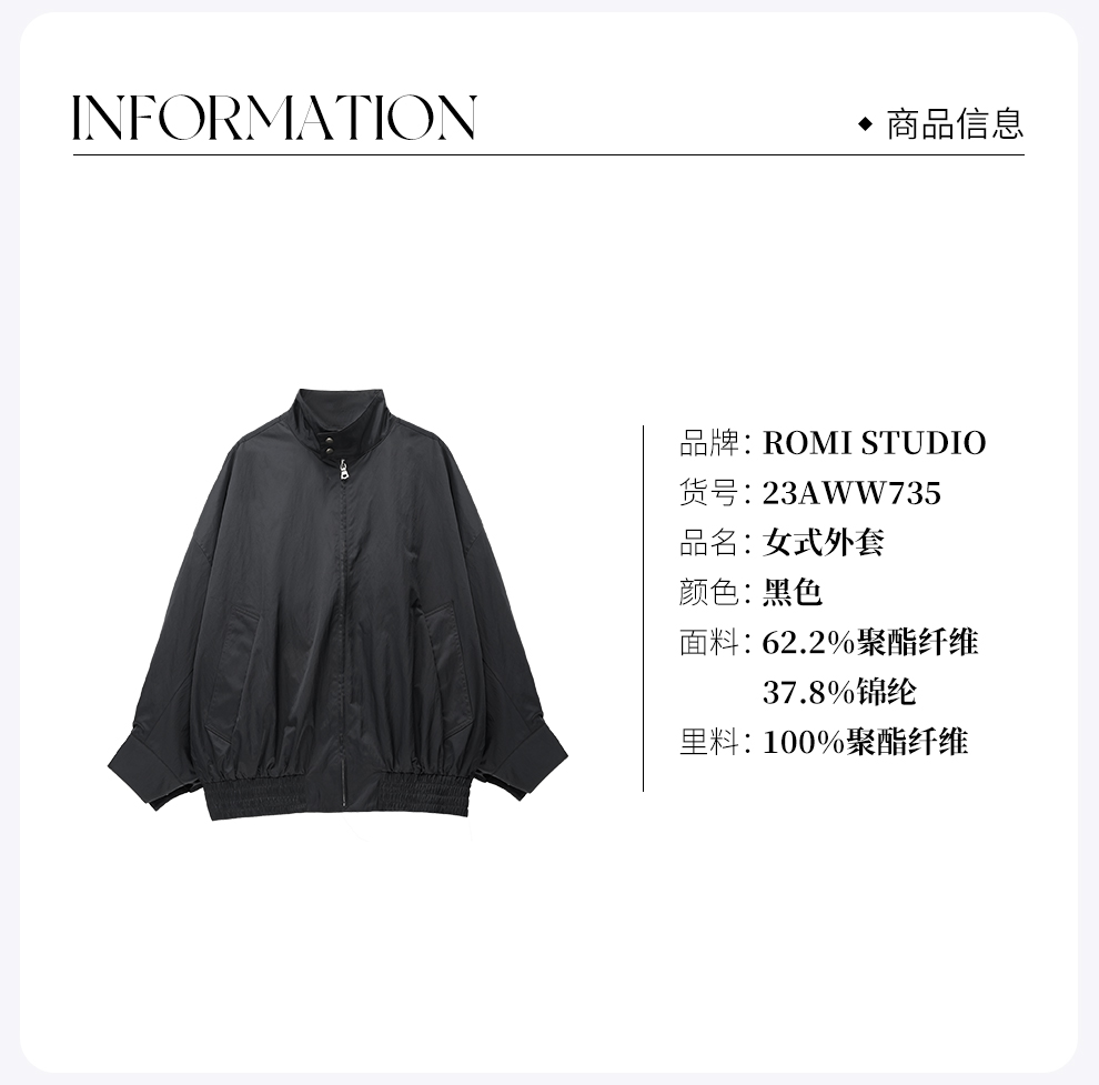 ROMI STUDIO“Cozy Design”宽松立领拉链时尚百外套23AWW735