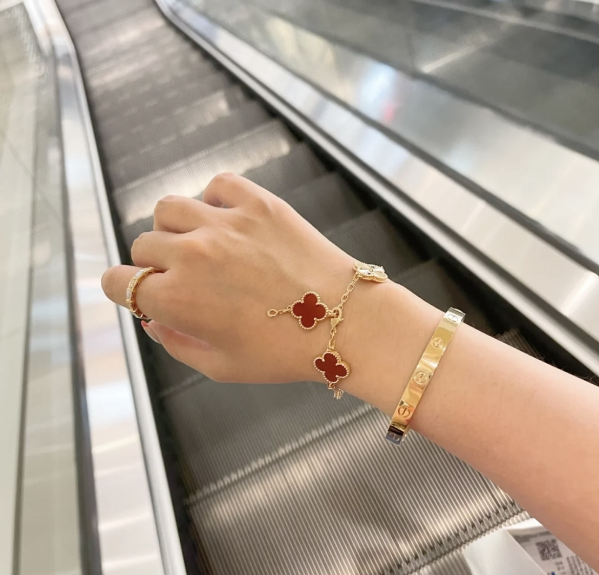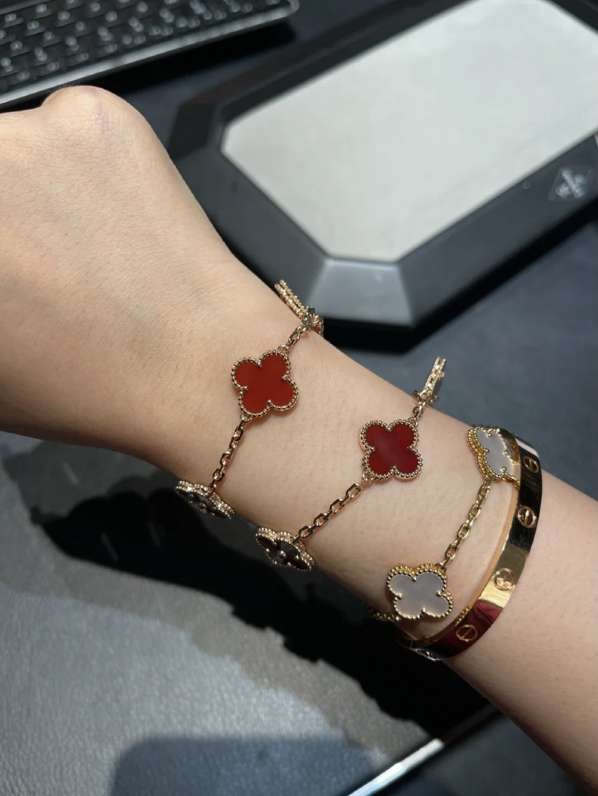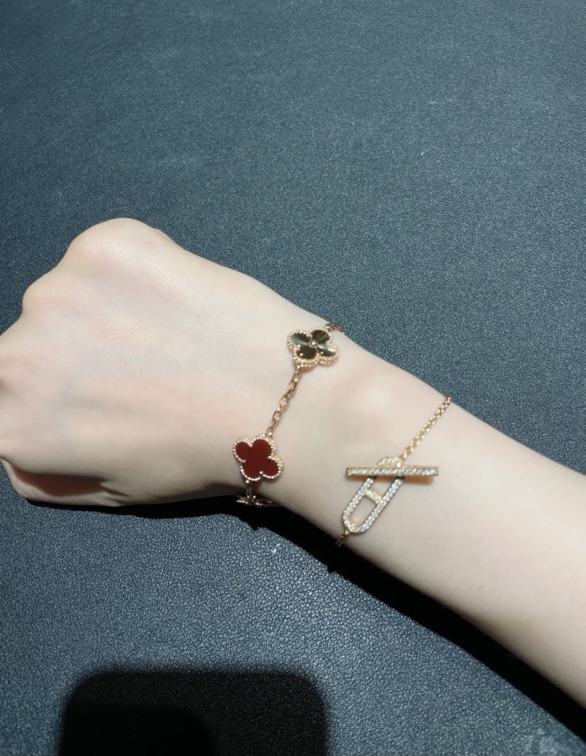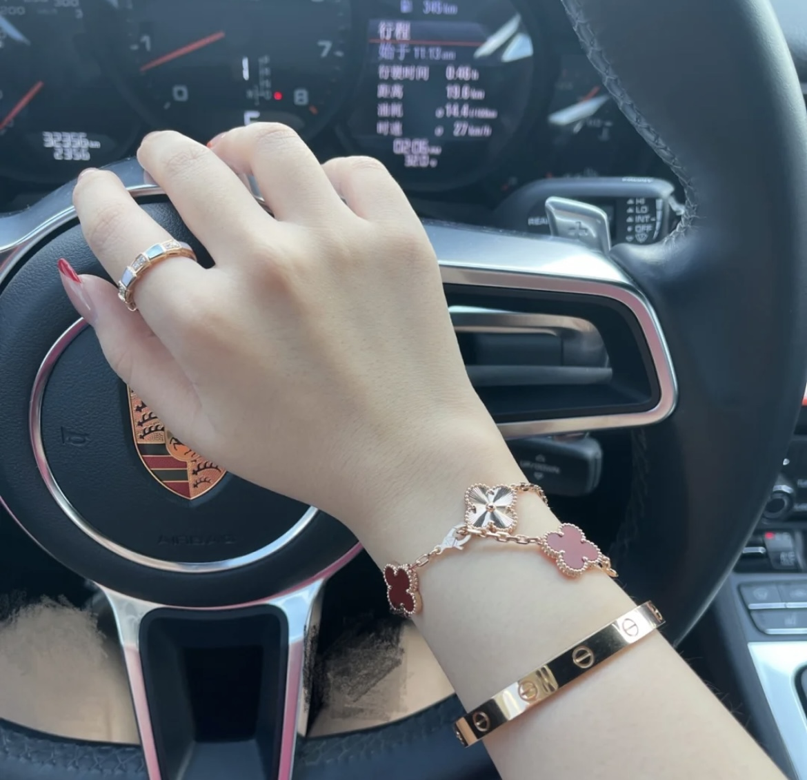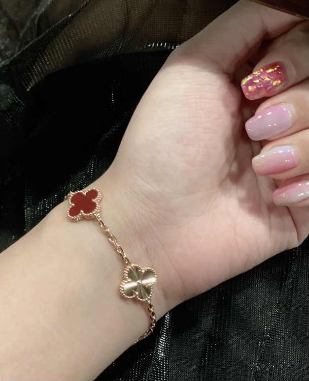 18k玫瑰金色,总长19cm,手围细的可以单只花挂出来