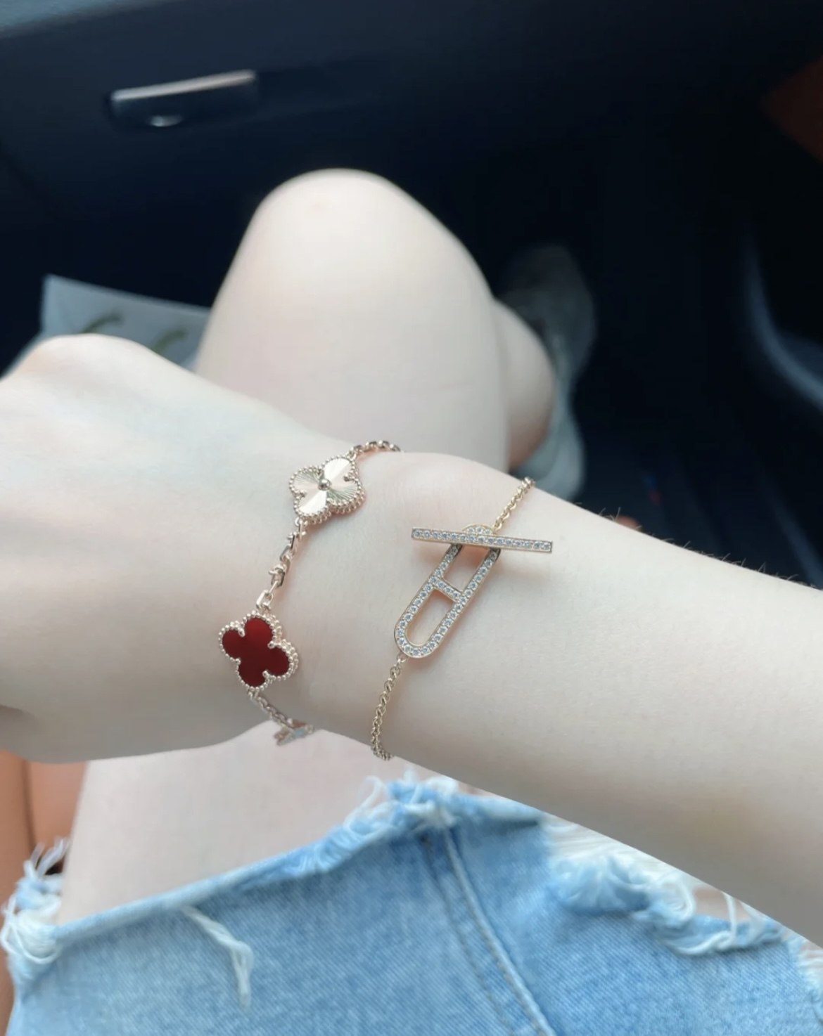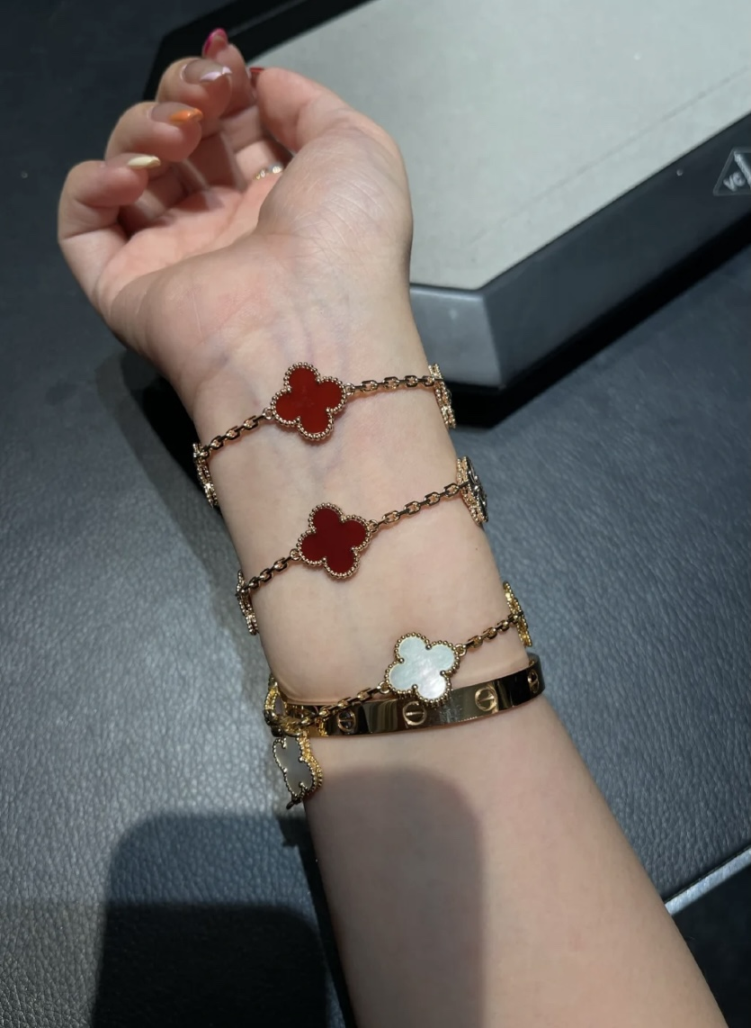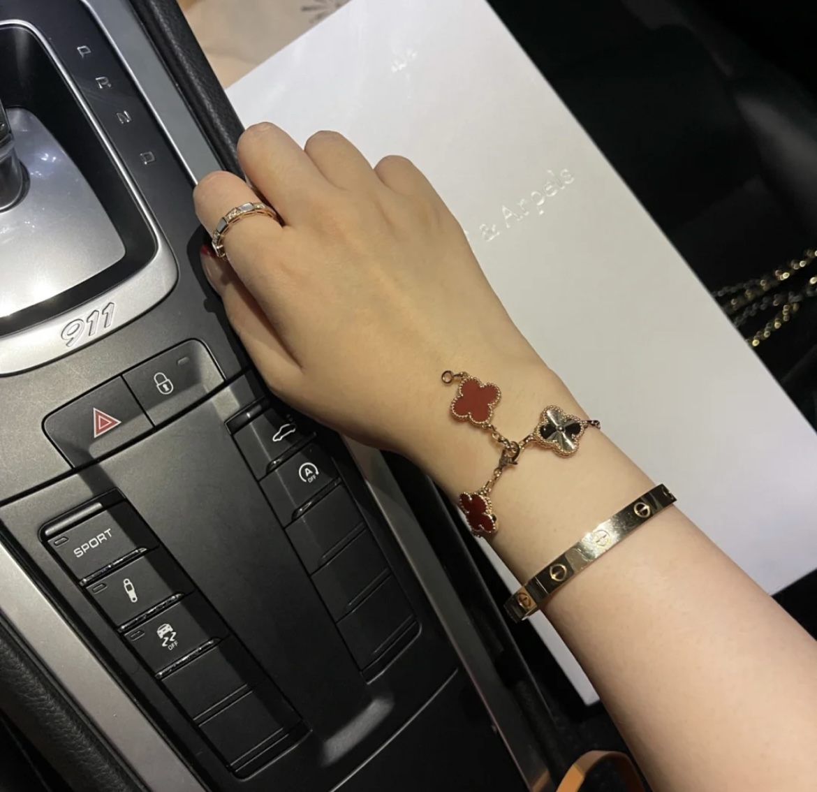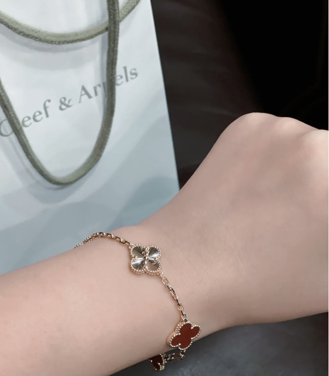 18k玫瑰金色,总长19cm,手围细的可以单只花挂出来