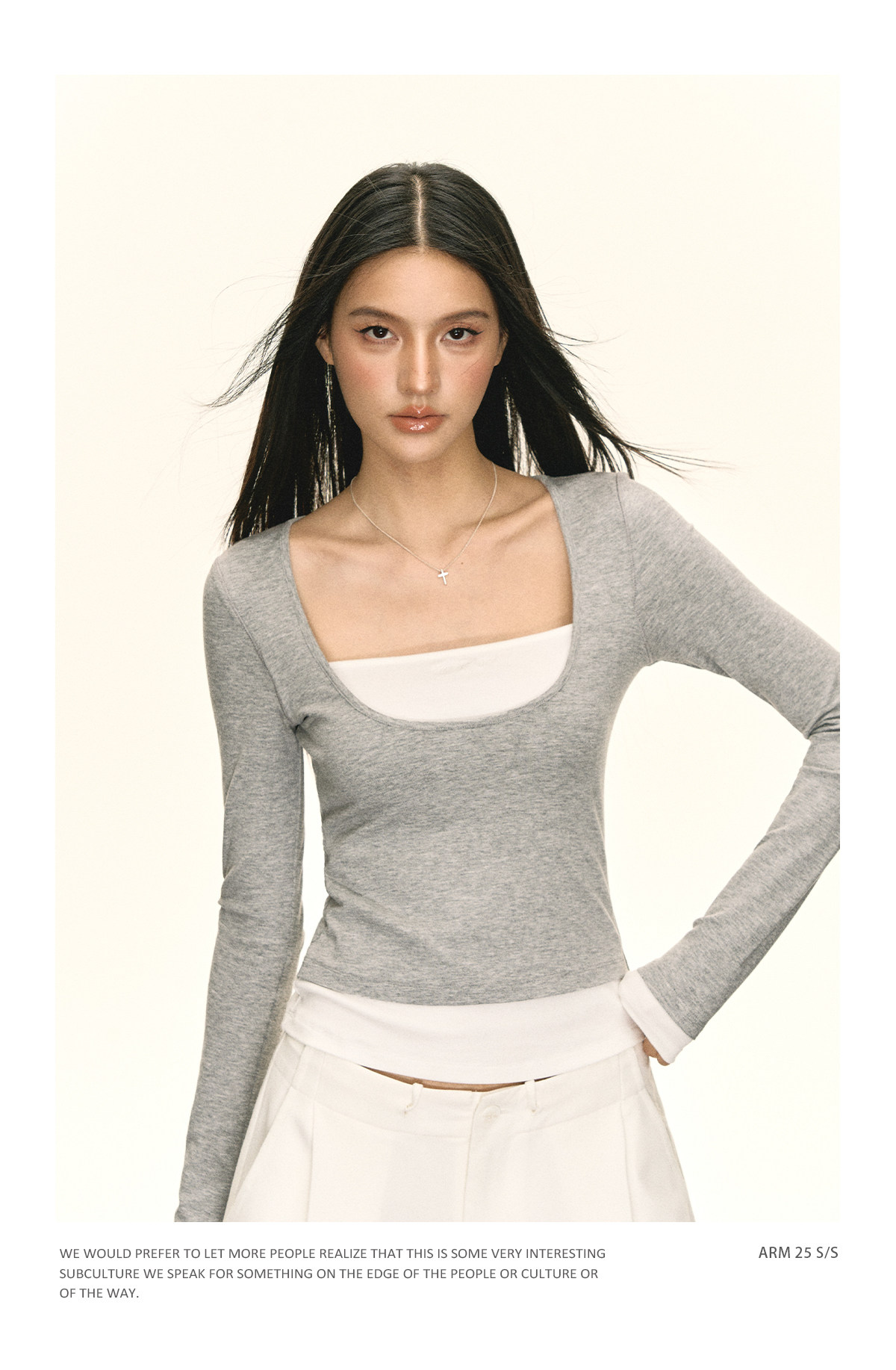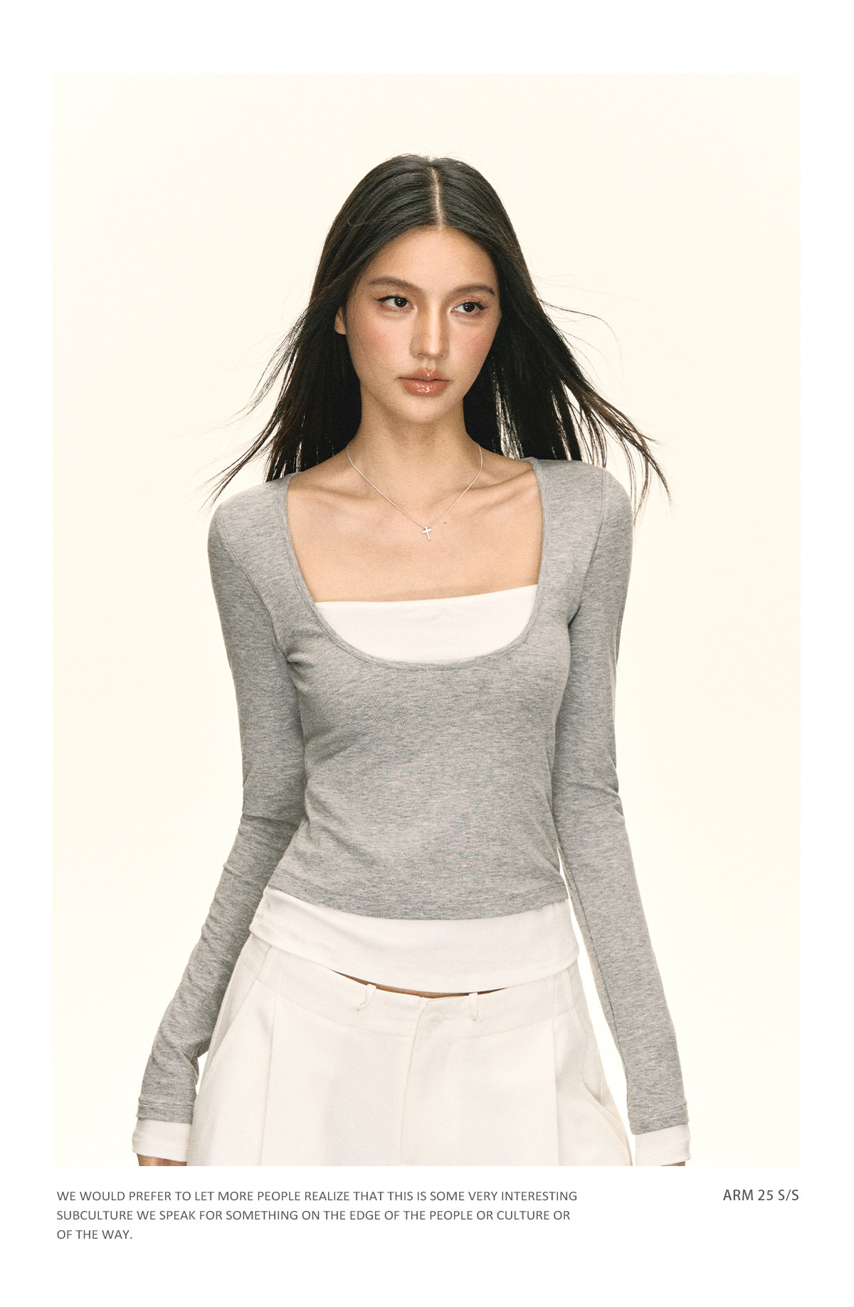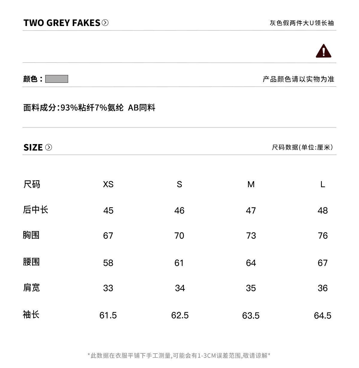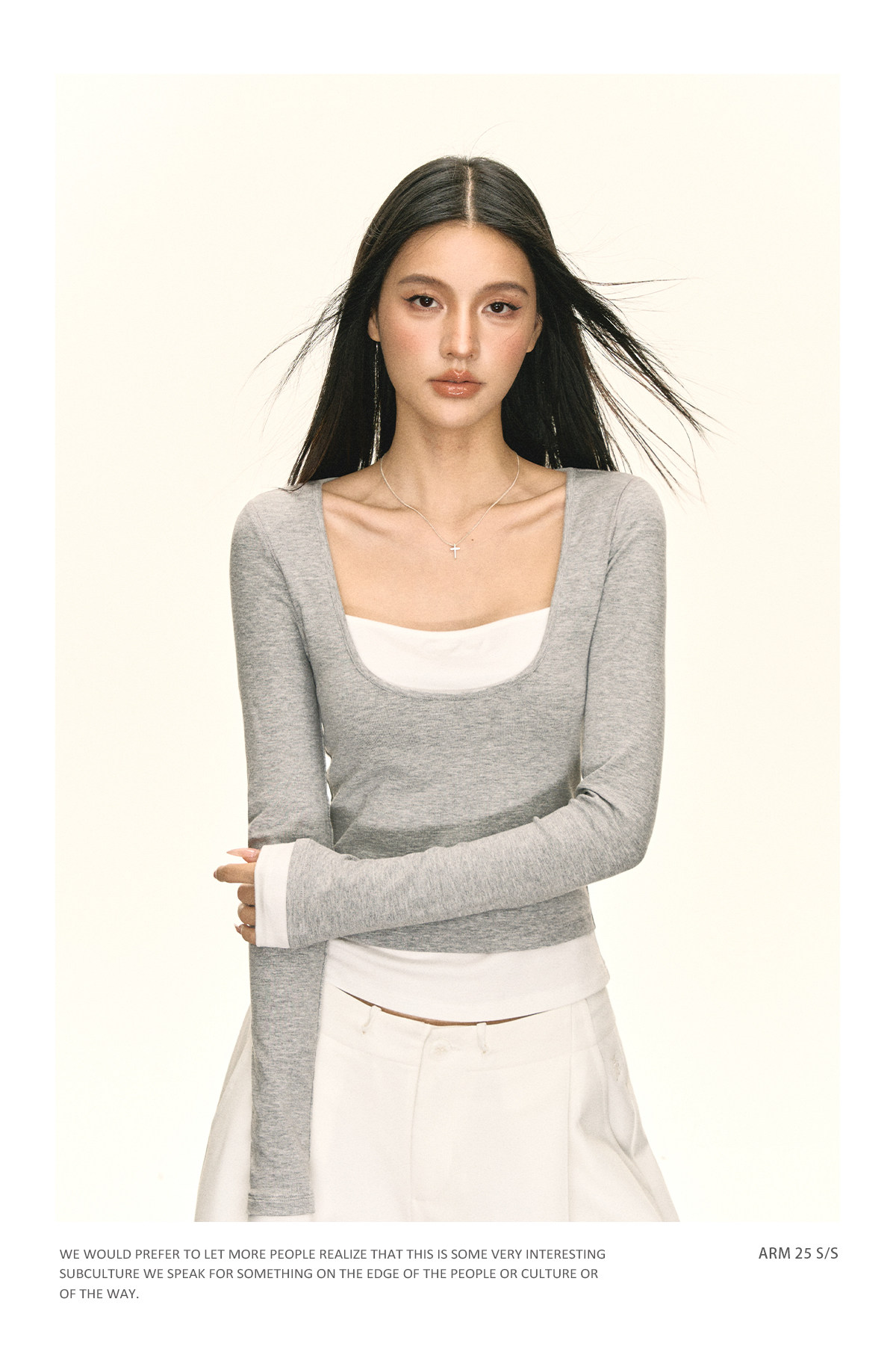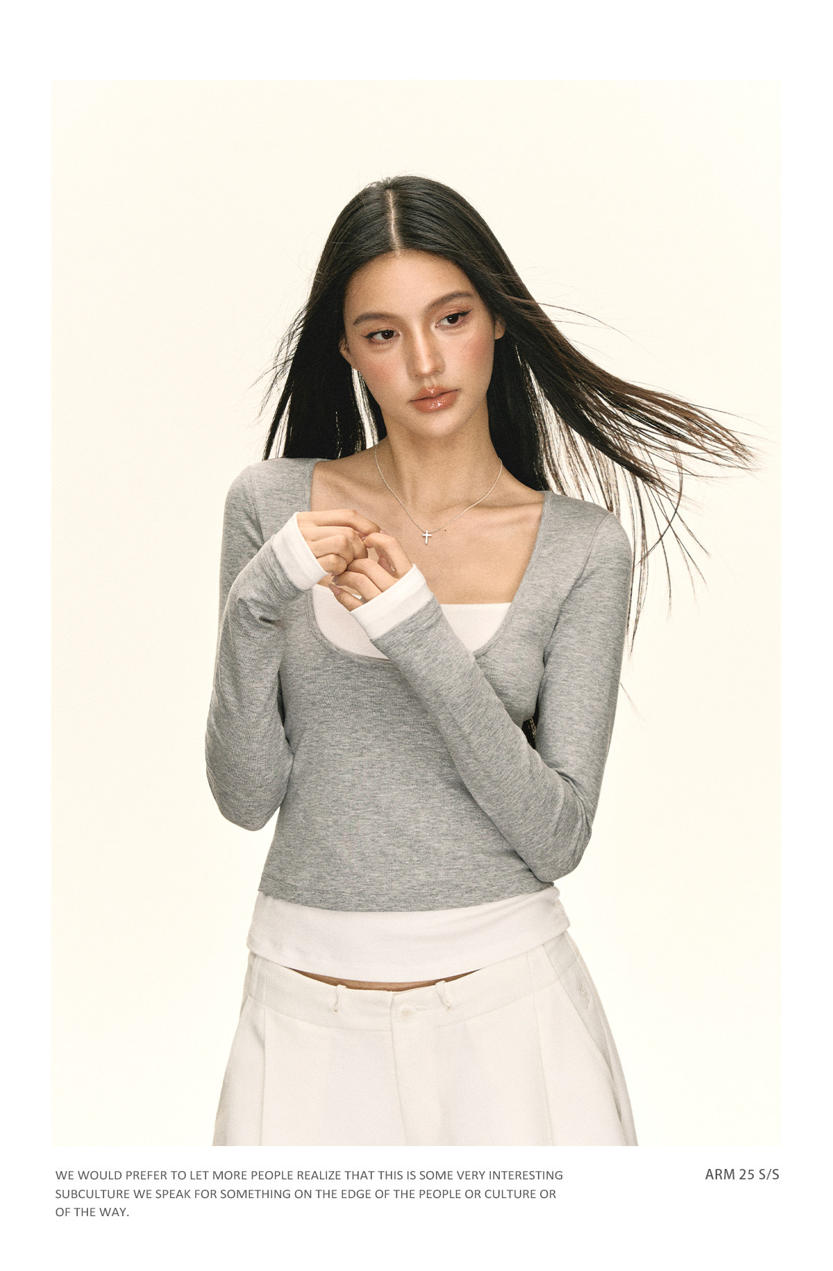 Ariseism 美式复古高级感假两件长袖女春季新款修身打底上衣
