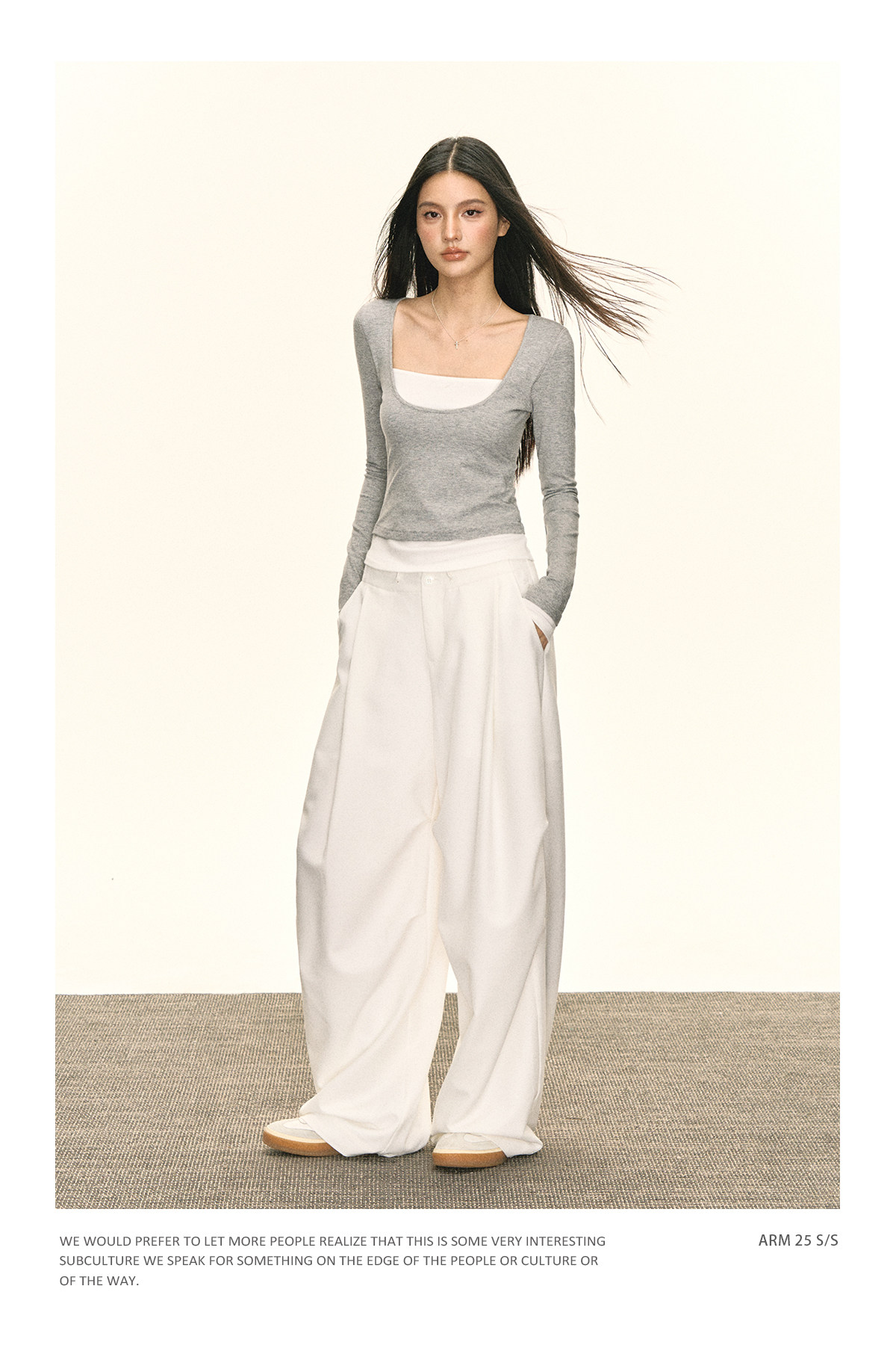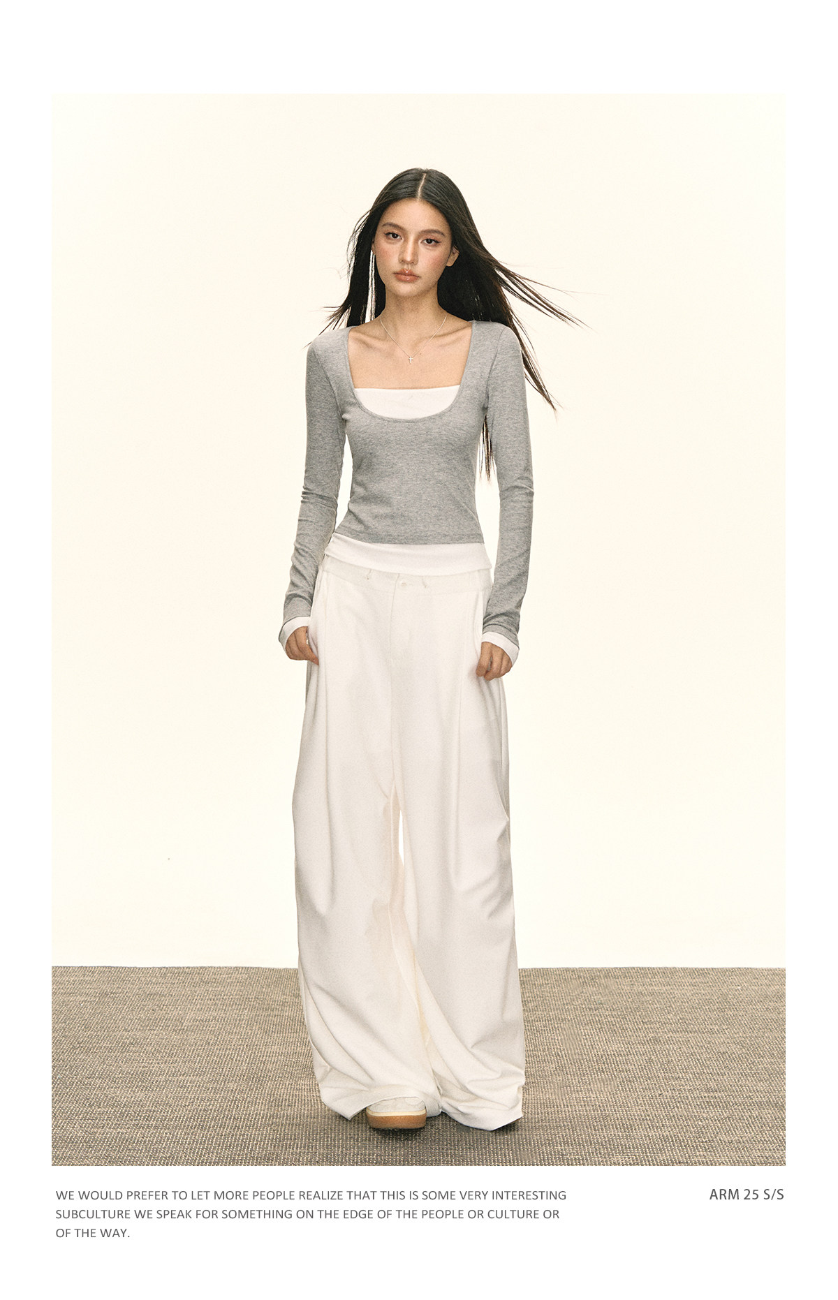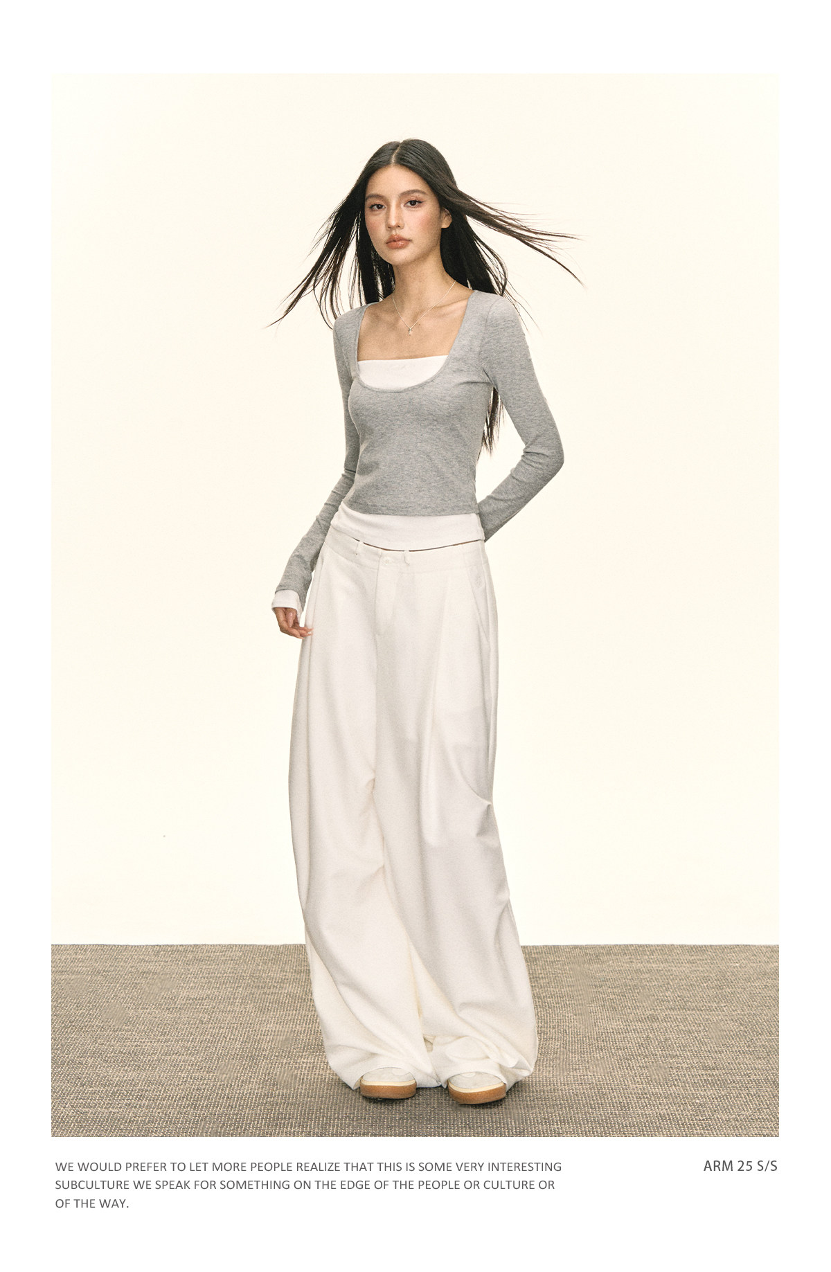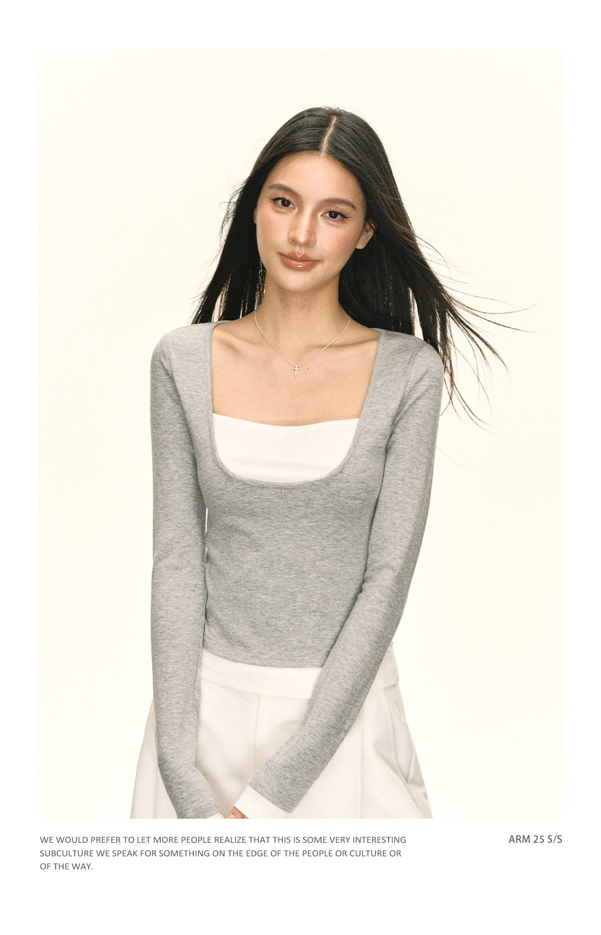 Ariseism 美式复古高级感假两件长袖女春季新款修身打底上衣