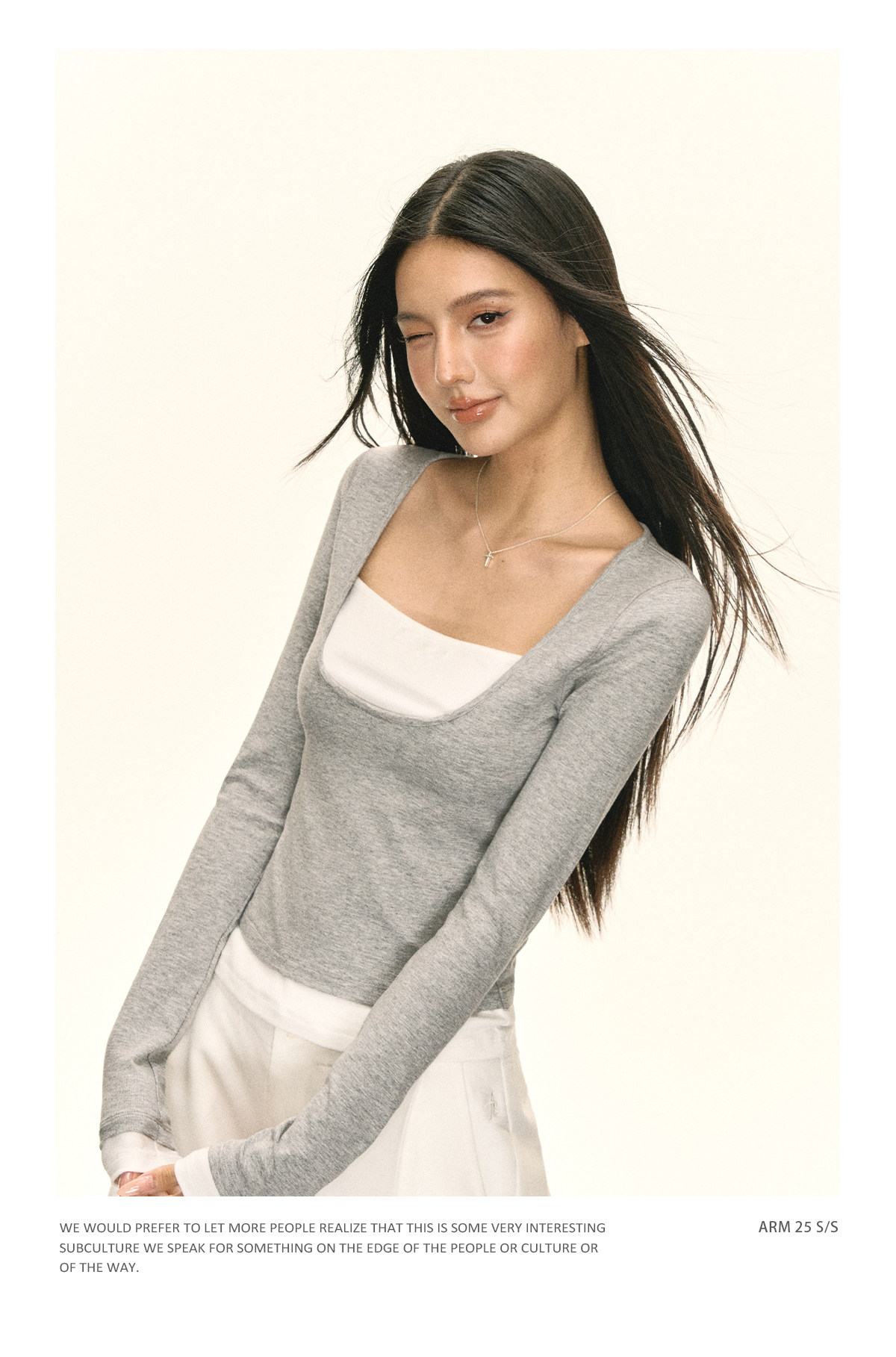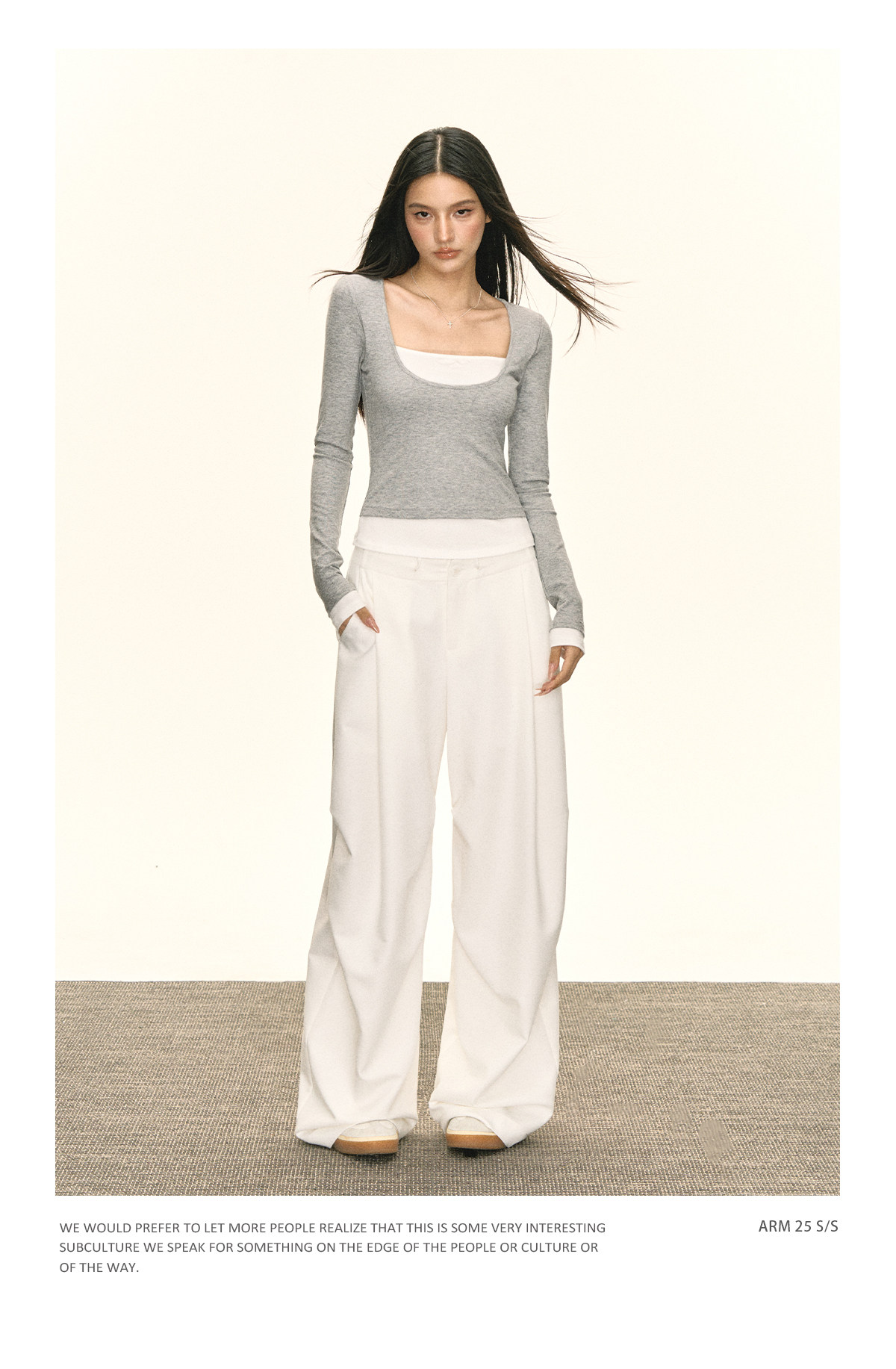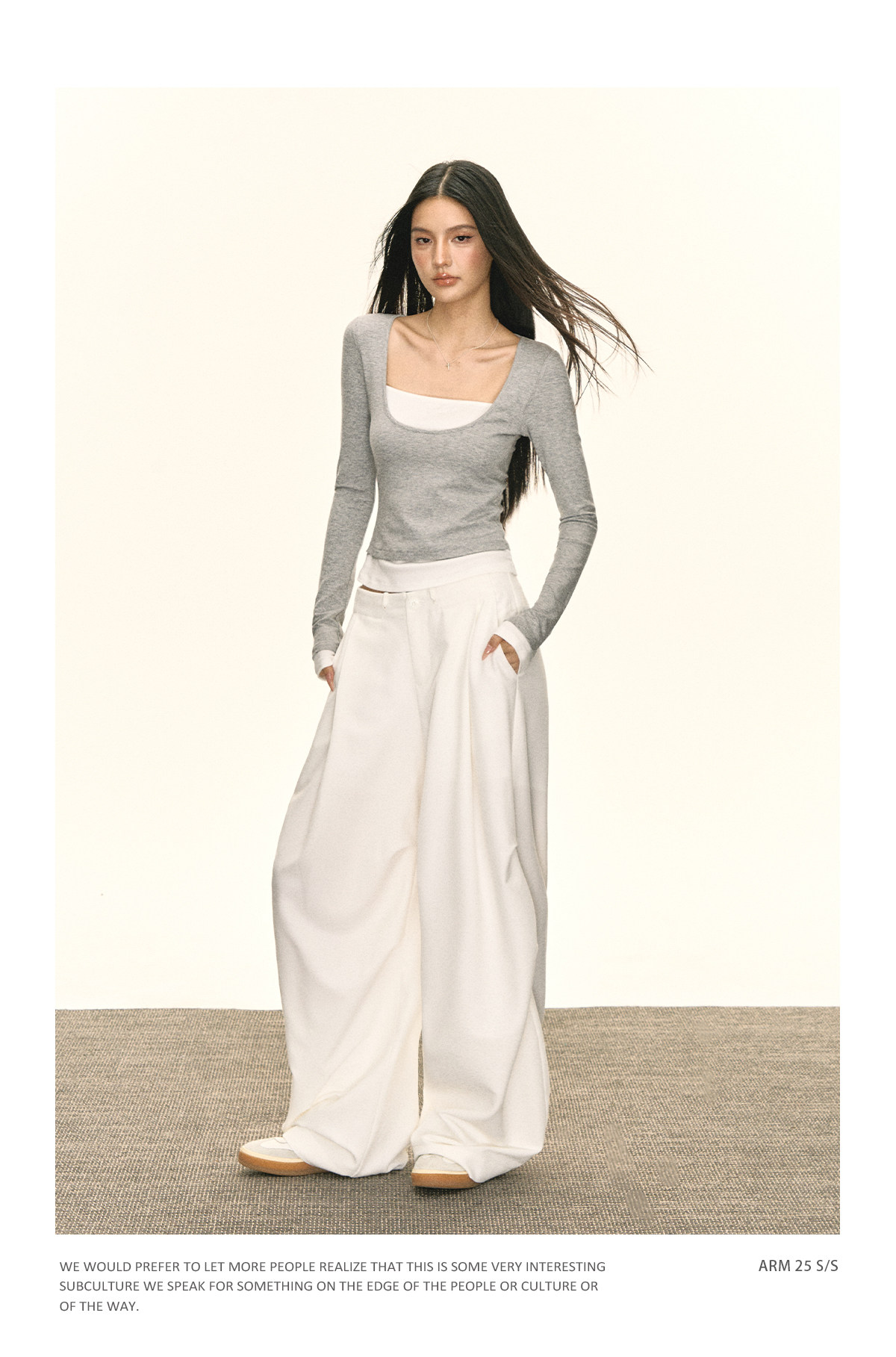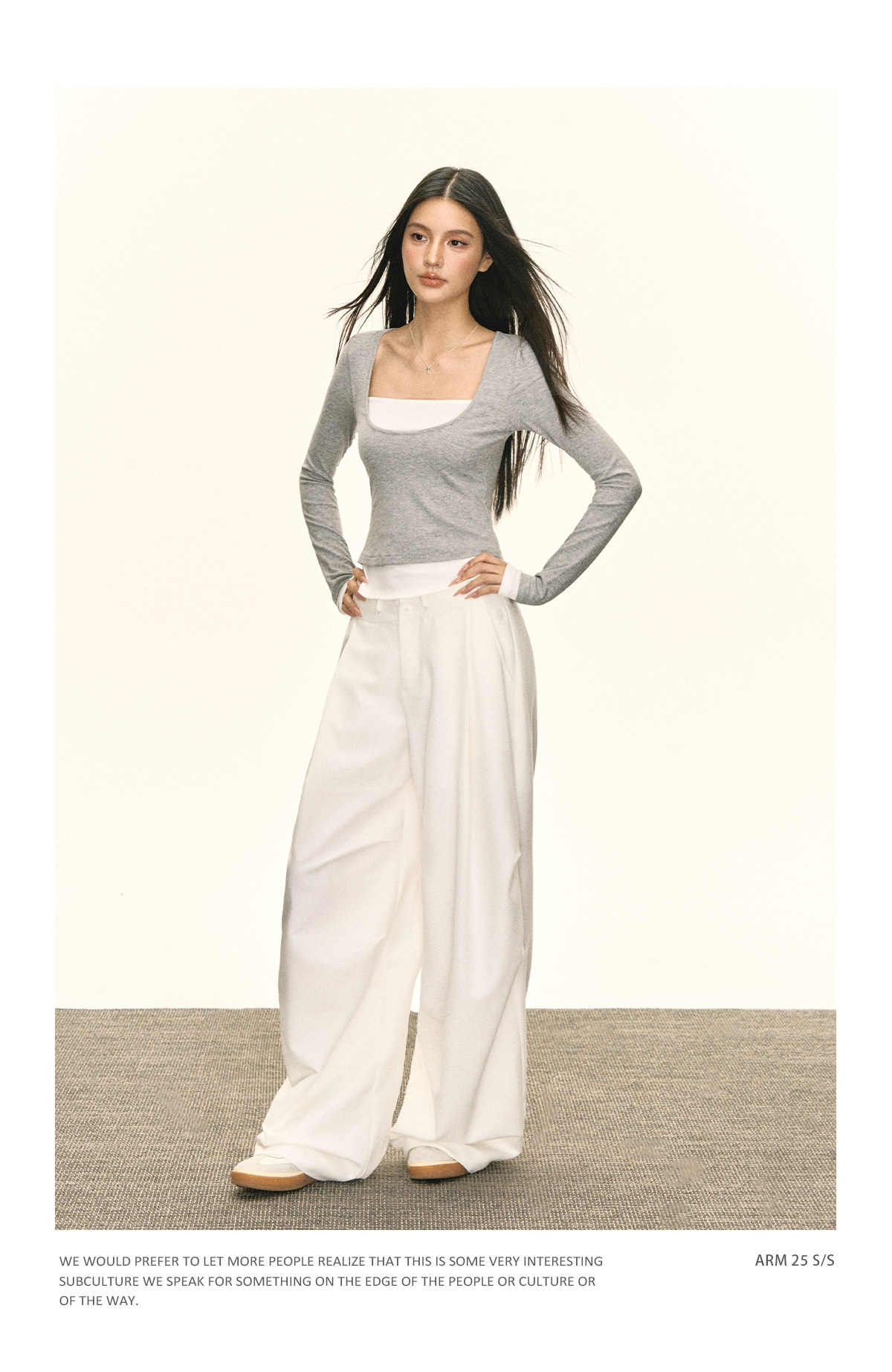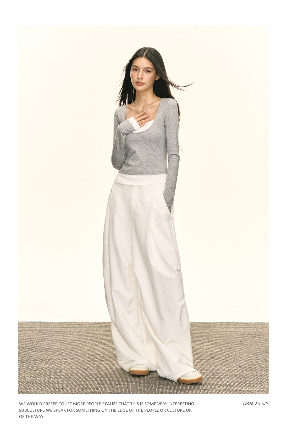 Ariseism 美式复古高级感假两件长袖女春季新款修身打底上衣