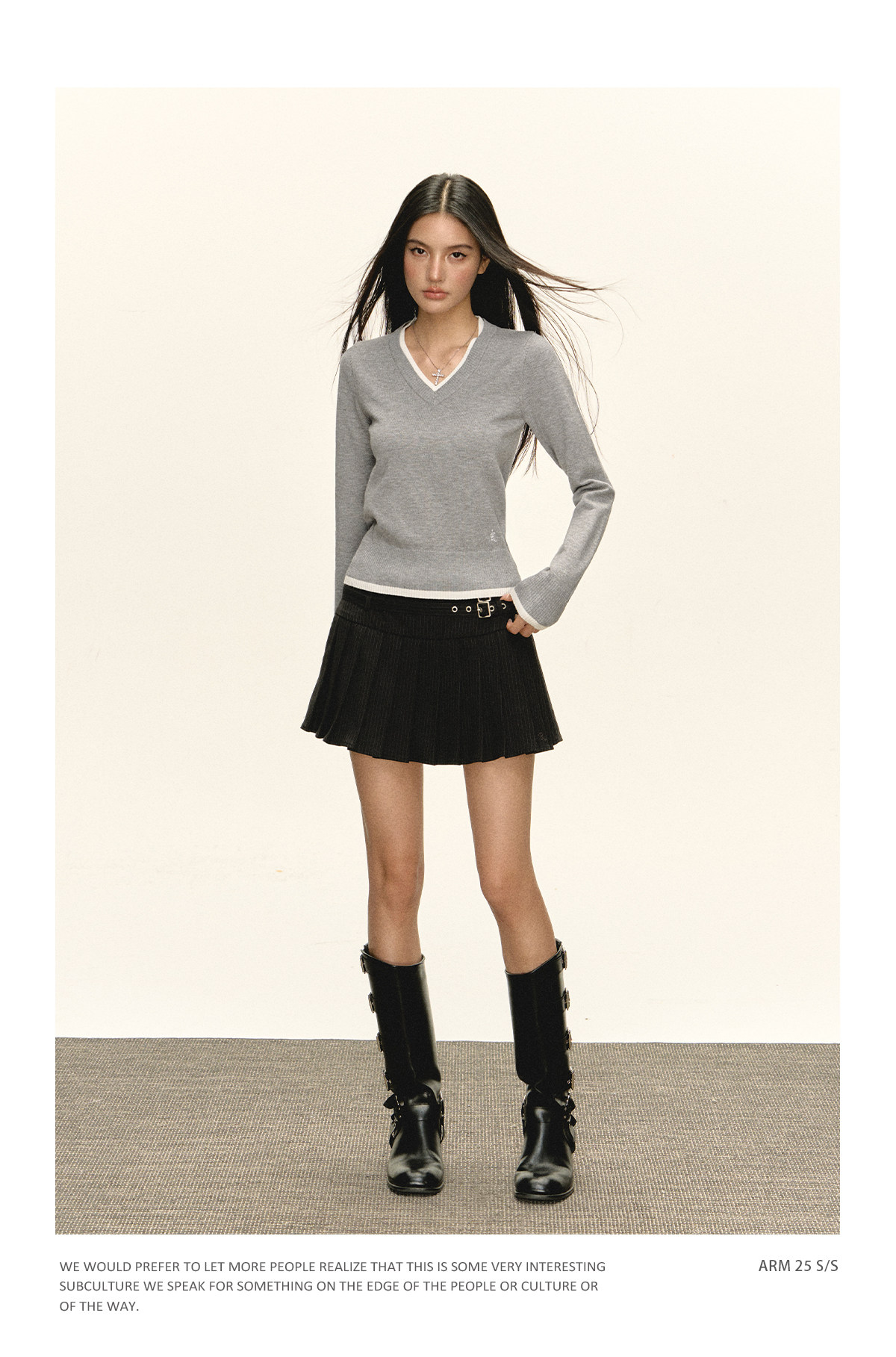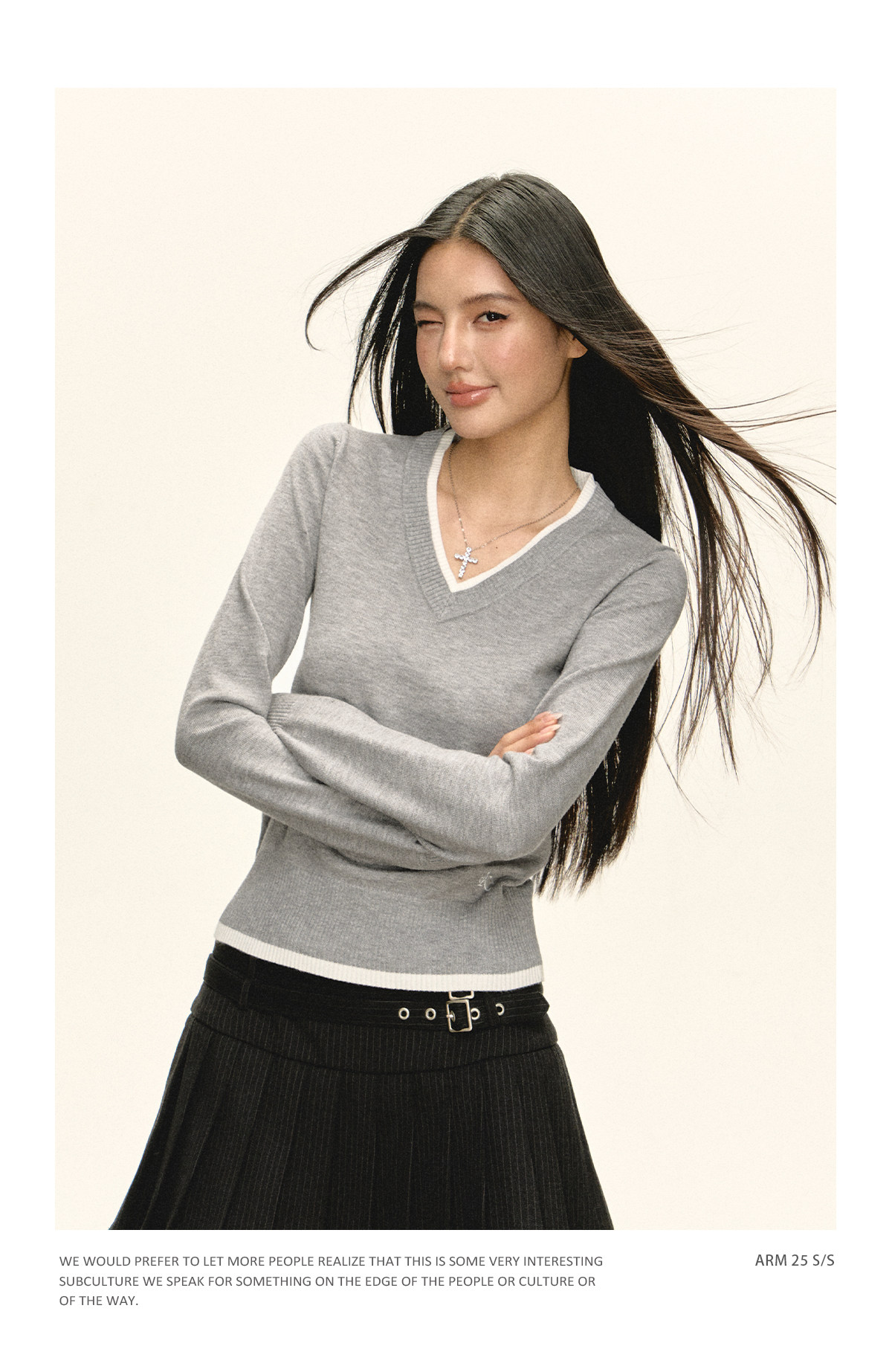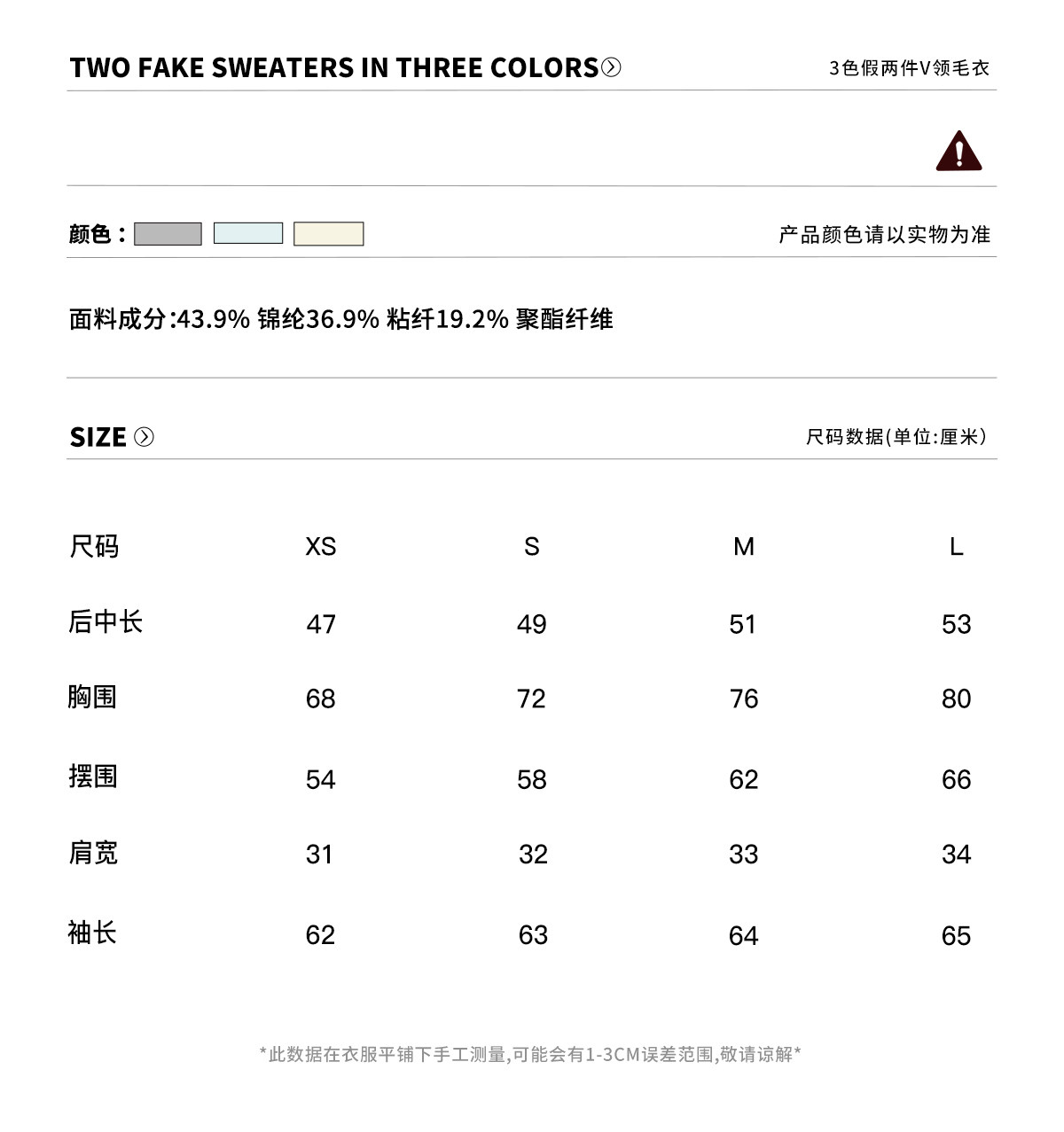 Ariseism 美式复古设计感假两件v领针织衫女秋冬新款修身上衣