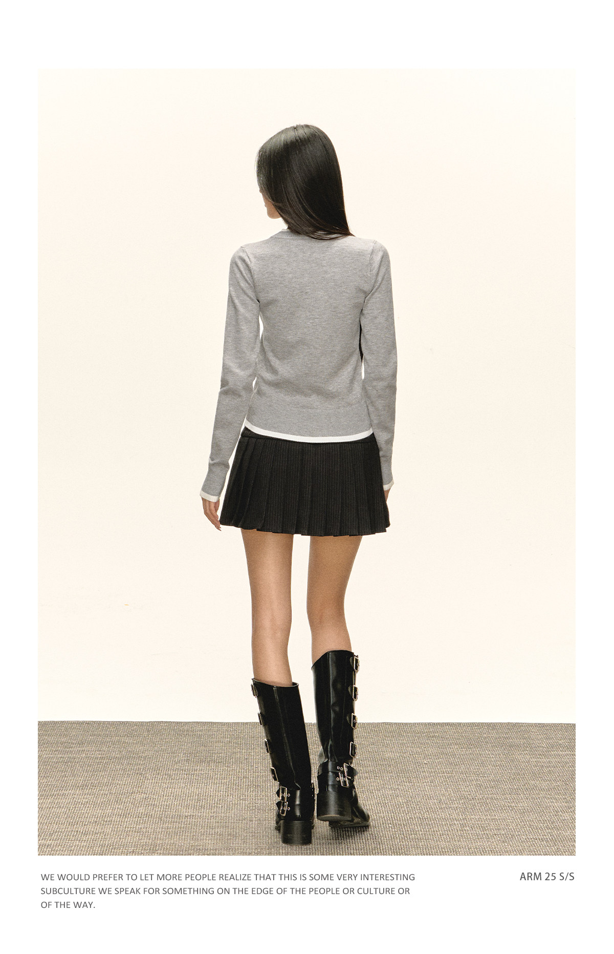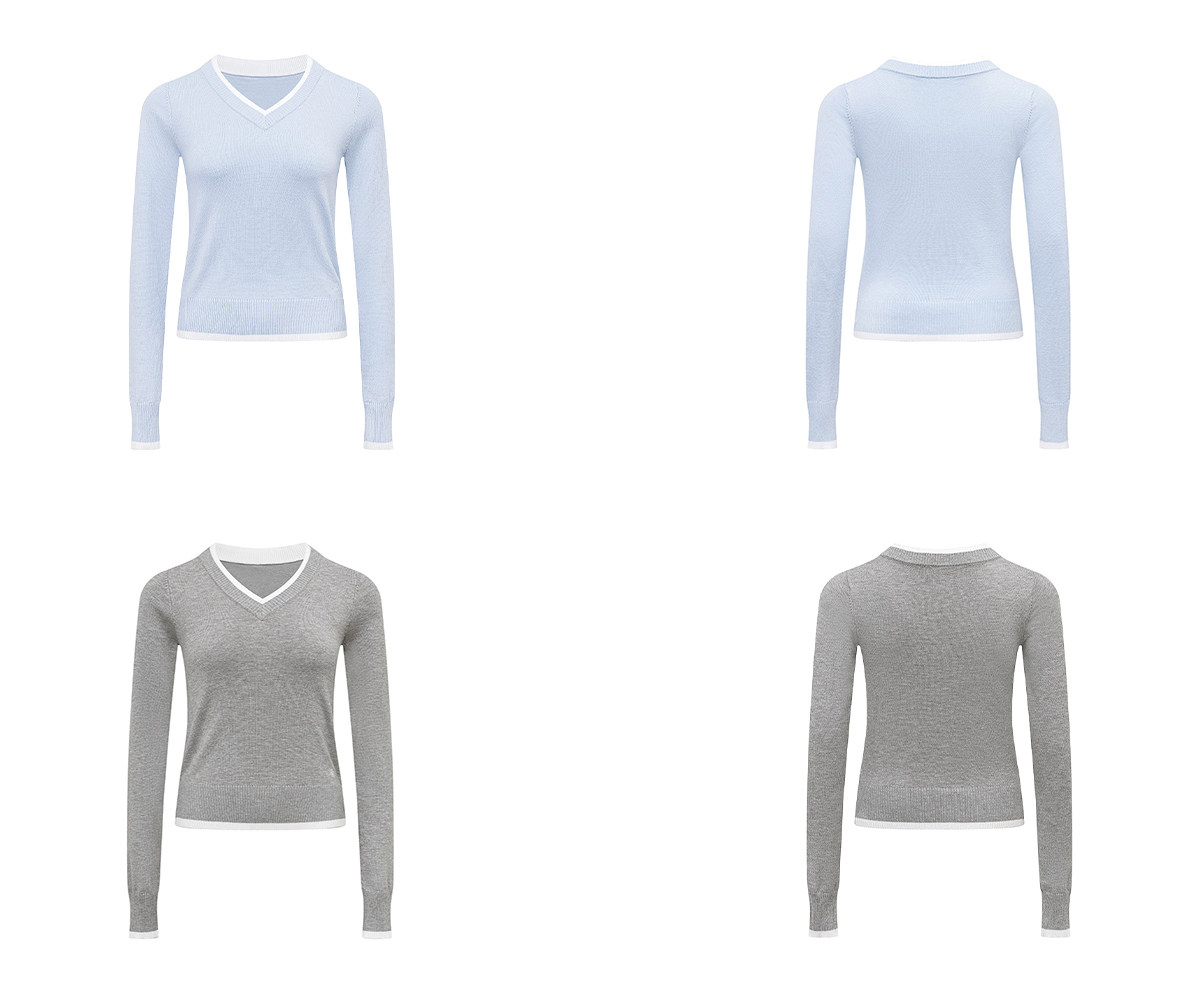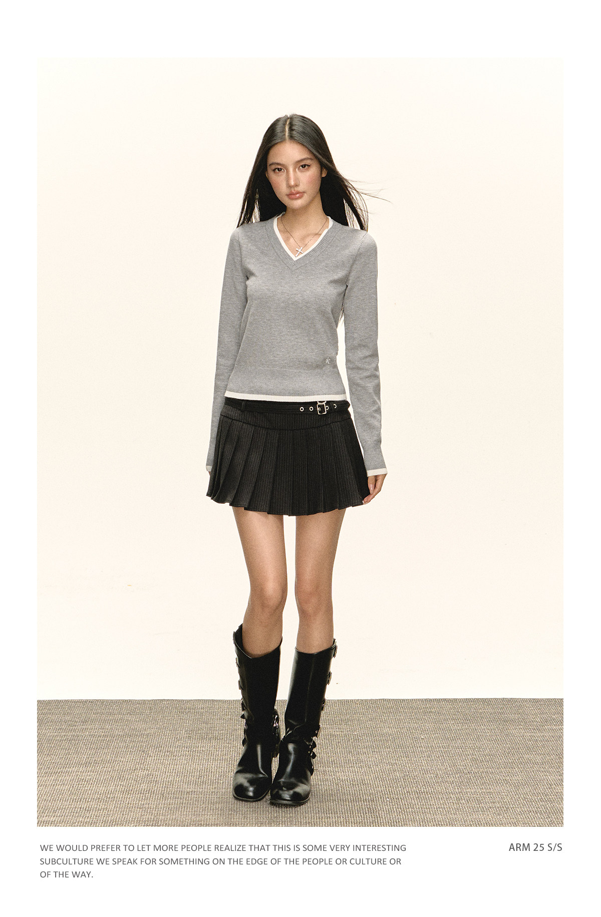 Ariseism 美式复古设计感假两件v领针织衫女秋冬新款修身上衣