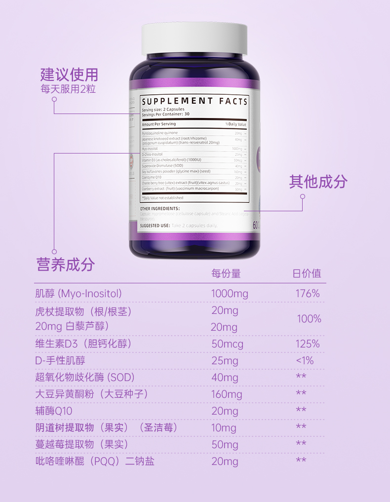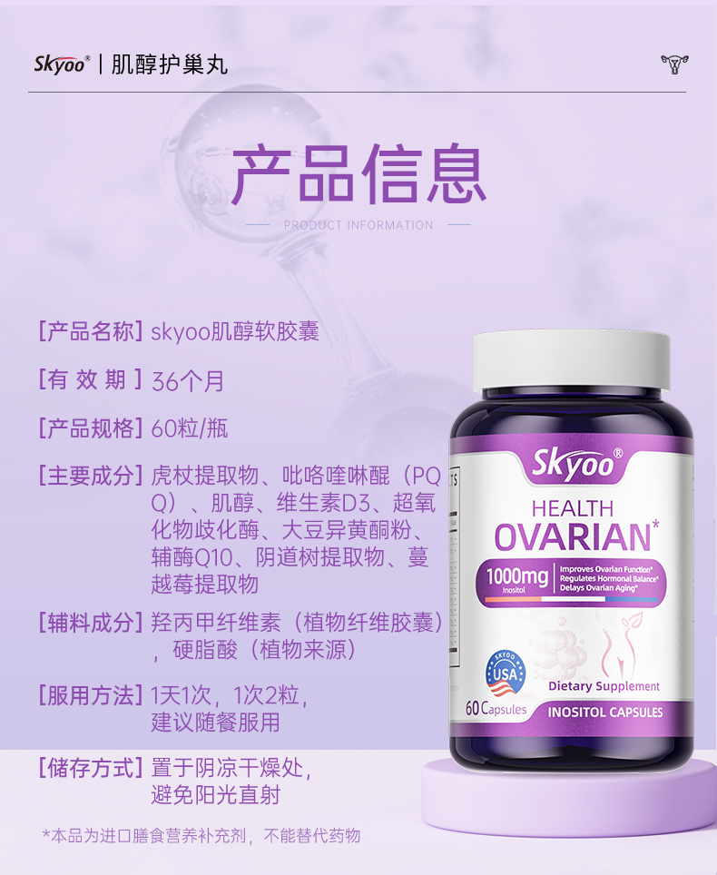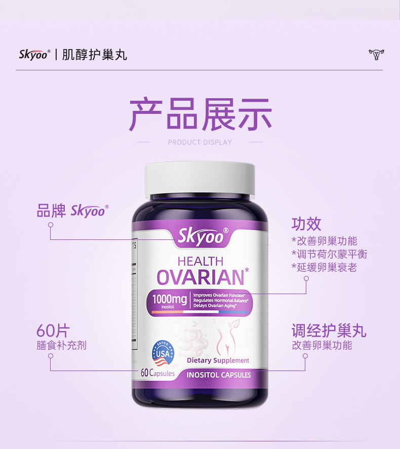 skyoo美国原装进口呵护女性健康肌醇护巢丸【1瓶装】