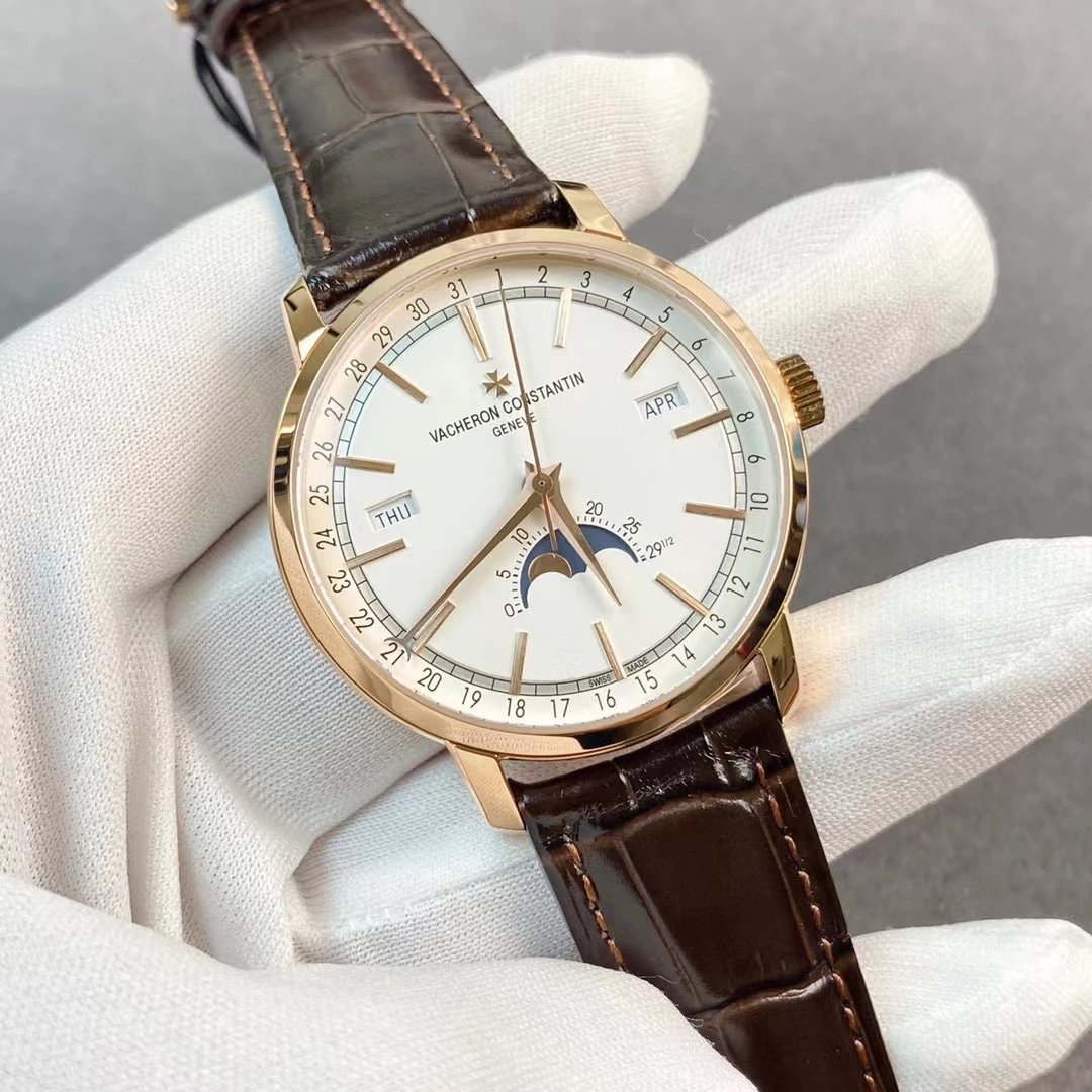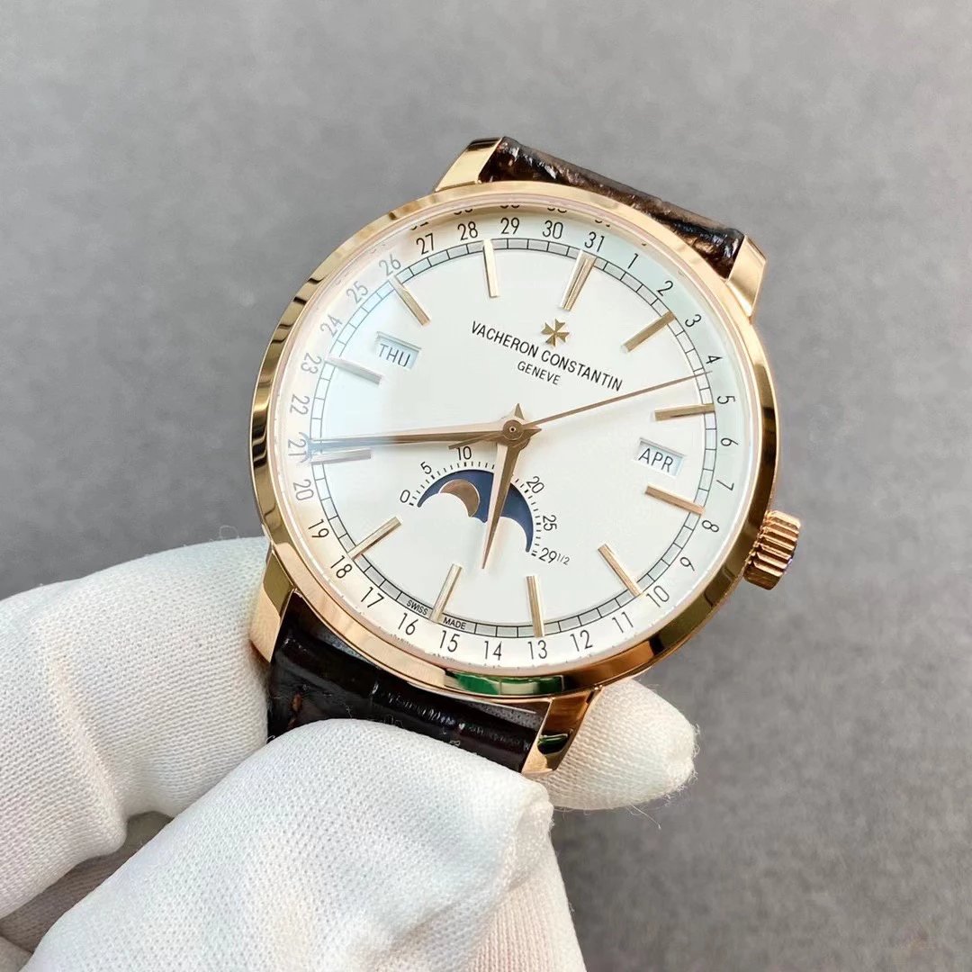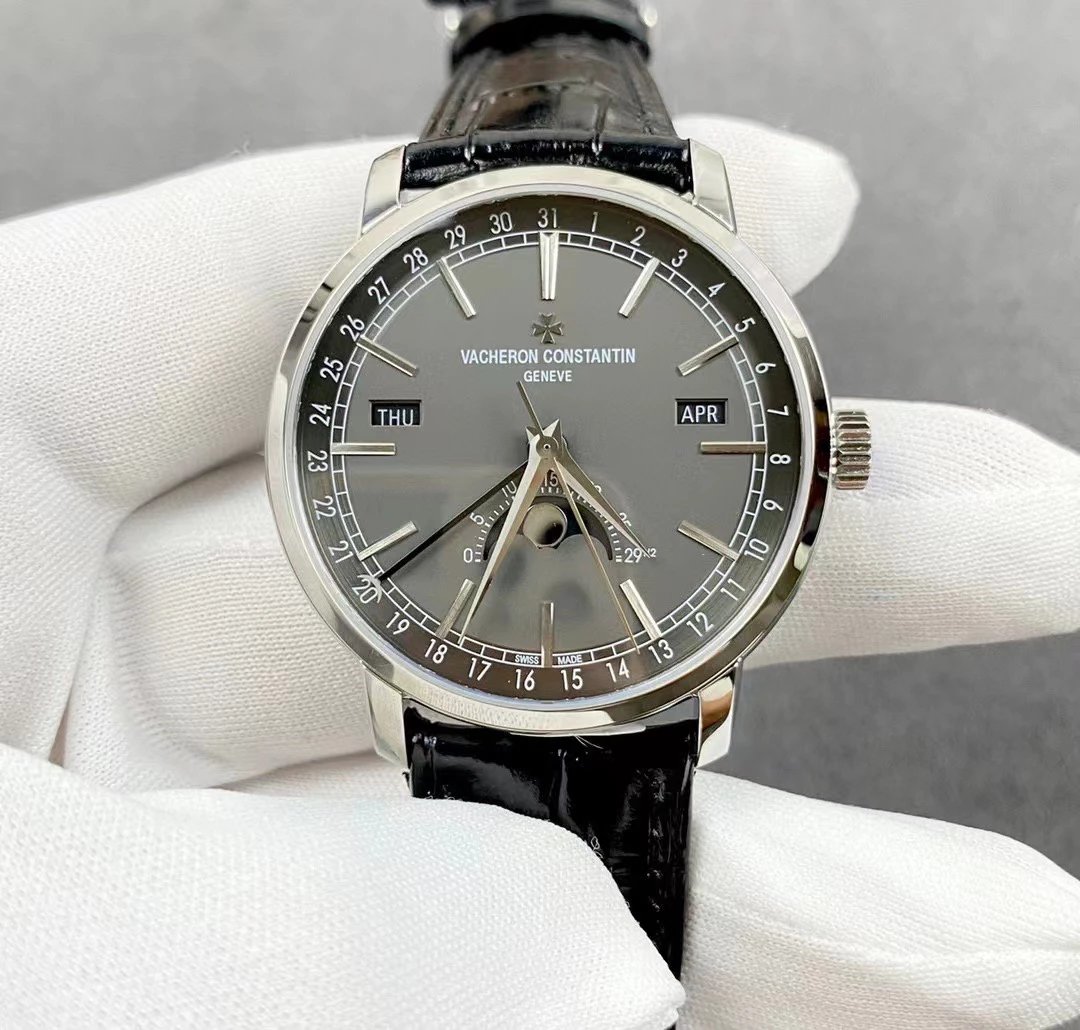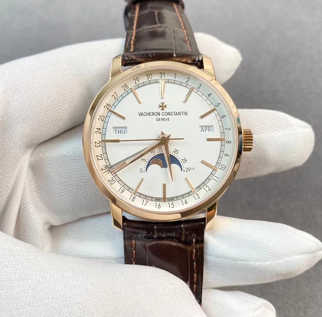 江诗丹顿 Traditionnelle 传袭系列【周月轮回,分秒轮转】4010T/O00R-B344/B740/B345!直径41mm,厚度10.7mm,轨道式分钟刻度圆以及太妃式时针和分针,保留了江诗丹顿独创的标志性日历显示。巧思的设计打破表盘的沉闷感.这一布局清晰地展现了 6点位的精密月相显示。在彰显灵动魅力的同时,也尽显复杂机械的别致美感。以日本西铁城9015为基础自主研发2460 QCL/1,自动上链一体机芯。mx 厂出品,出货实拍