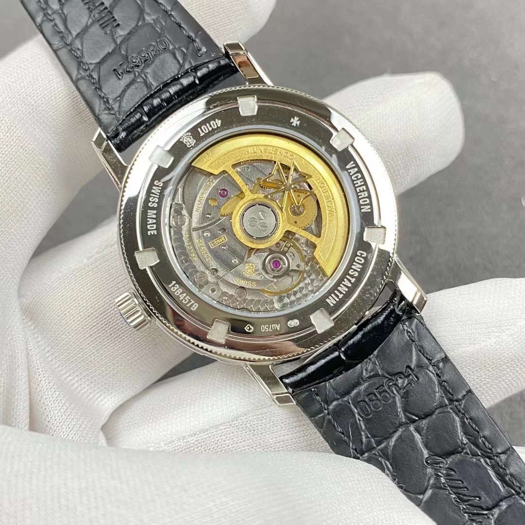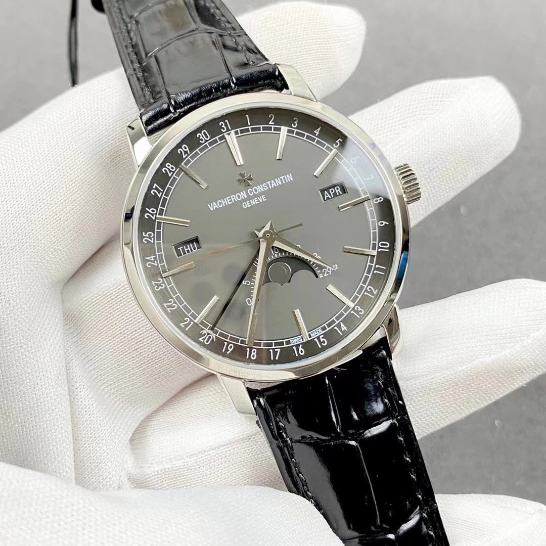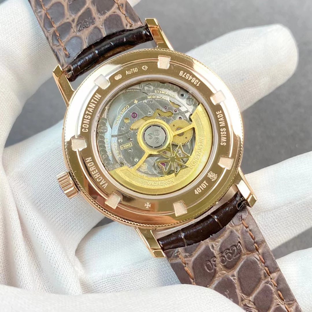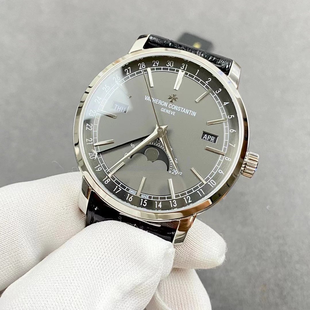 江诗丹顿 Traditionnelle 传袭系列【周月轮回,分秒轮转】4010T/O00R-B344/B740/B345!直径41mm,厚度10.7mm,轨道式分钟刻度圆以及太妃式时针和分针,保留了江诗丹顿独创的标志性日历显示。巧思的设计打破表盘的沉闷感.这一布局清晰地展现了 6点位的精密月相显示。在彰显灵动魅力的同时,也尽显复杂机械的别致美感。以日本西铁城9015为基础自主研发2460 QCL/1,自动上链一体机芯。mx 厂出品,出货实拍
