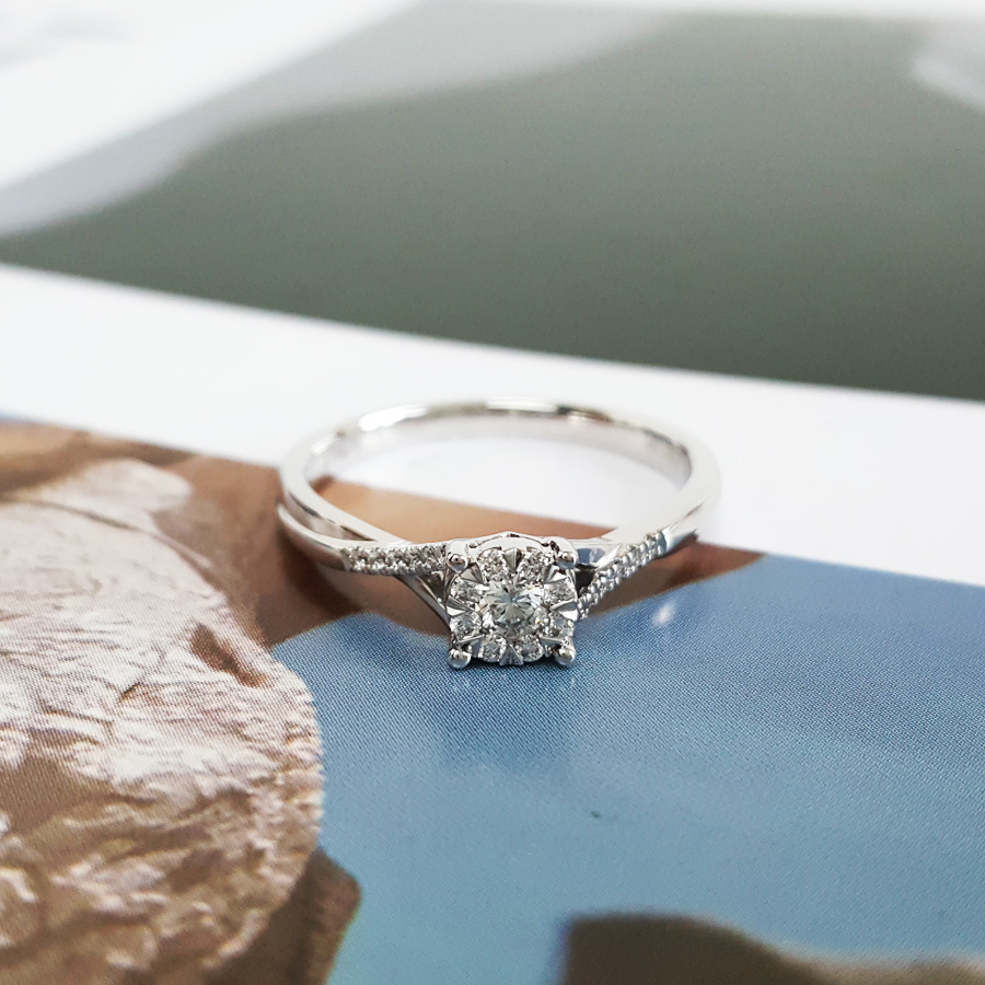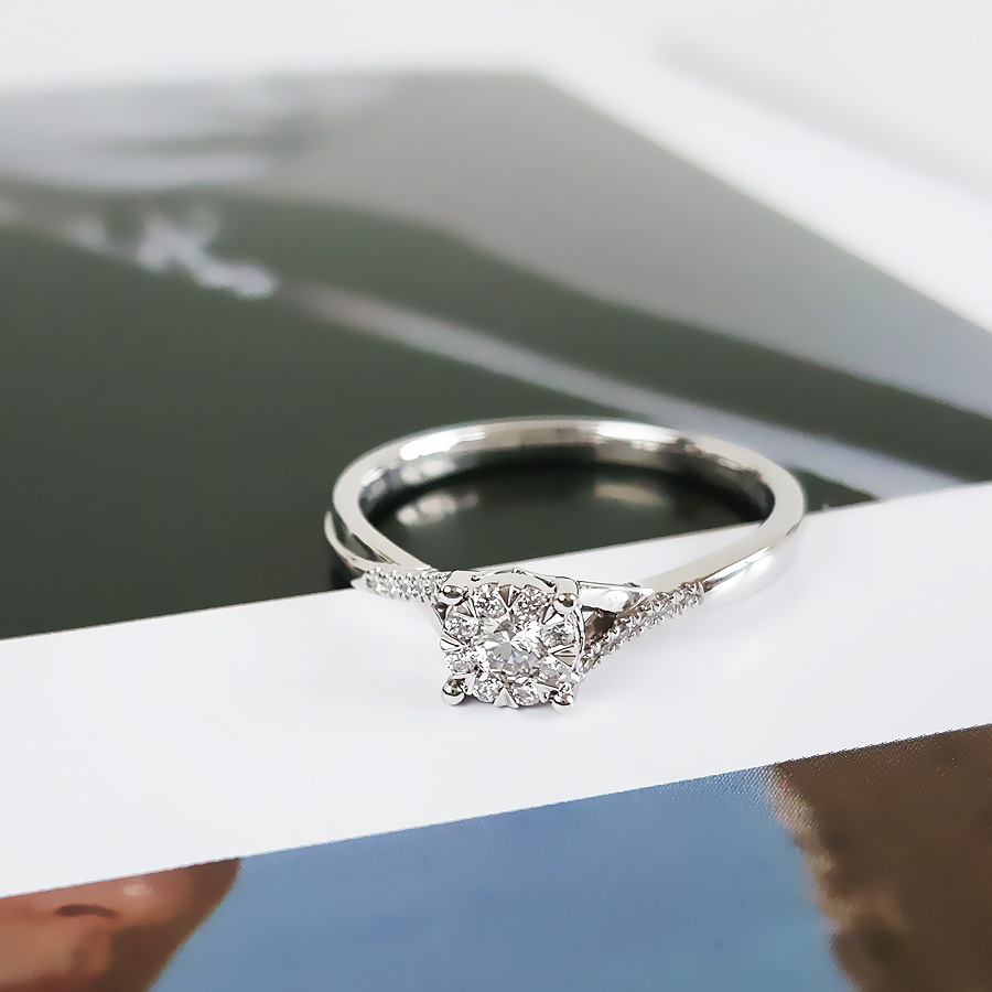 款式 | AU750白金经典简约镂空四爪款0.08克拉钻石戒指 |
