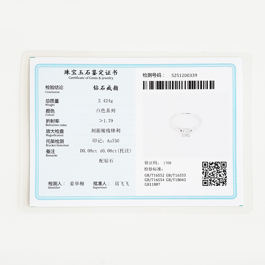 是否镶钻 | 共20颗明亮式切割钻石共计0.08克拉 |