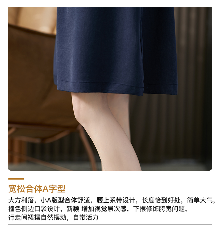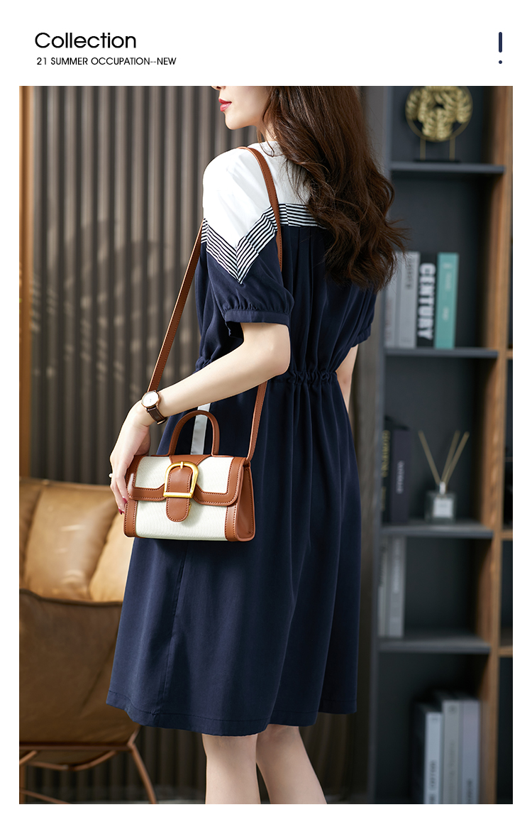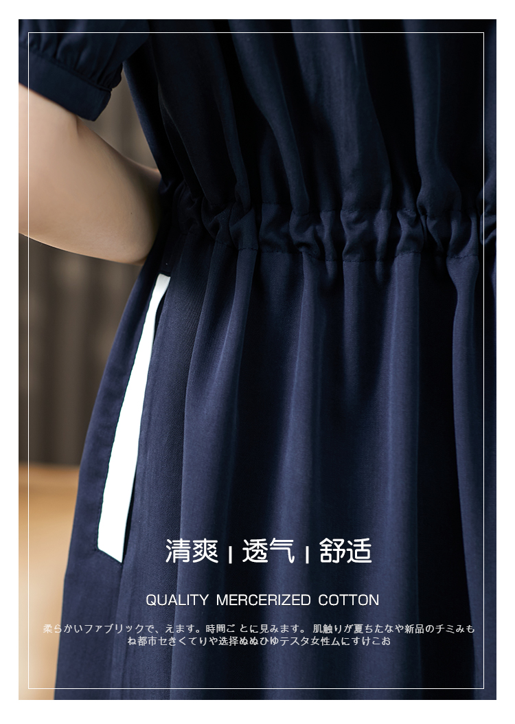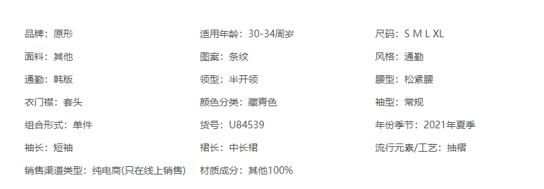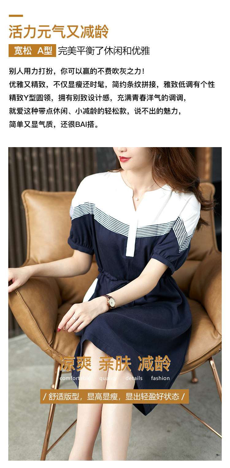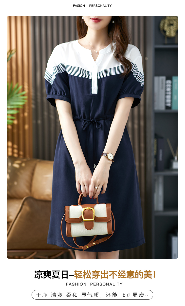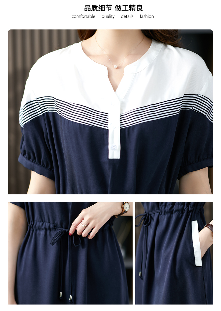 U84539YX【现货7天】撞色条纹连衣裙 中长款抽褶收腰直筒显瘦裙子