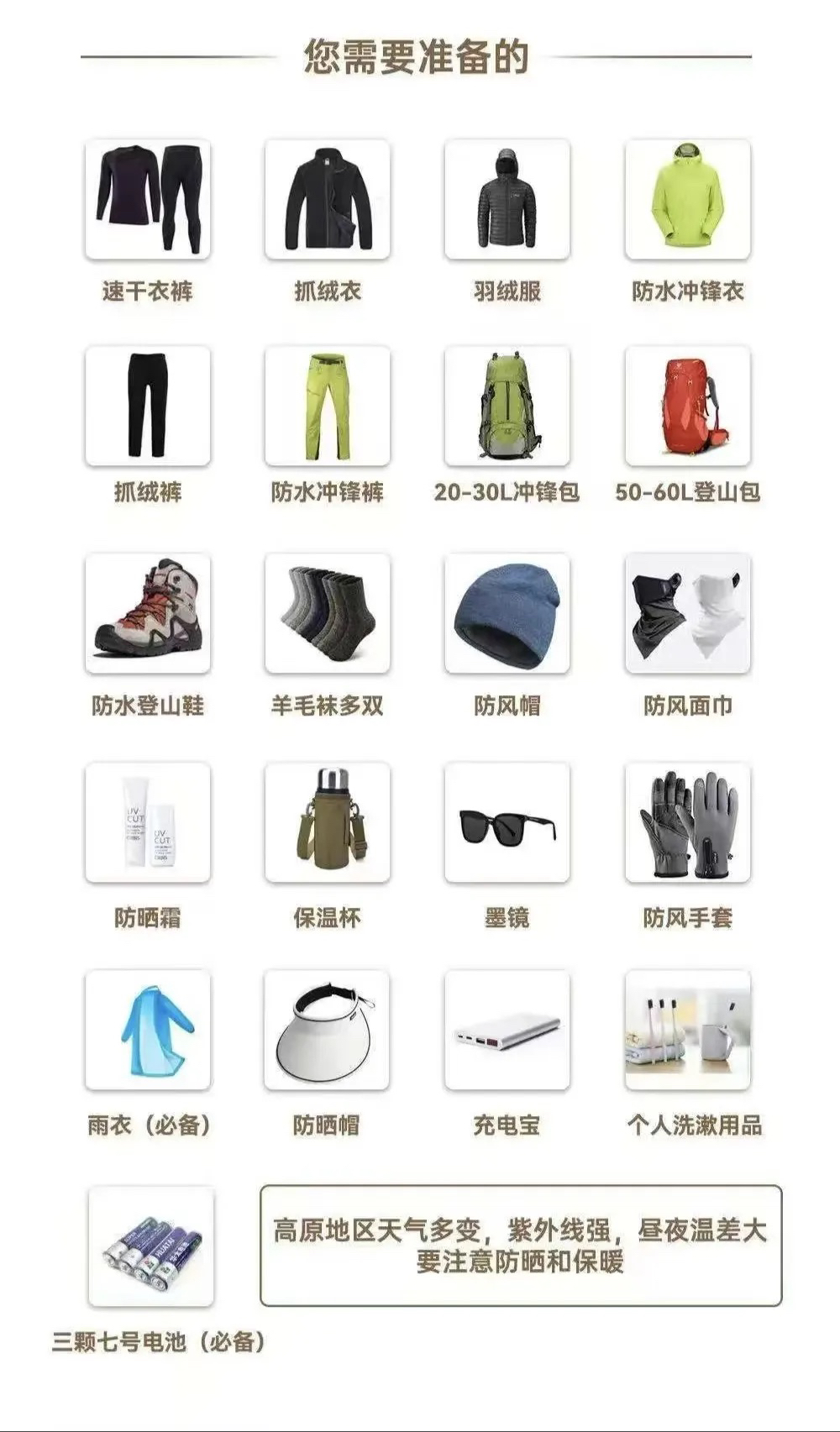 2.气候变化:山地地区,气候多变,可能会突然下雨、下雪或发生强风等极端天气情况,参与者需要做好防范措施。