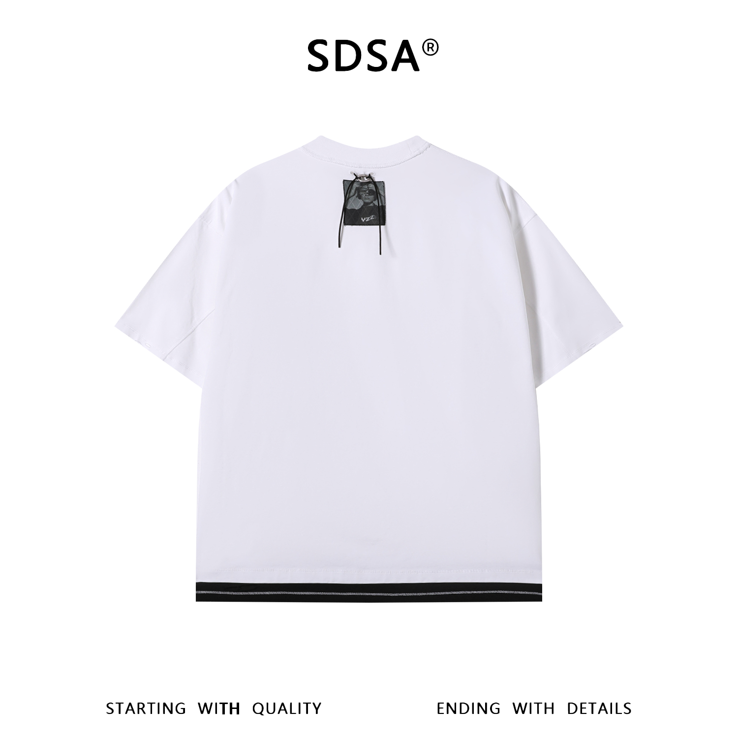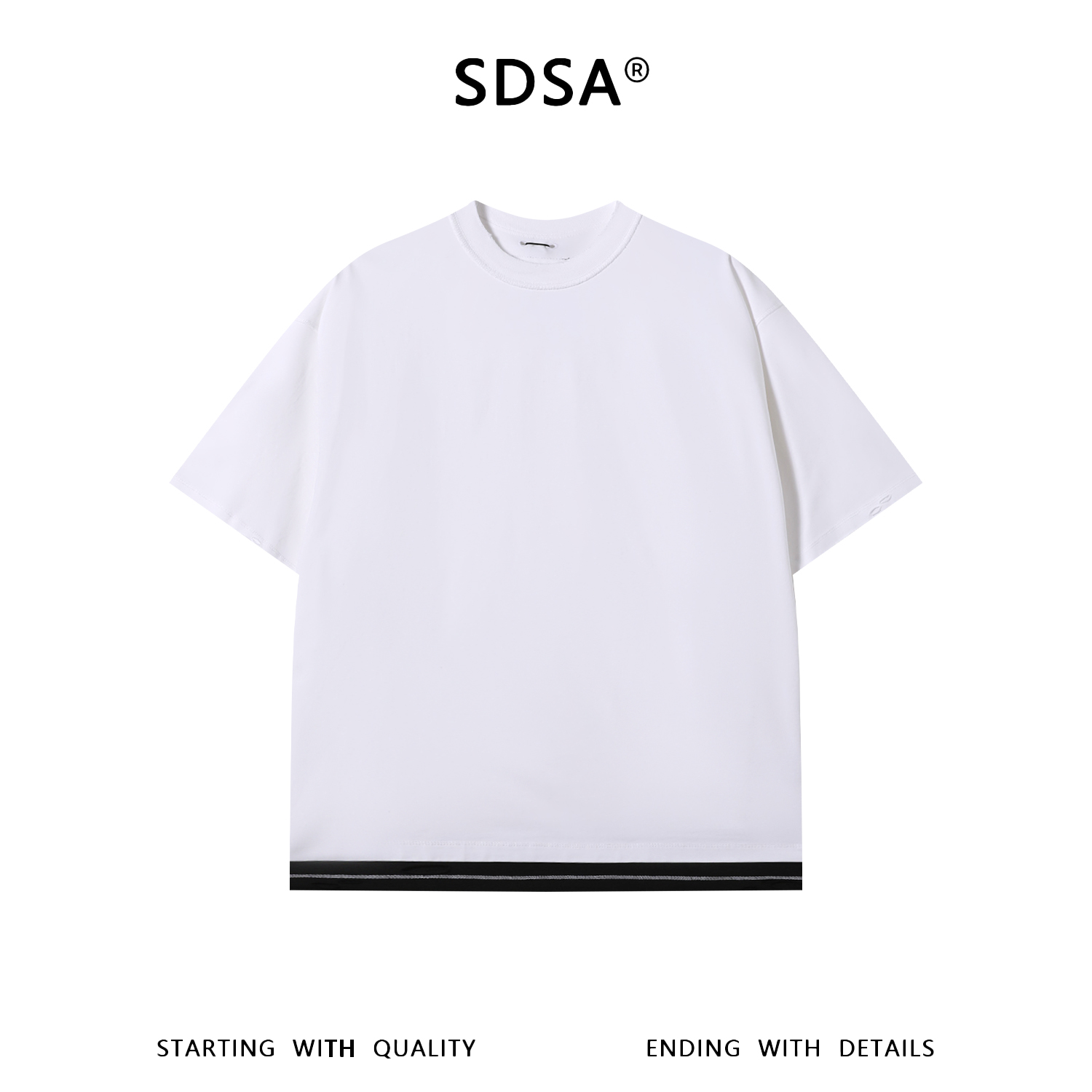 SDSA男装2026新款轻奢潮牌宽松撞色下摆拼接破洞圆领短袖T恤百搭