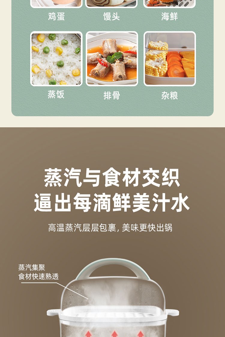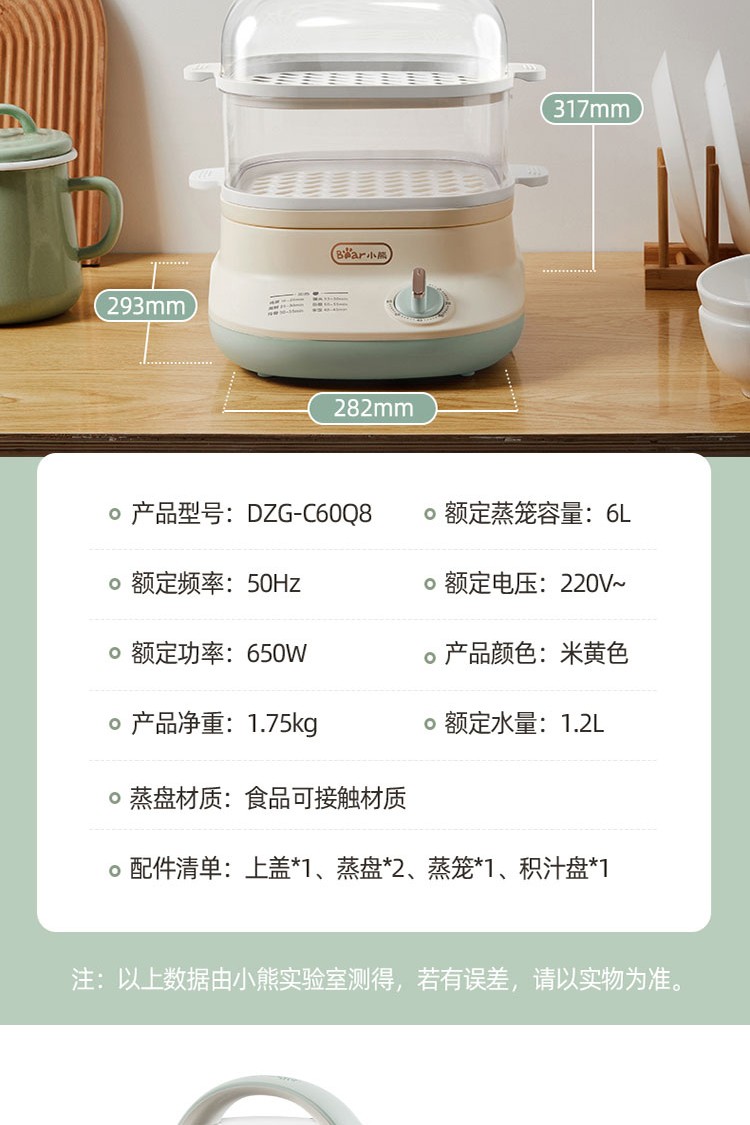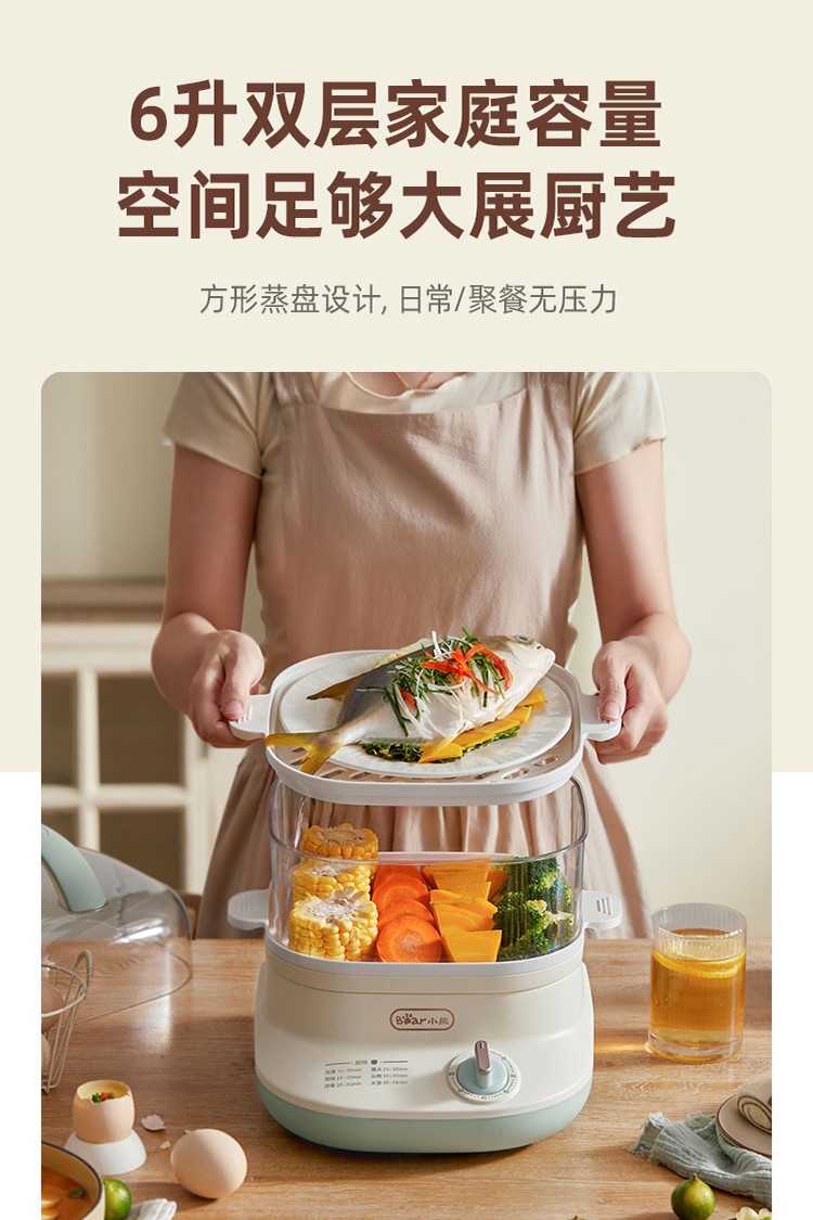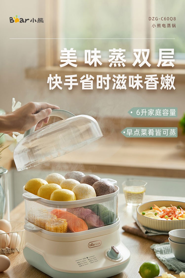 小熊电蒸锅煮蛋器蒸锅家用电蒸笼多功能双层大容量早餐电热煮锅 DZG-C60Q8