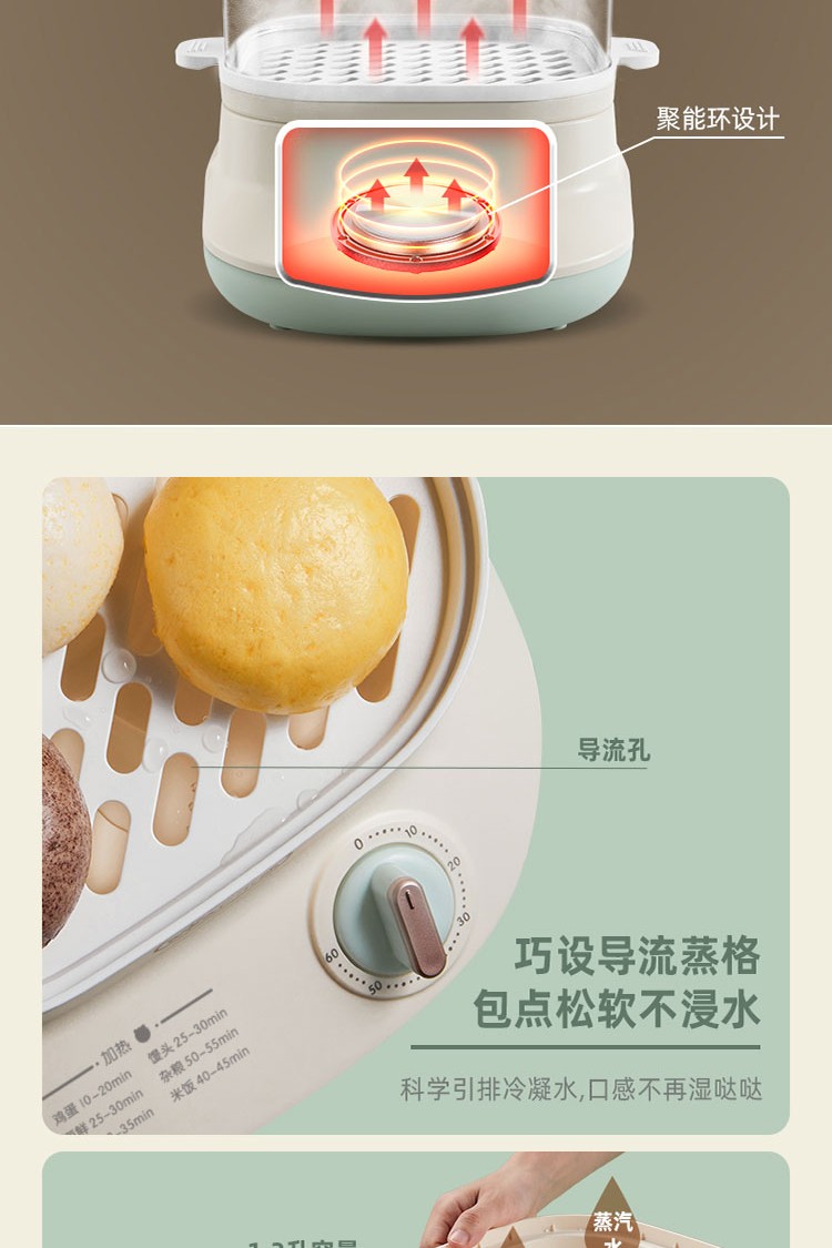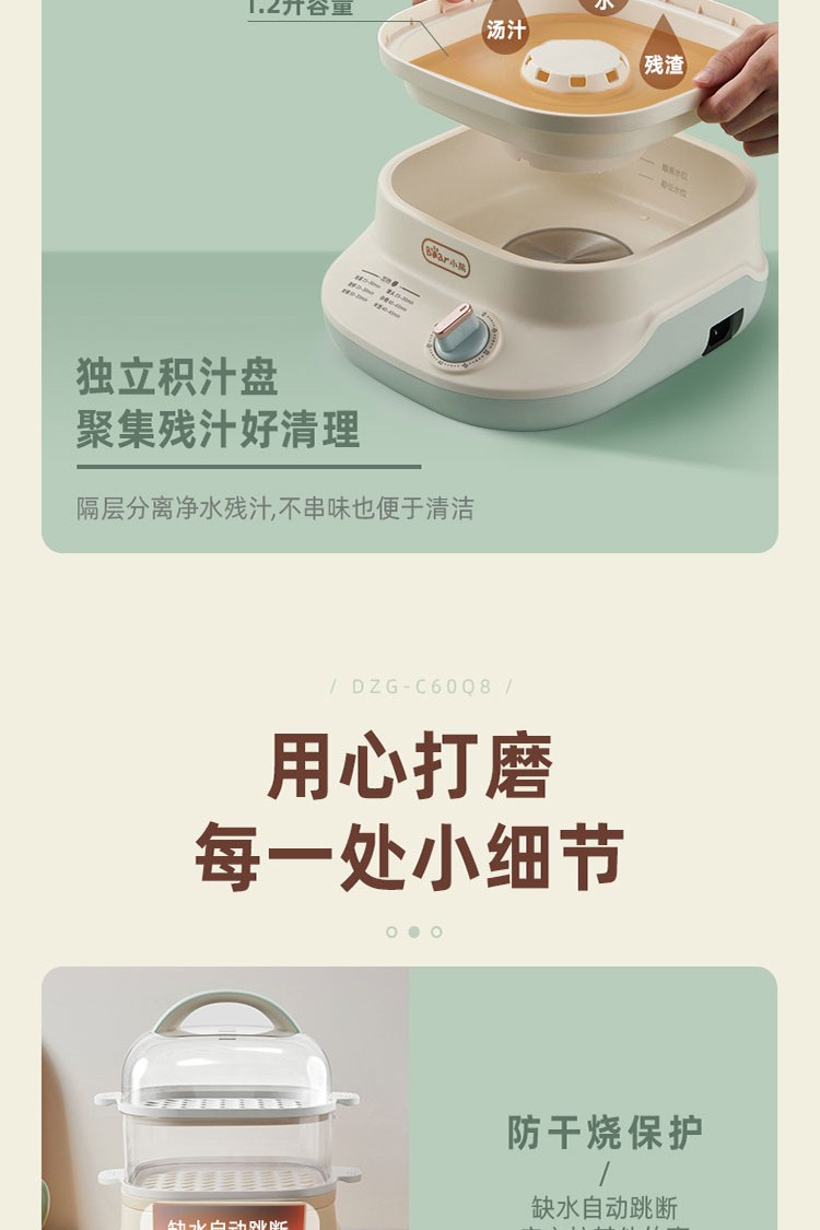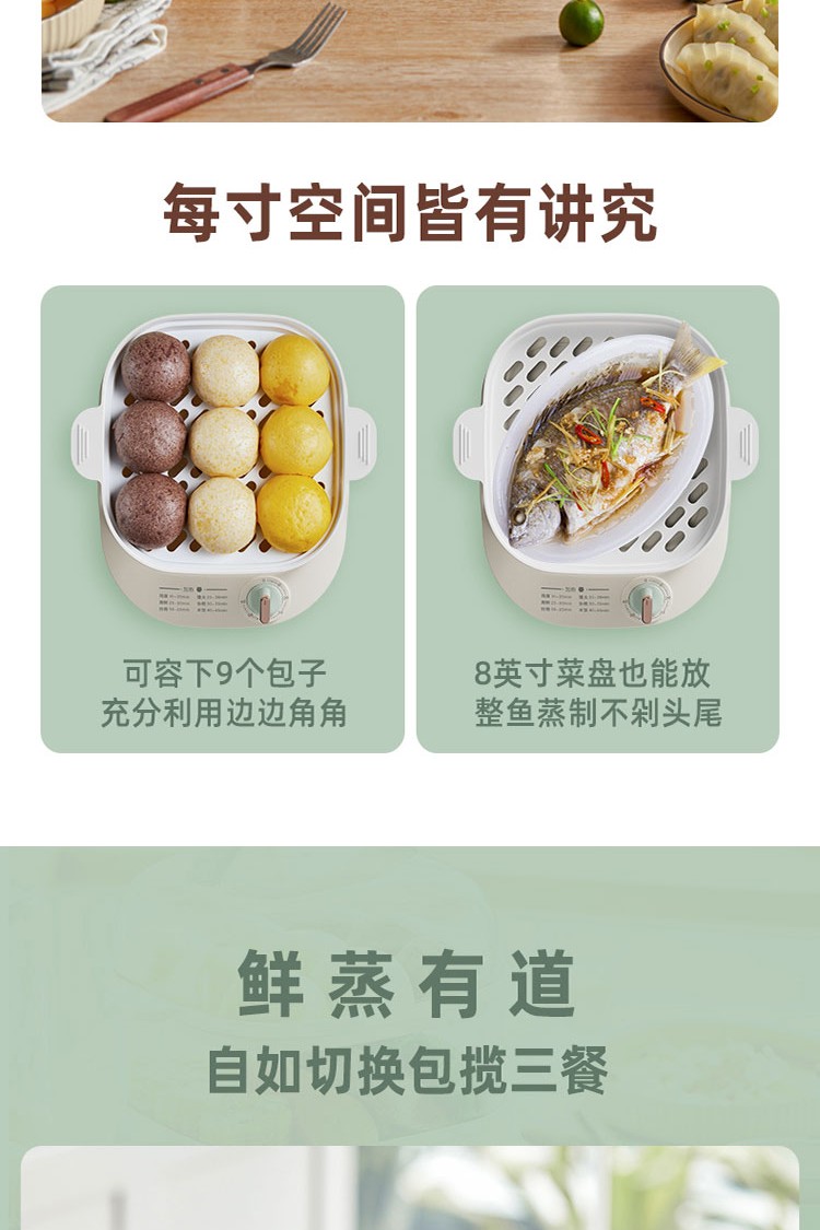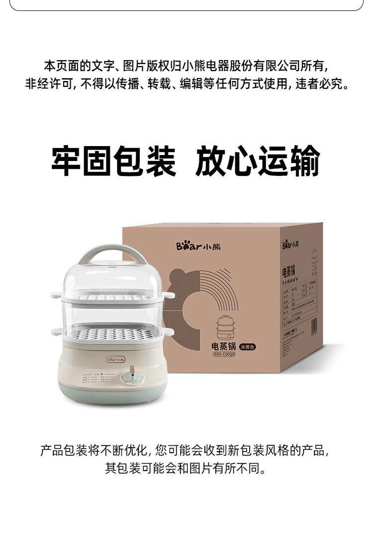 小熊电蒸锅煮蛋器蒸锅家用电蒸笼多功能双层大容量早餐电热煮锅 DZG-C60Q8