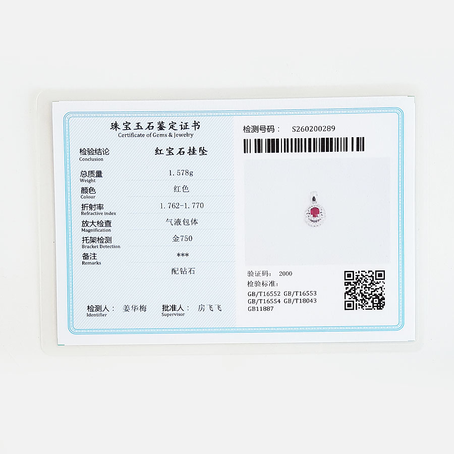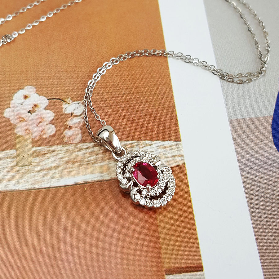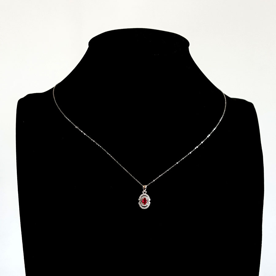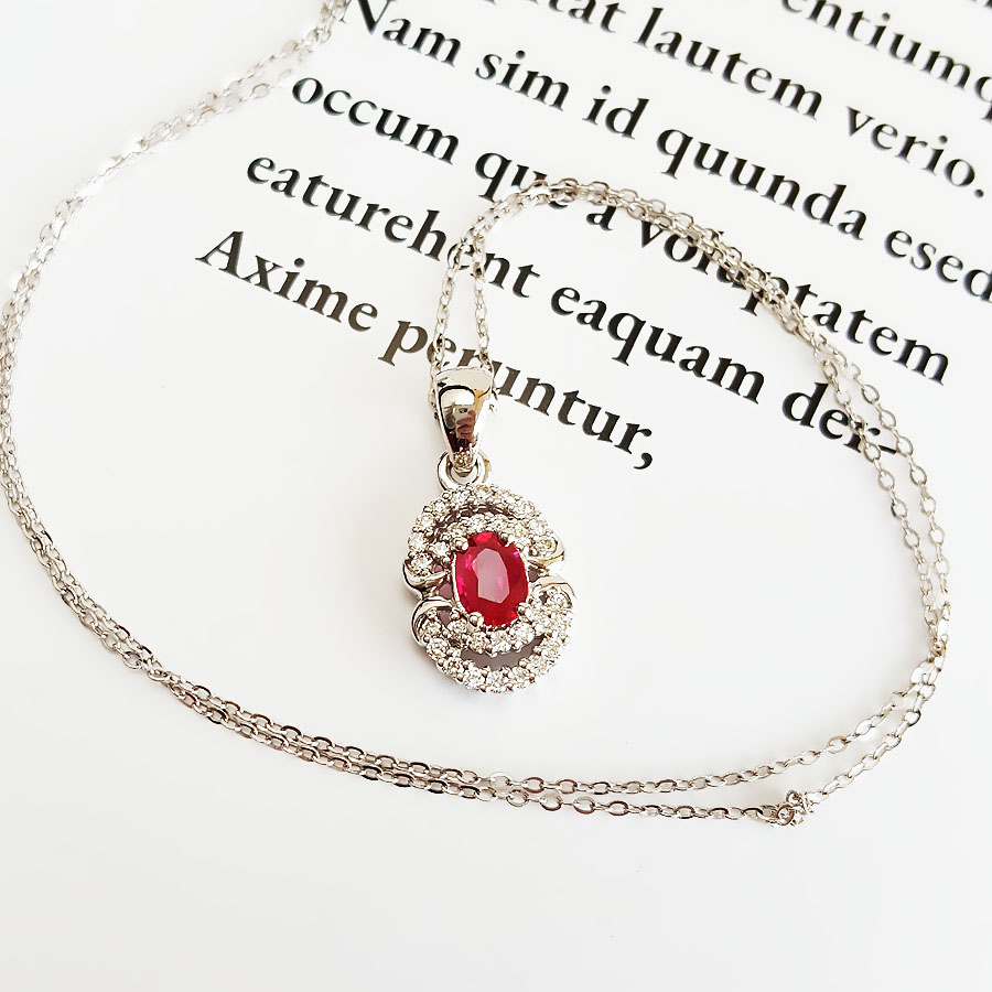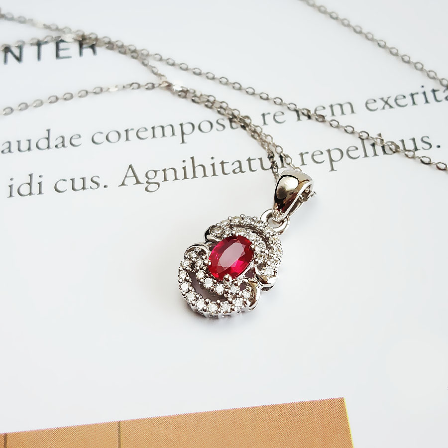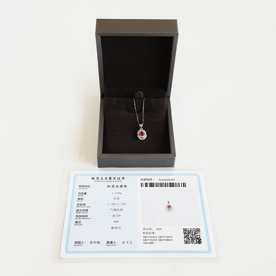 名称 | AU750白金镶钻镶天然近1克拉鸽血红红宝石吊坠项链 |