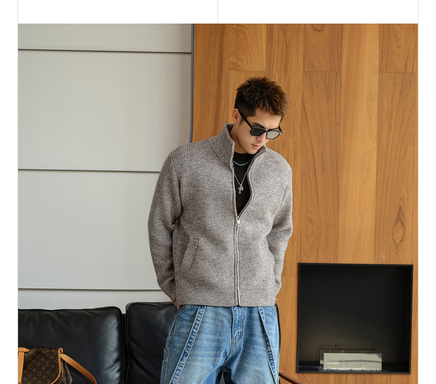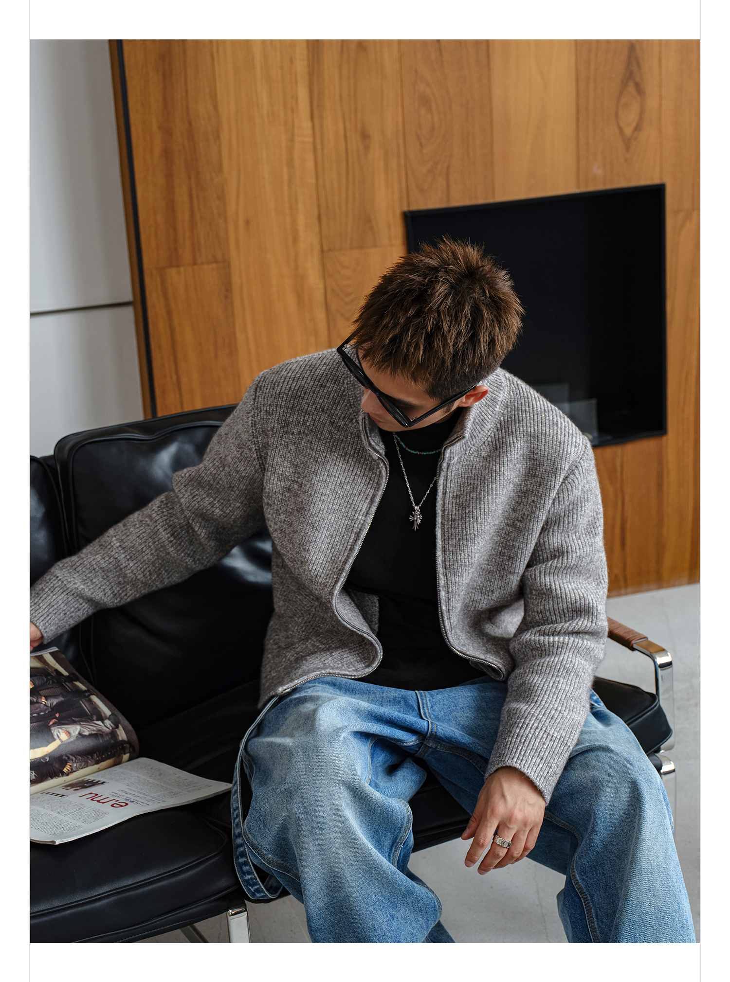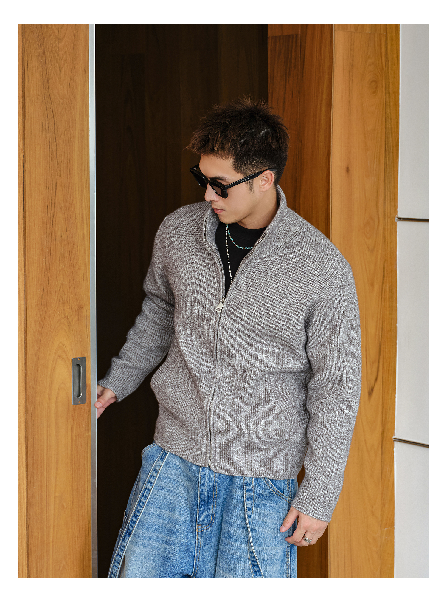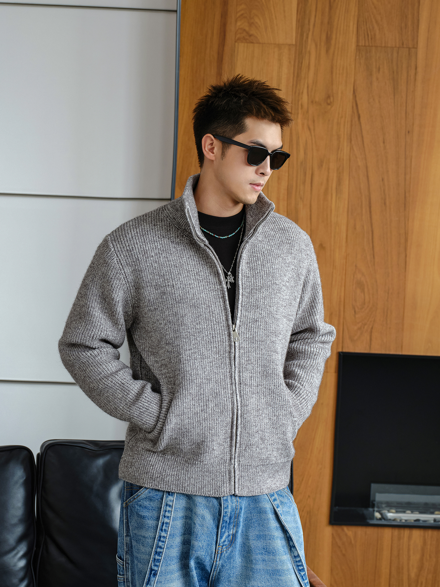 徐太浪【1000g重磅 保暖】灰色开衫毛衣男秋冬大码休闲针织衫外套