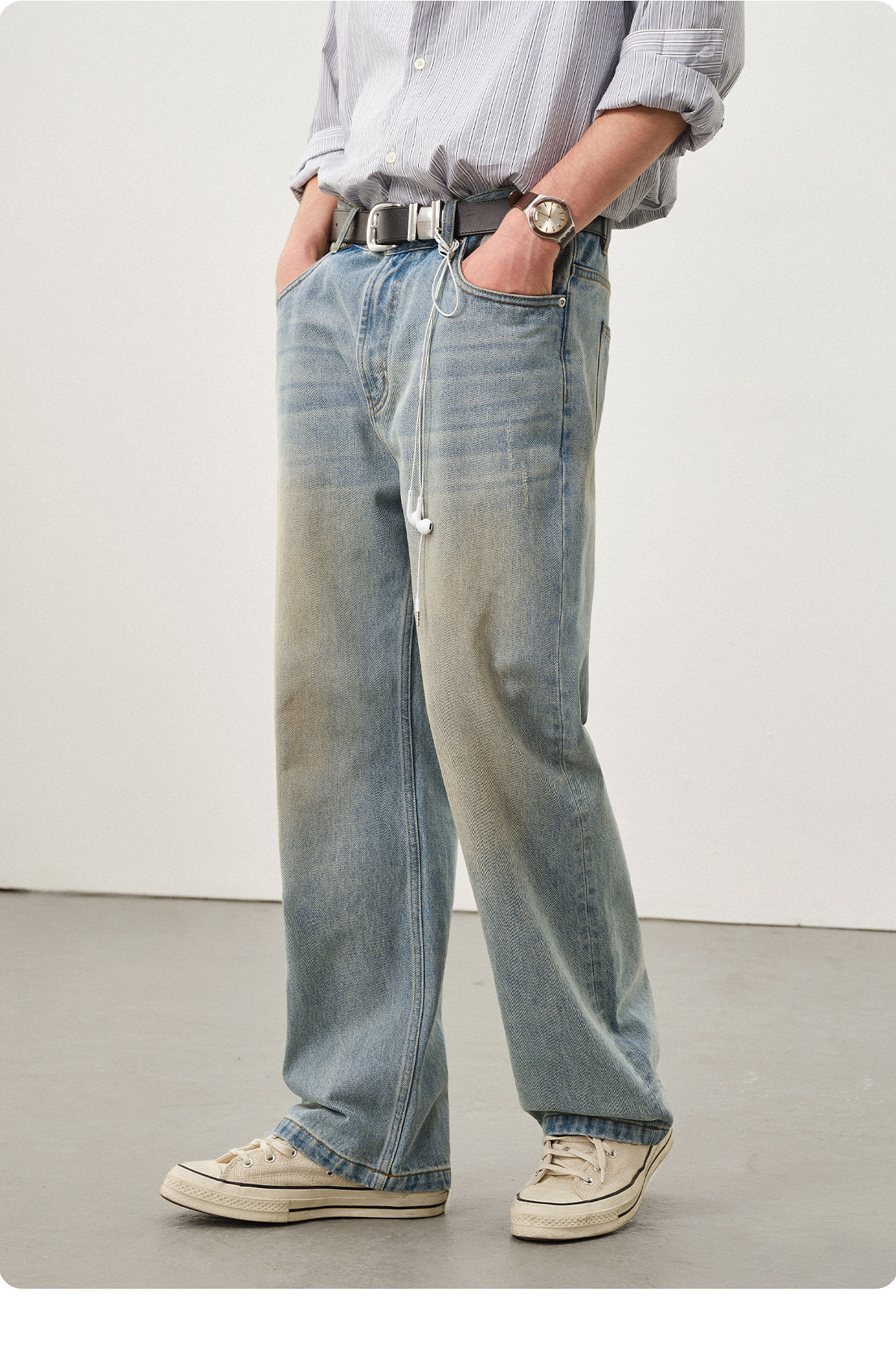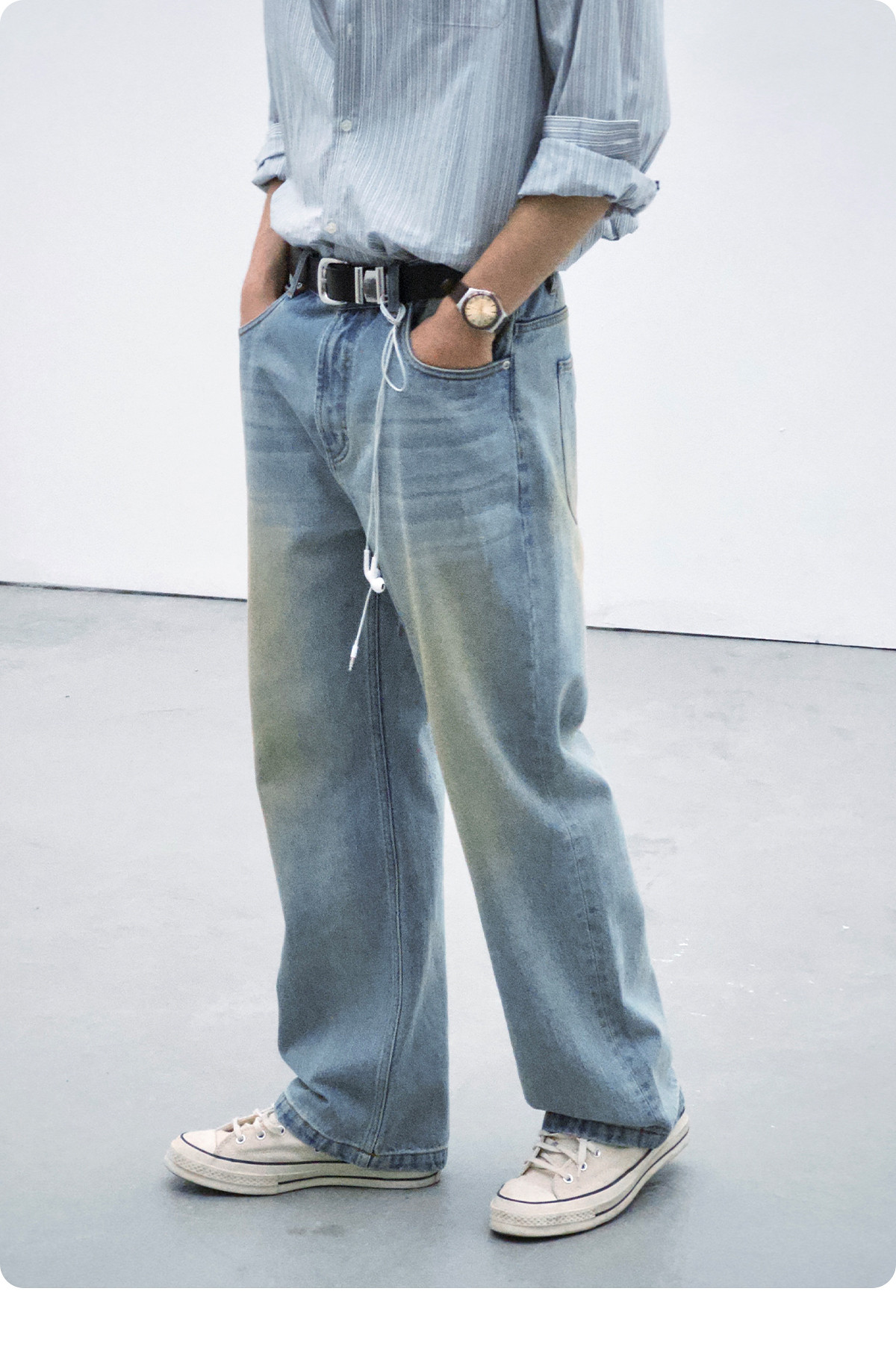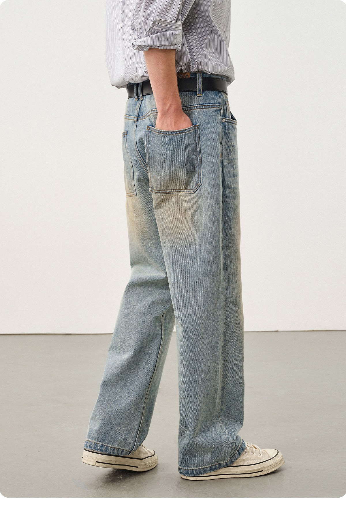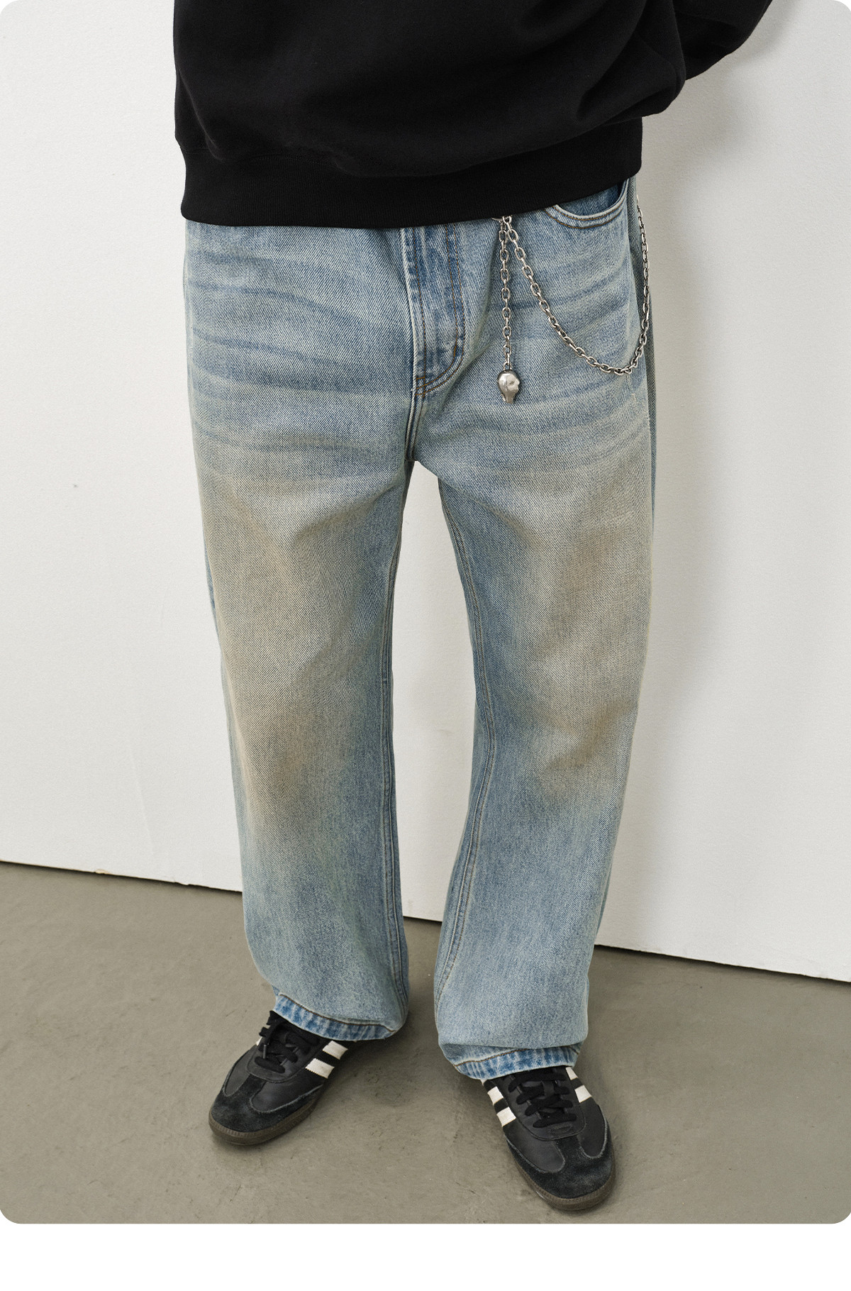 714street水洗做旧复古牛仔裤男2025秋潮牌纯棉直筒cleanfit裤子