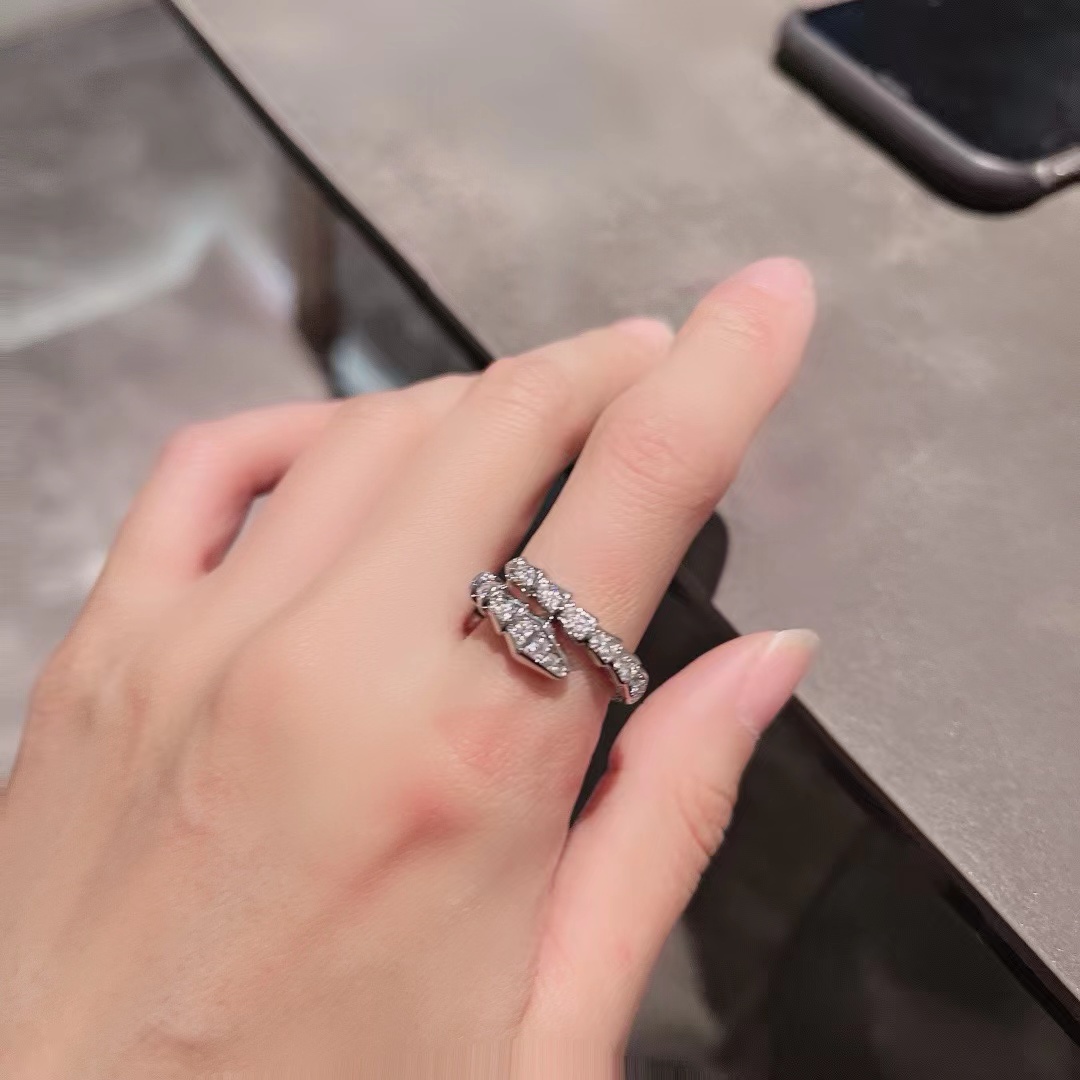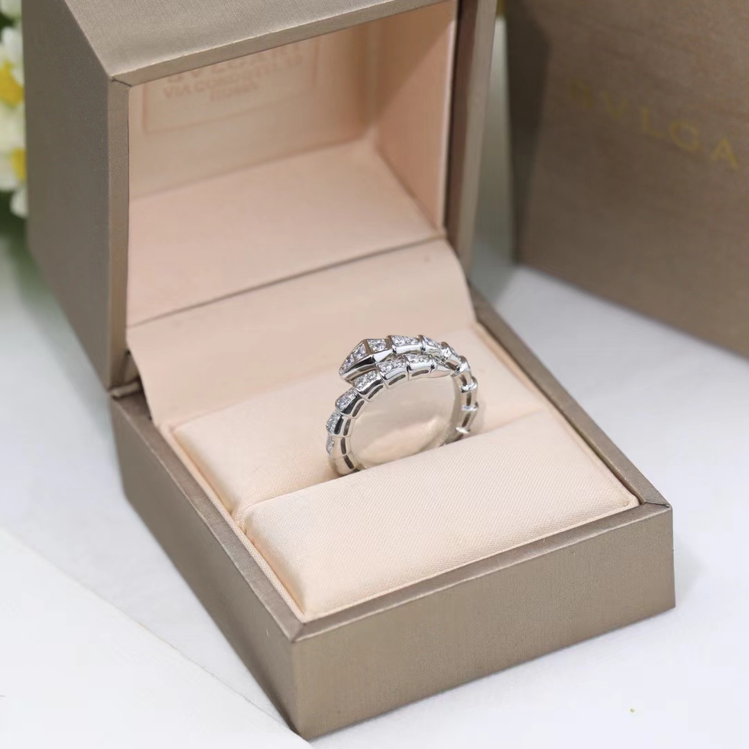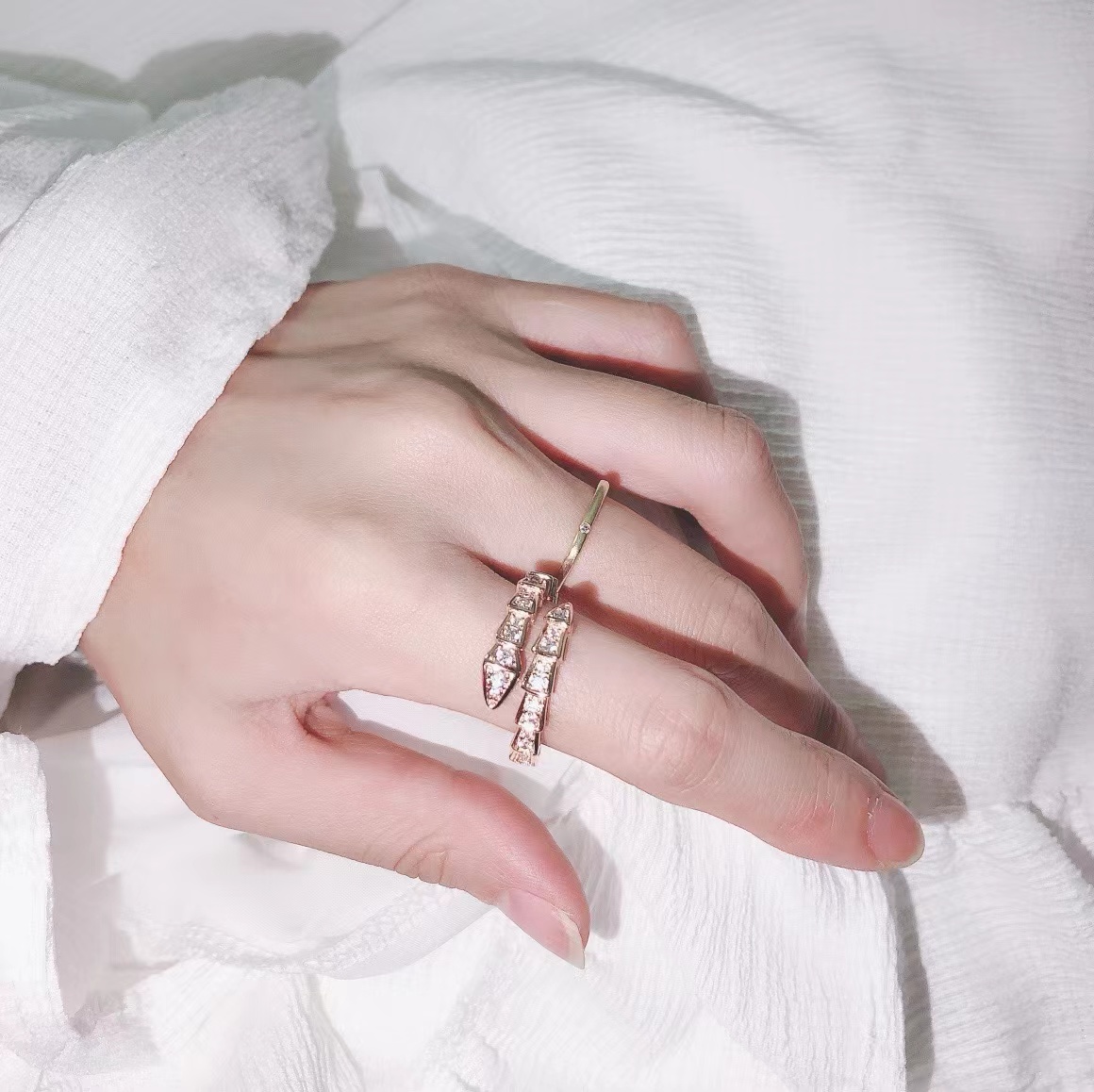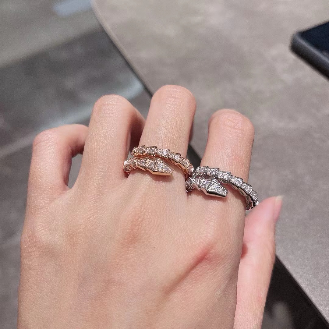 BVLGARI宝格丽蛇戒指 🐍以令人沉醉的绝妙设计捕捉Sernti的魅力、诱惑和迷人的性感,以此向其灵兽致敬。此款戒指鳞片密镶钻石,梨形明亮式切割钻石尽显极致光芒,呈现灵蛇独有的蔓延弯曲,在手部蔓延萦绕,魅惑动人。 Sernti高级珠宝 亚金材质电镀18k白金色,玫瑰金色!