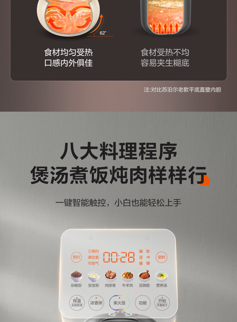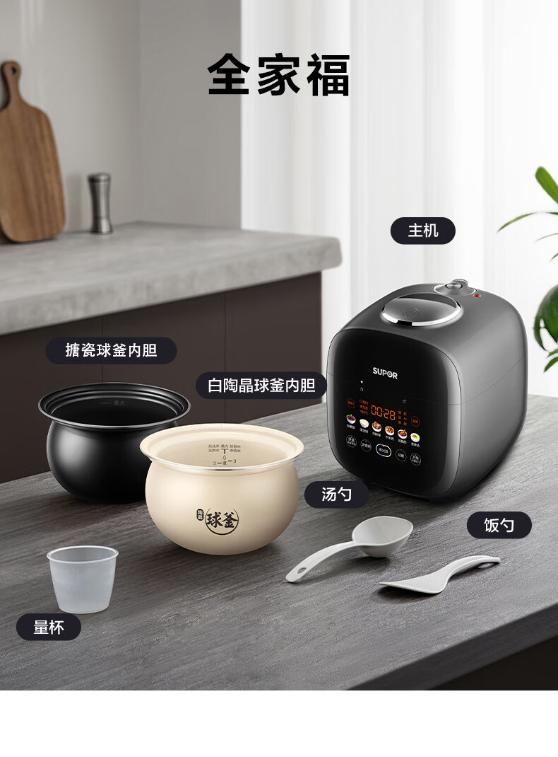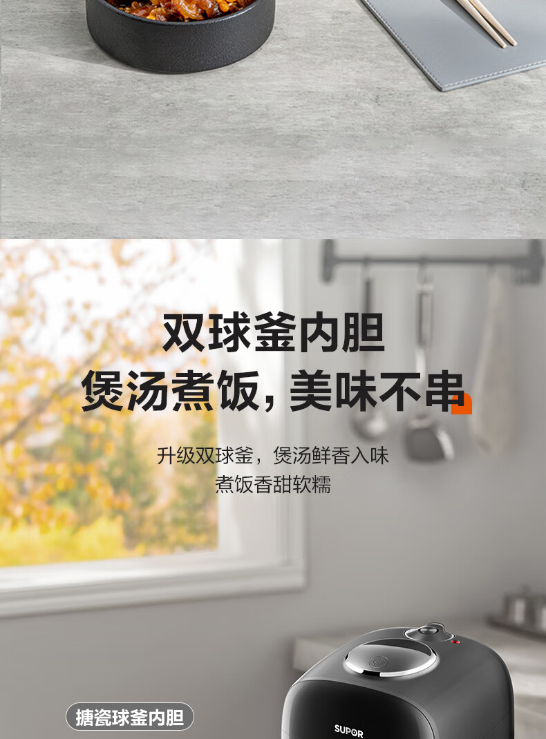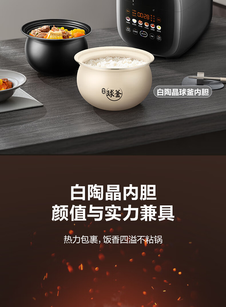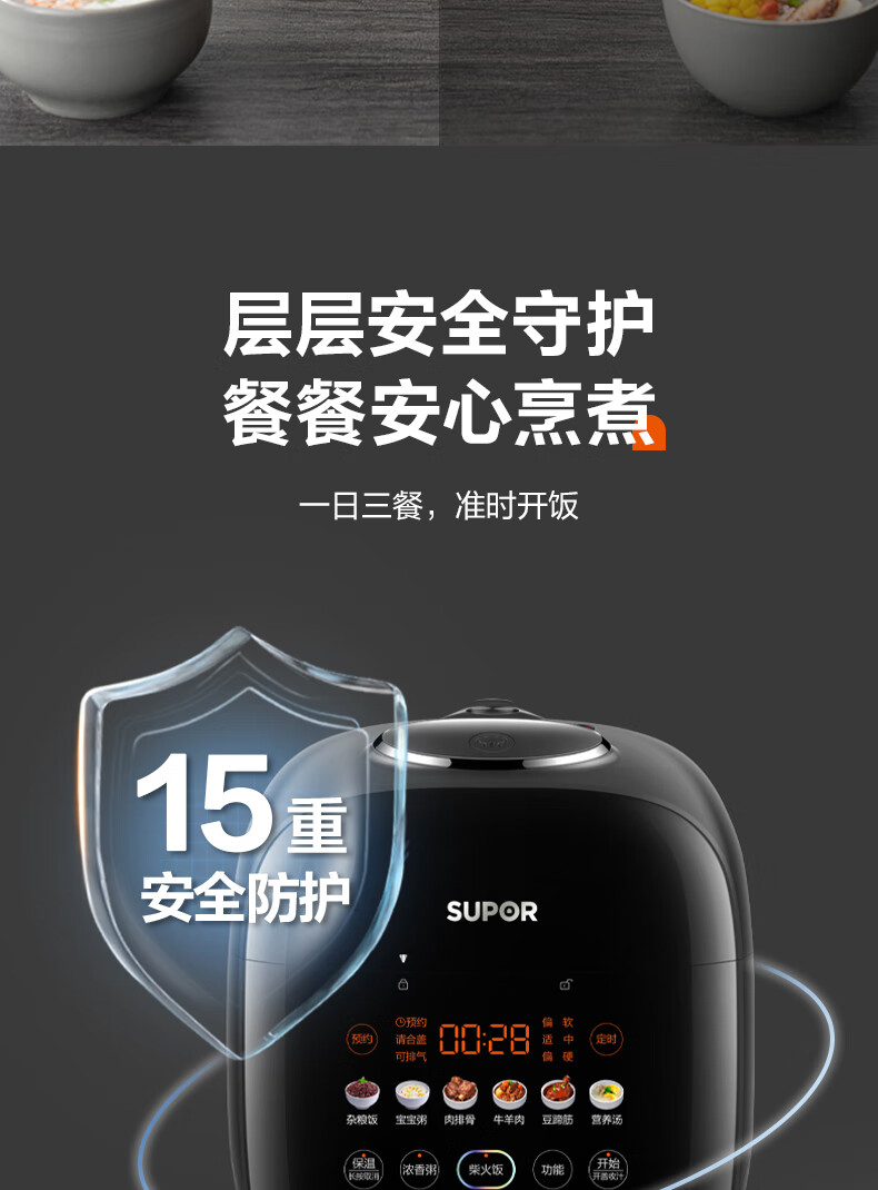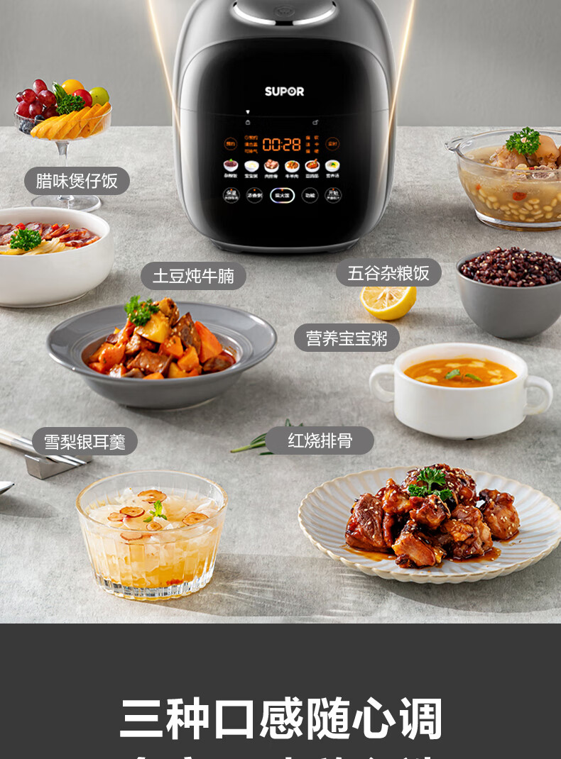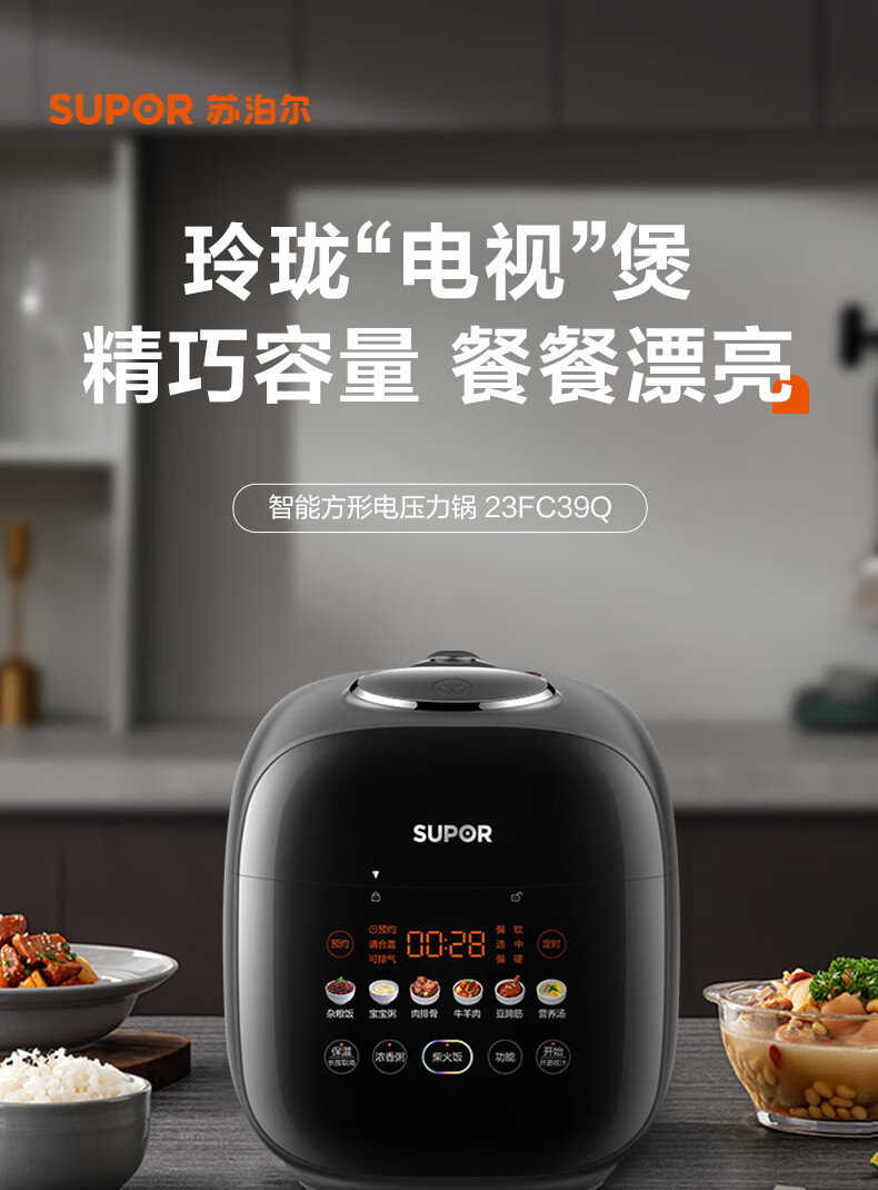 苏泊尔(SUPOR)电压力锅家用小型2.3L精巧容量炫酷大屏控制双球釜内胆开盖收汁智能预约高压锅压力锅SY-23FC39Q
