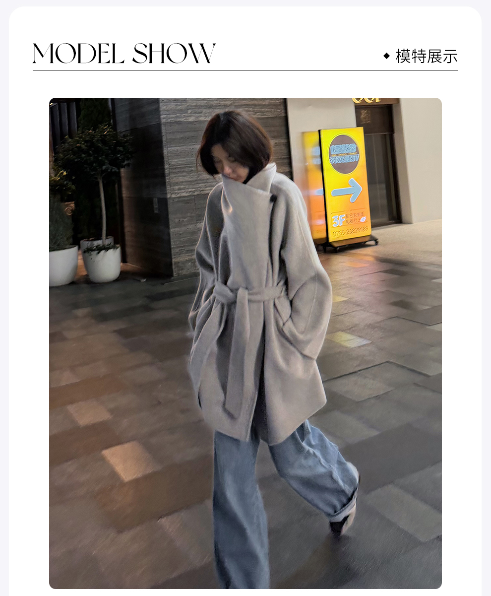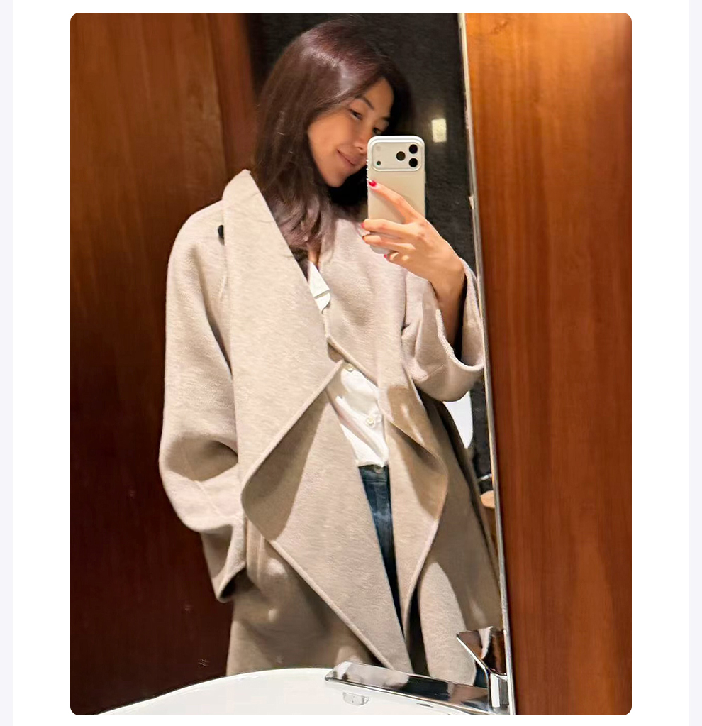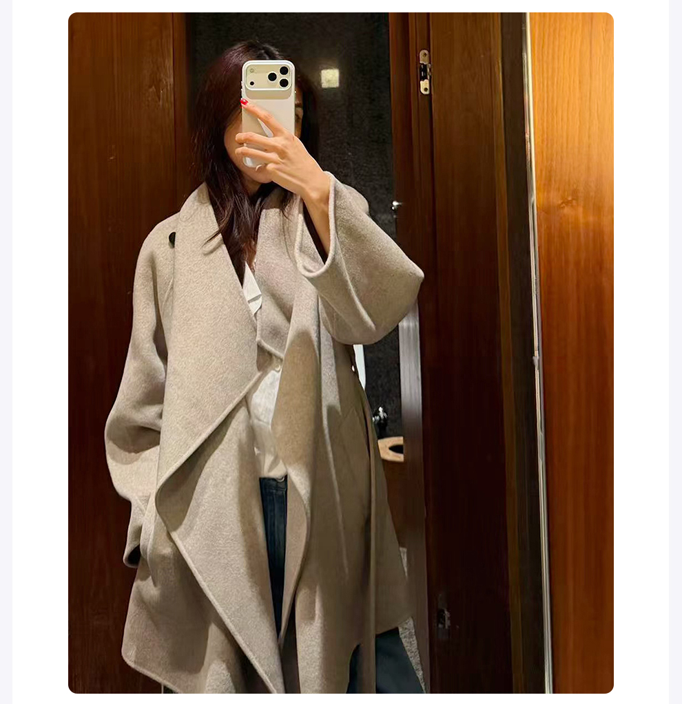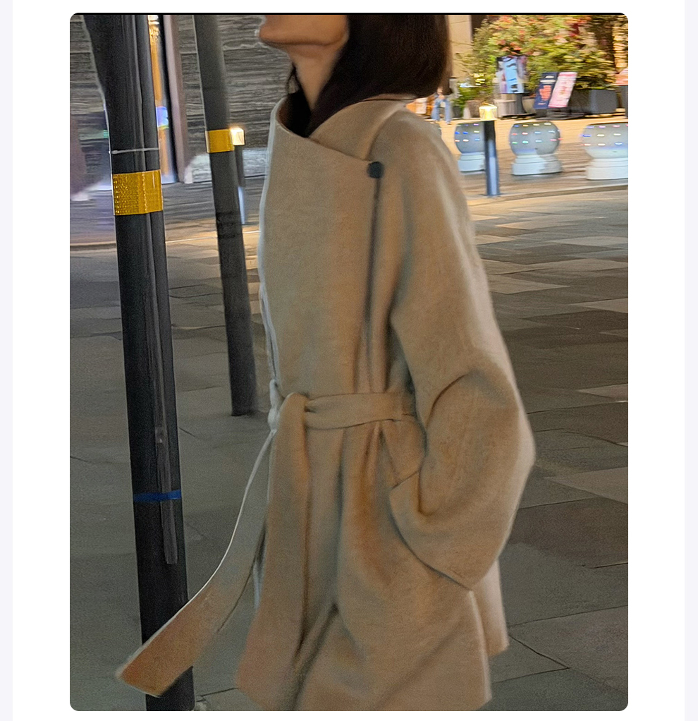 ROMI STUDIO”秘鲁羊驼毛羊毛“气质收腰双面毛呢大衣RWCWW86998