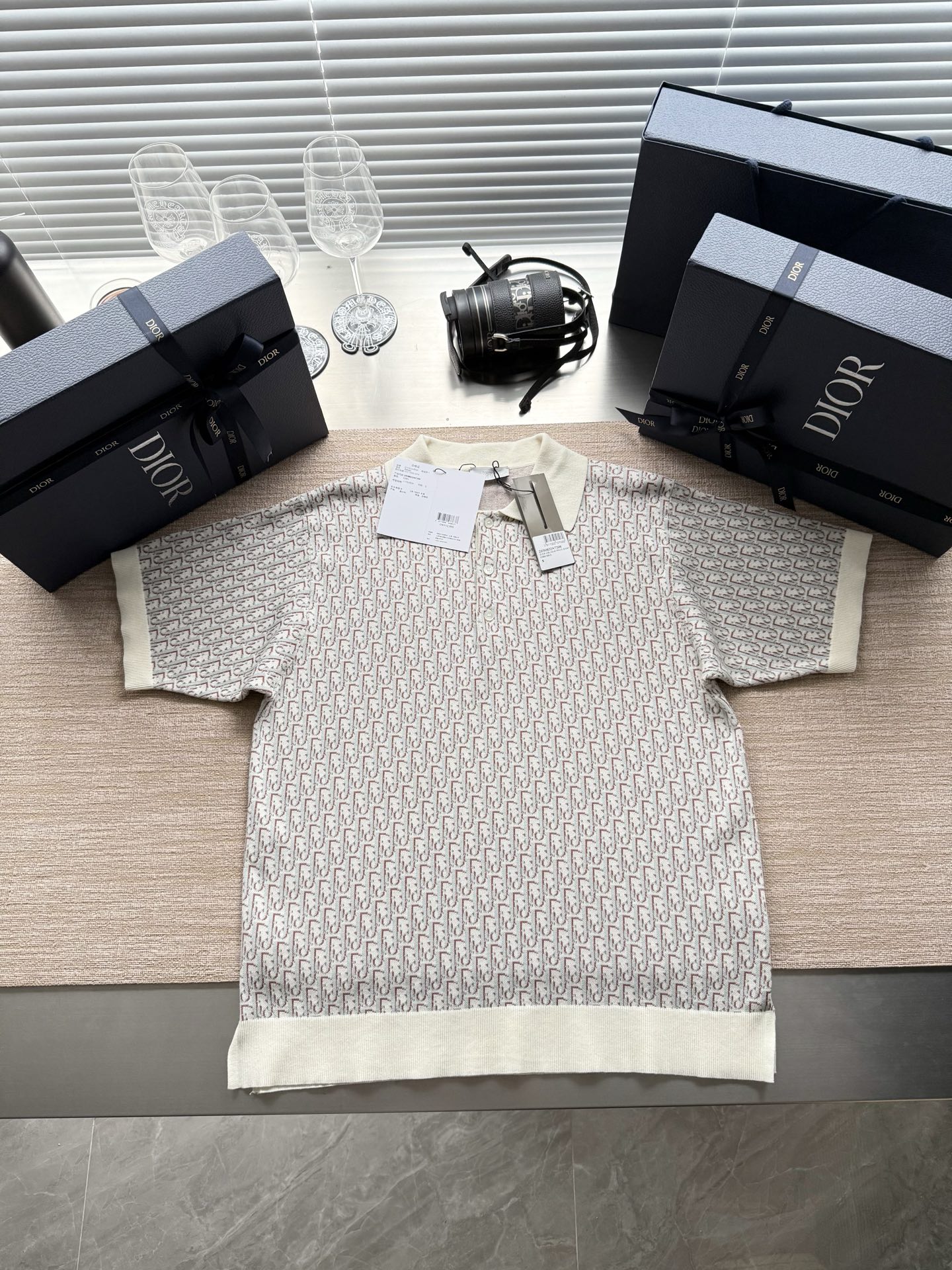 Dior25ss字母logo满印老花短袖Polo衫‼️整件衣服12000购买Zp拆解打造,定制Oblique针织提花面料,做到100%全棉进口纱线,通体饰以米色 蓝色和黑色Oblique印花,门襟开模定制Dior标志珍珠母贝纽扣,定织标志性罗纹衣领 袖口 下摆,意大利进口制造,真正做到1:1copy 闭眼入 码数:S M L XL