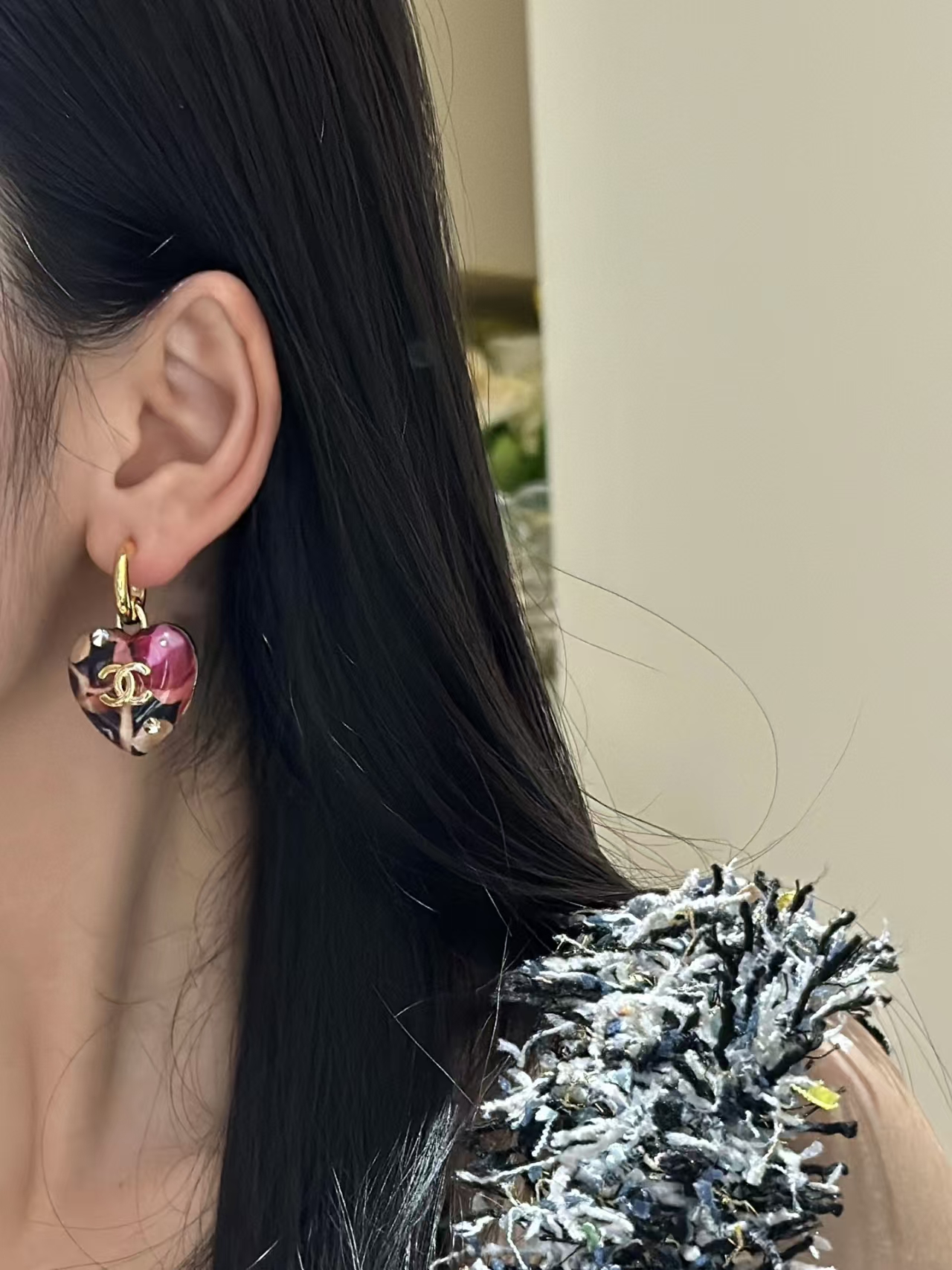 香奶奶 双C 心形设计-耳环 彩色
