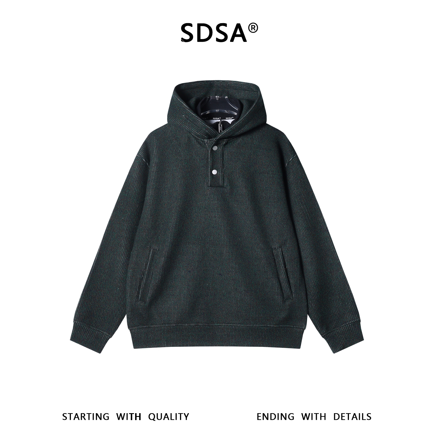 SDSA男士秋冬新款痞帅男装高街撞色按扣连帽针织卫衣百搭宽松上衣