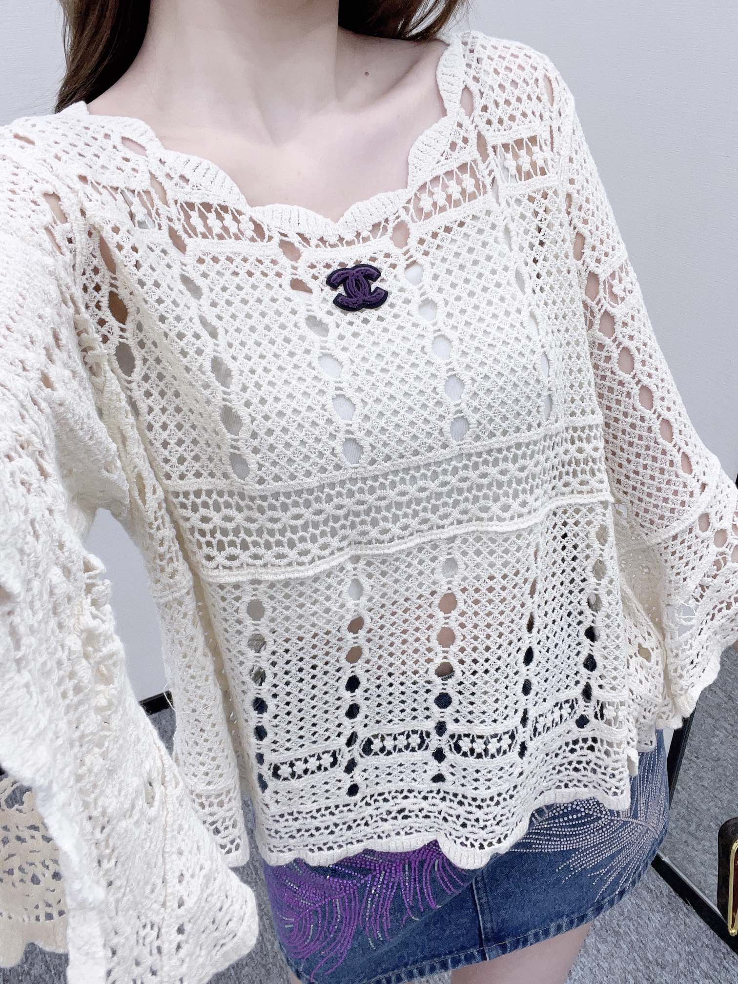 ♥香奶奶♥2025新品上架 绣花镂空套头针织衫