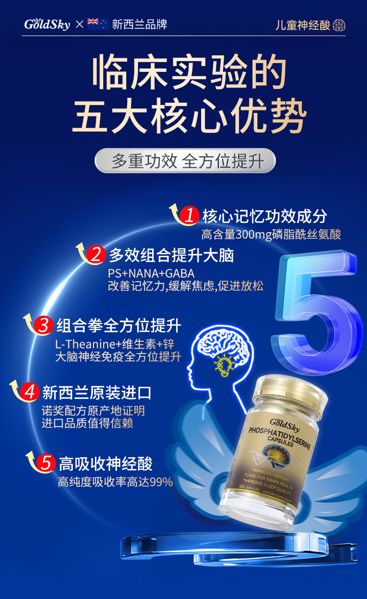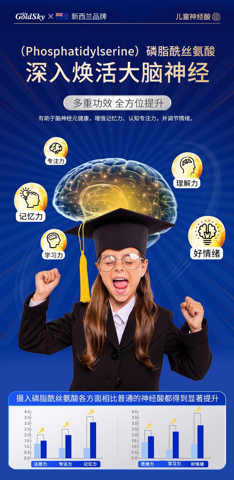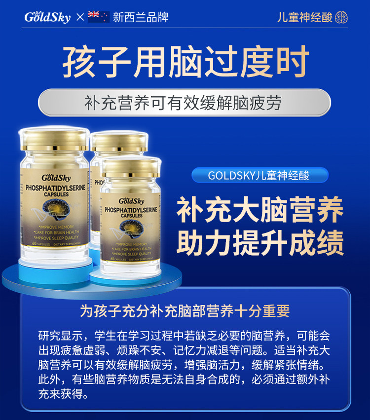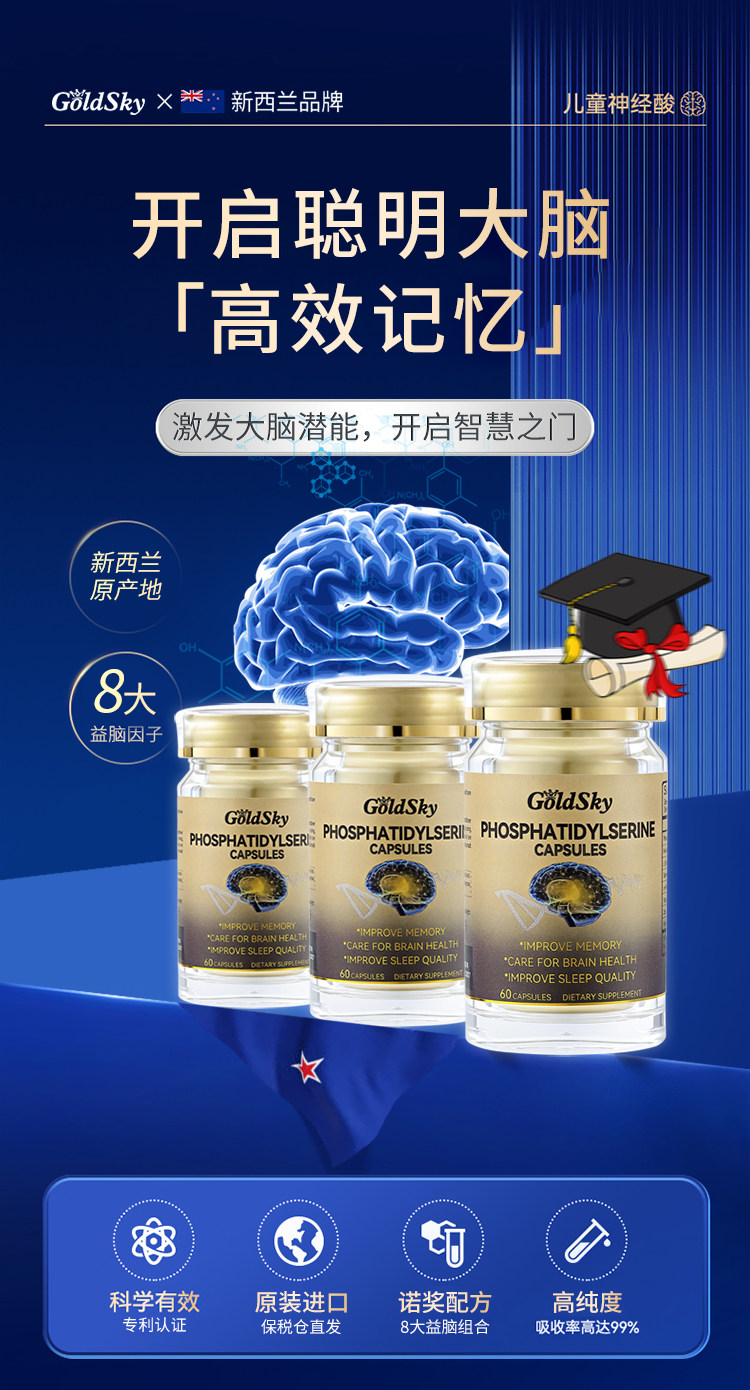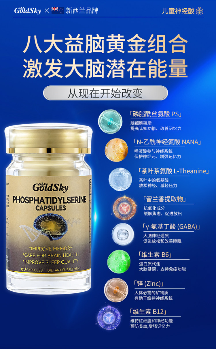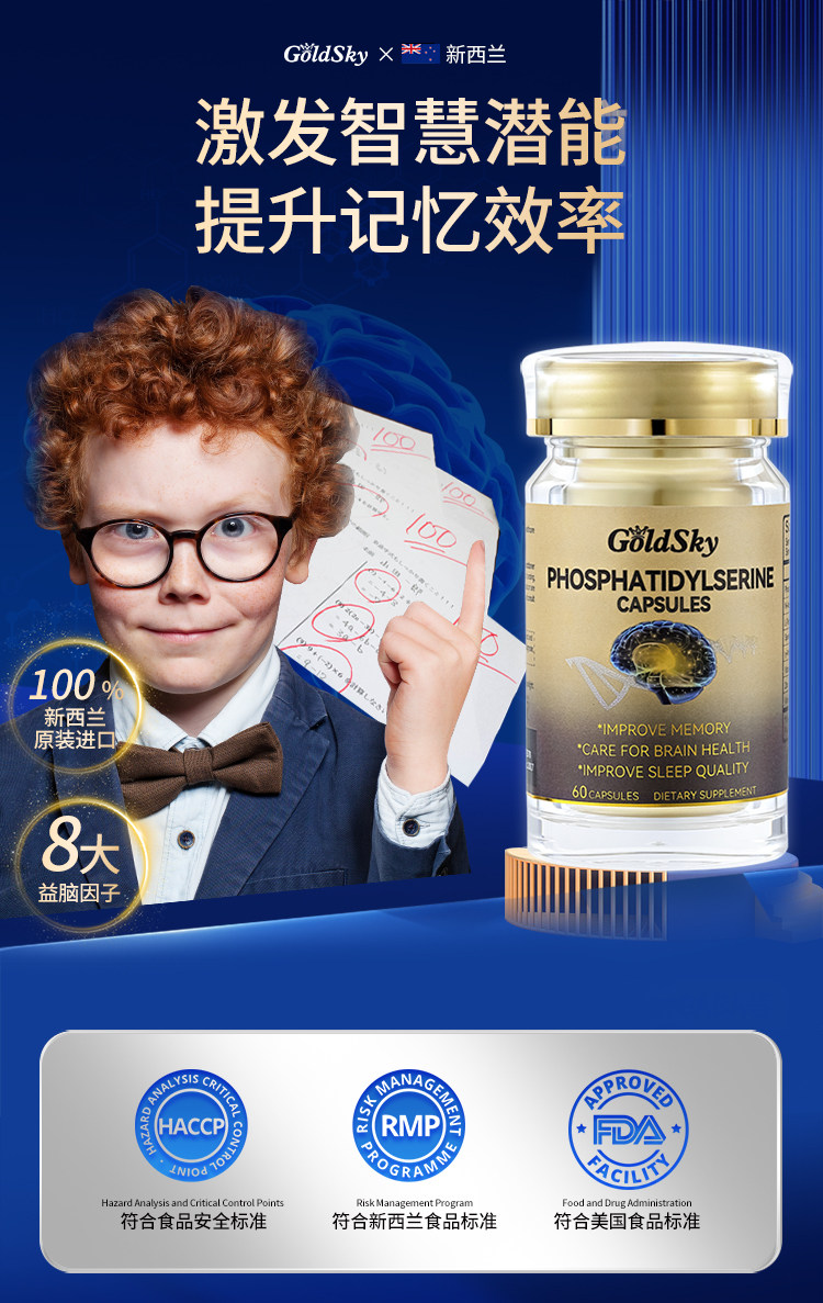 GOLDSKY进口脑黄金神经酸酸磷酯酰丝氨酸青少年记忆专注力增强
