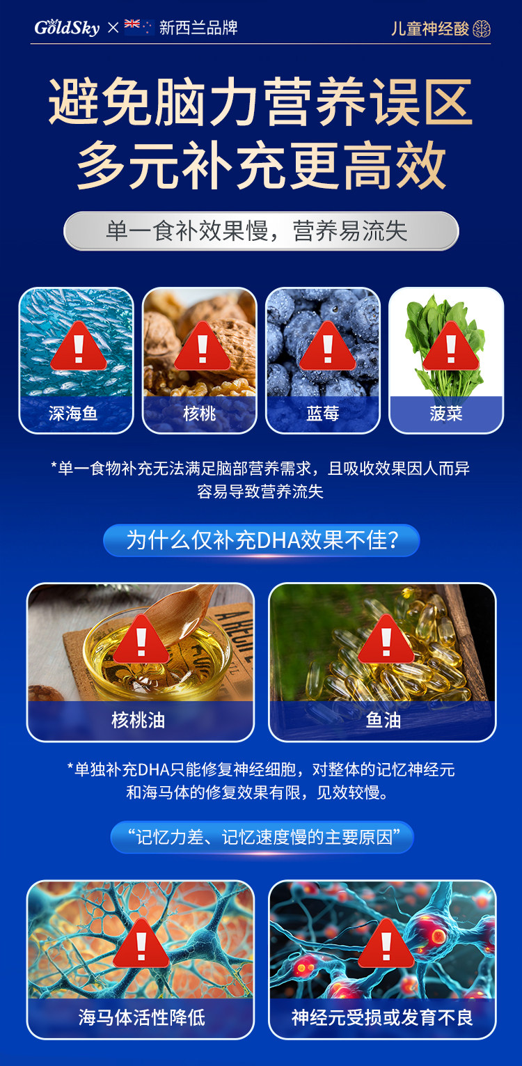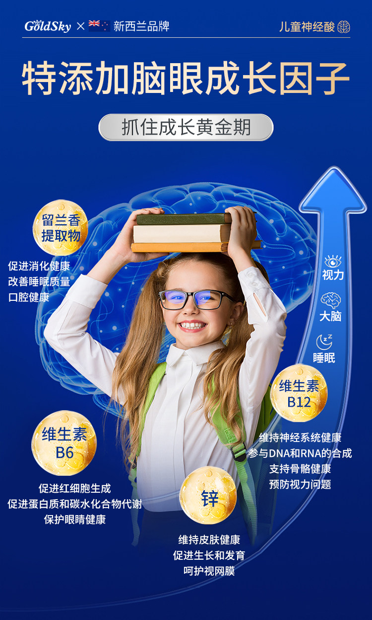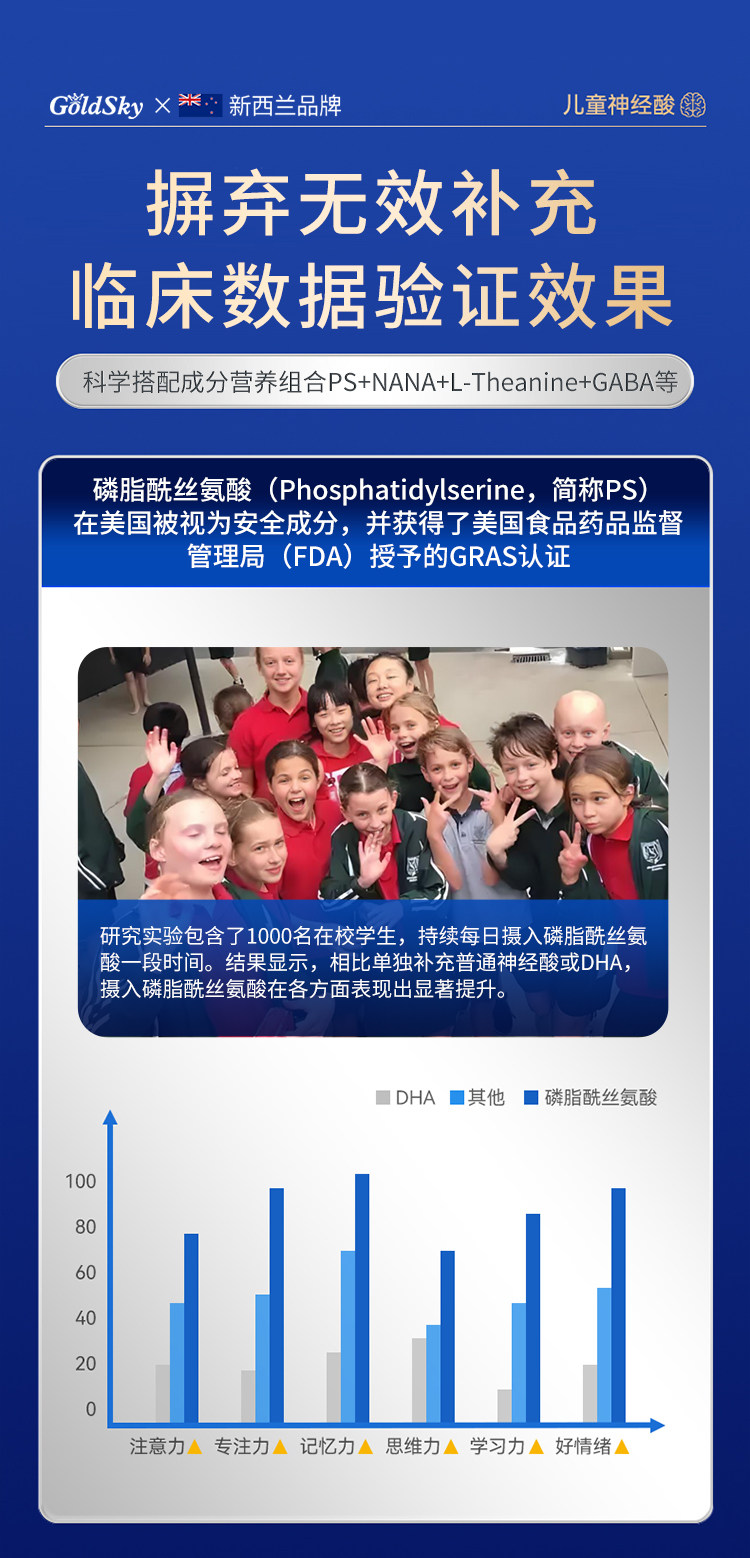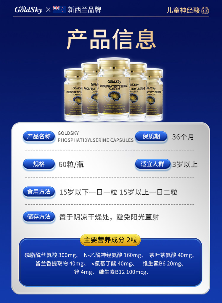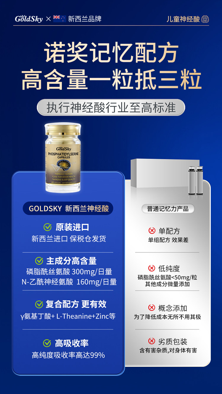 GOLDSKY进口脑黄金神经酸酸磷酯酰丝氨酸青少年记忆专注力增强