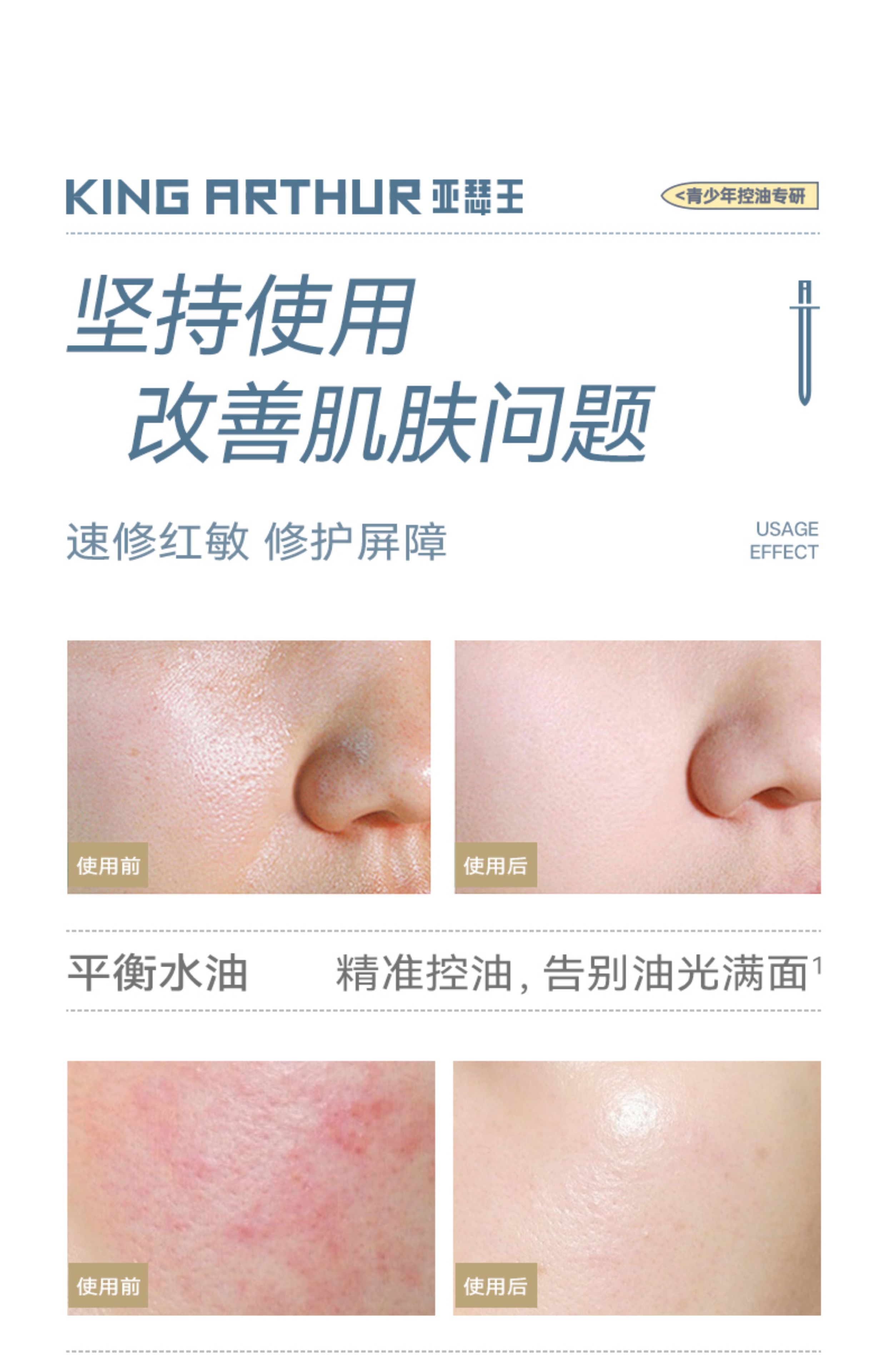 亚瑟王青少年平衡控油补水保湿专研男女生护理水乳套装