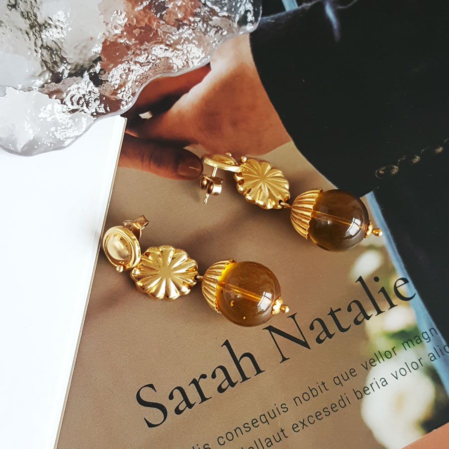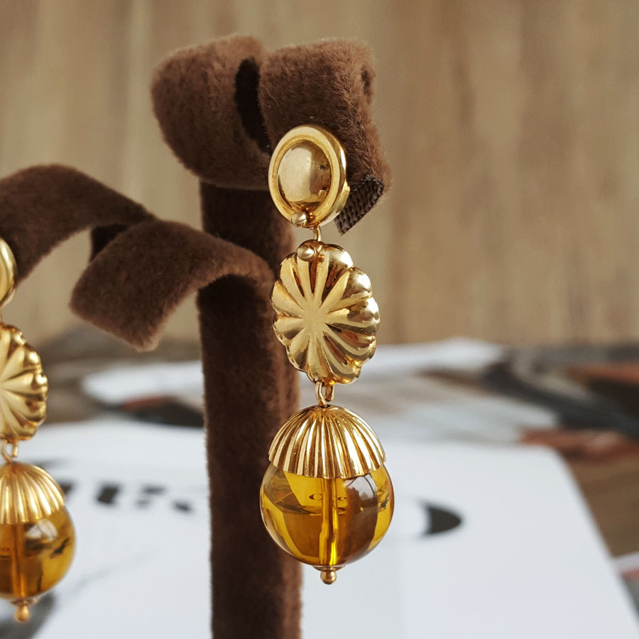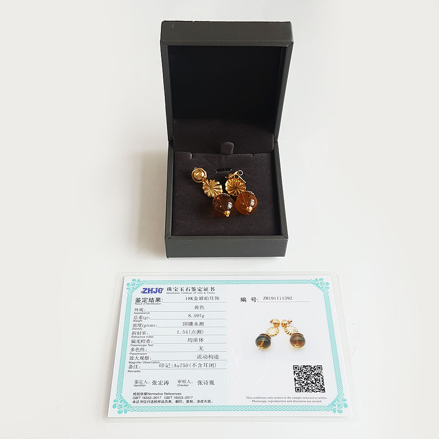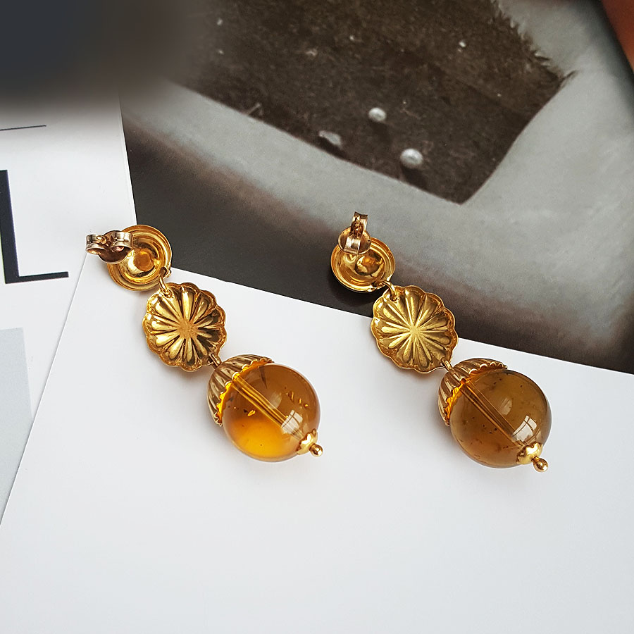 名称 | AU750黄金镶天然墨西哥蓝珀琥珀圆珠宫廷风耳环 |