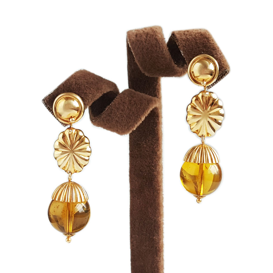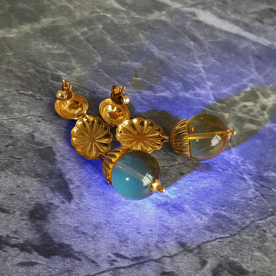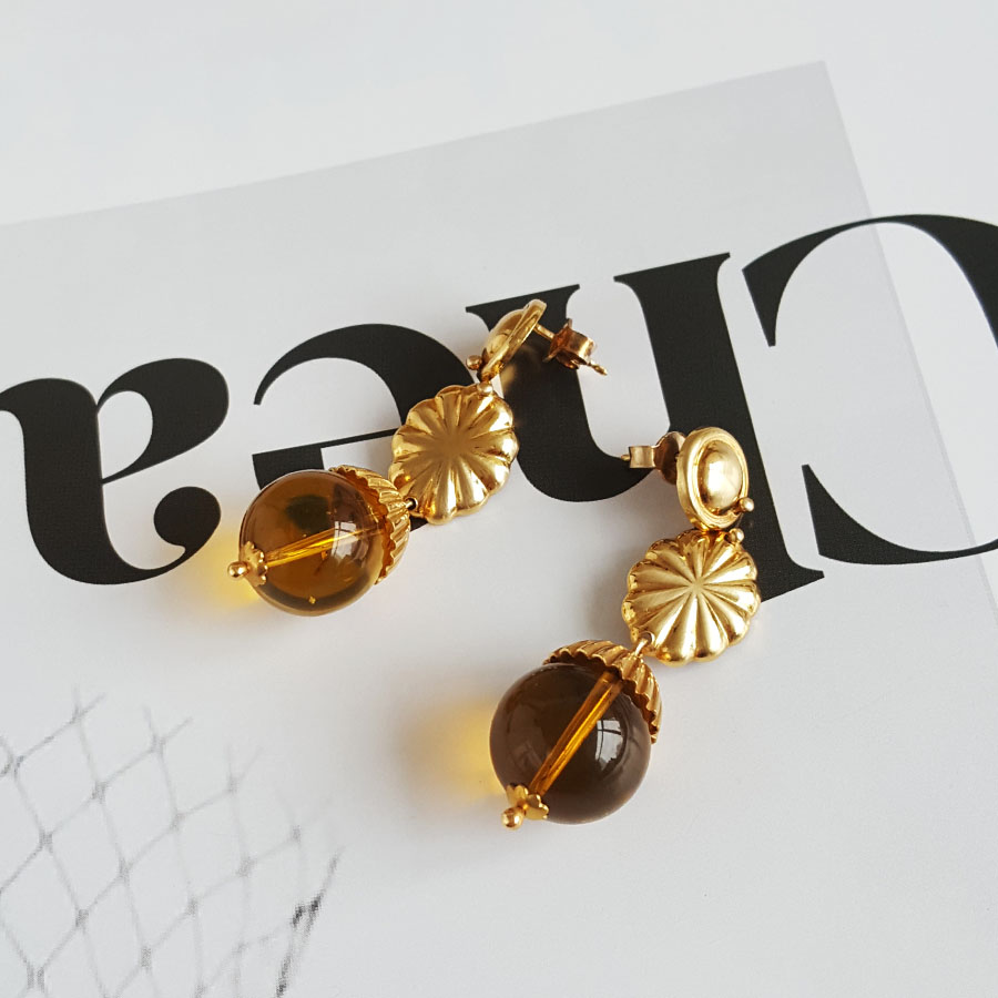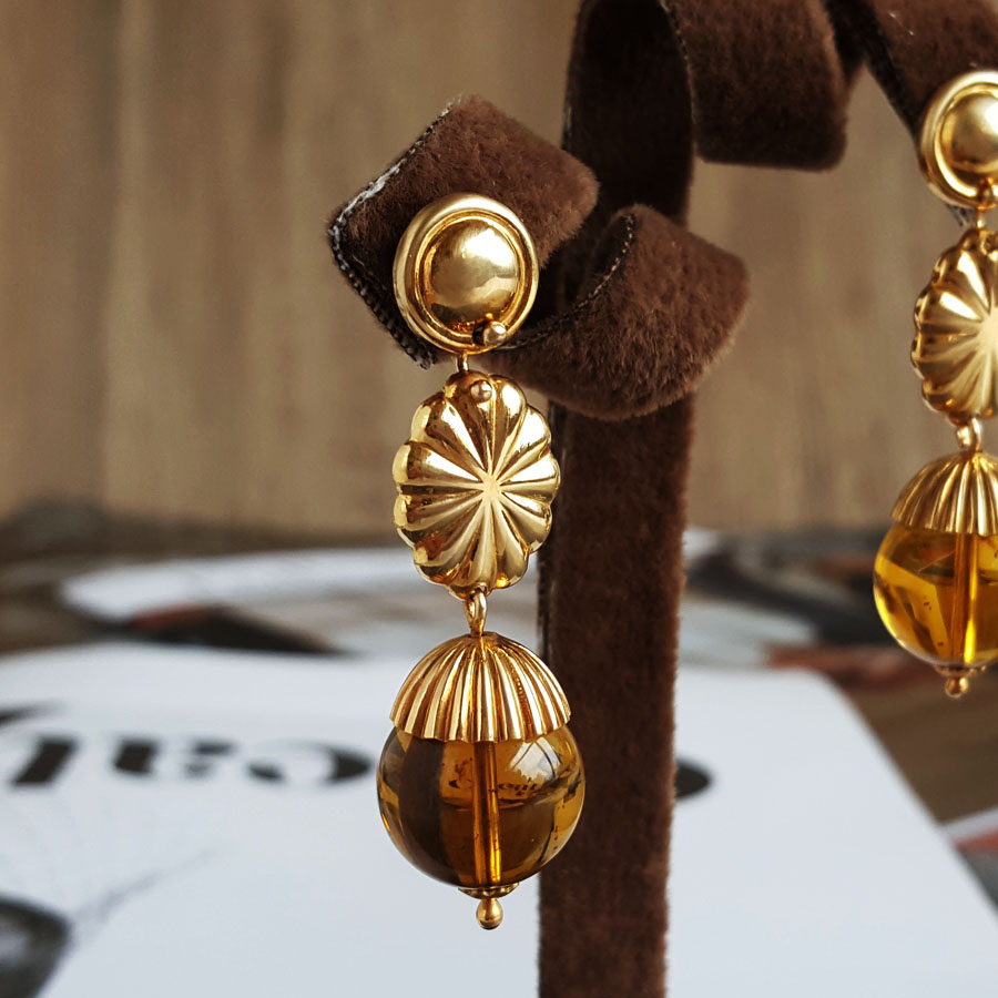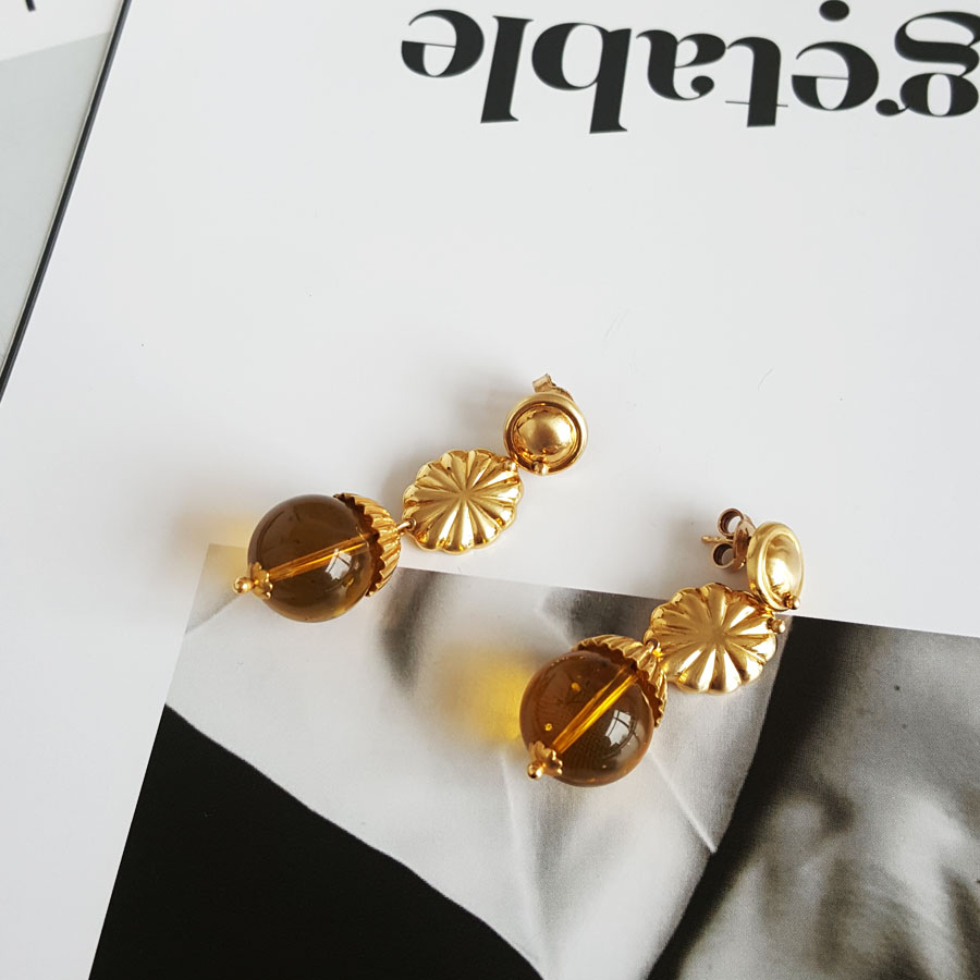 名称 | AU750黄金镶天然墨西哥蓝珀琥珀圆珠宫廷风耳环 |