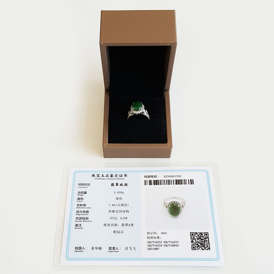 【天然正品】AU750白金豪镶钻镶天然冰种满绿蛋面翡翠戒指240325NJM10 现售价:7380