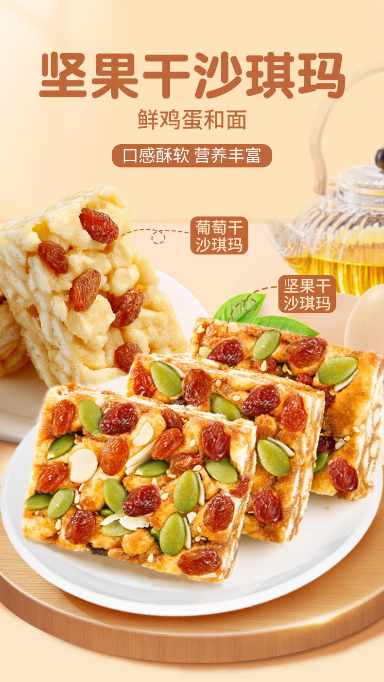 【口感酥软!营养丰富】沙琪玛多口味传统糕点老式怀旧软糯夜宵早餐充饥零食散装休闲下午茶点心。ry
