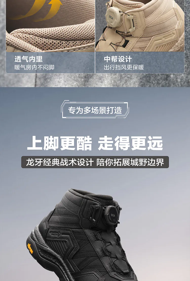 龙锋中帮战术通勤靴加棉版户外徒步登山舒适休闲百搭鞋