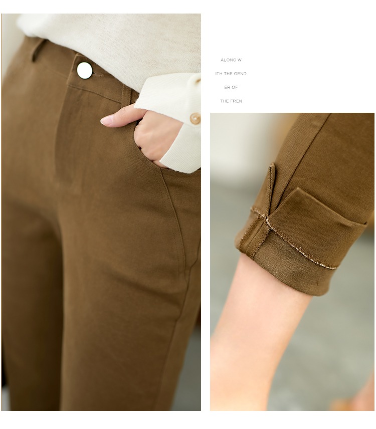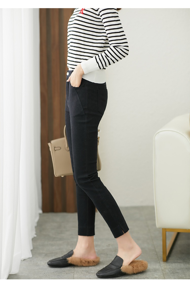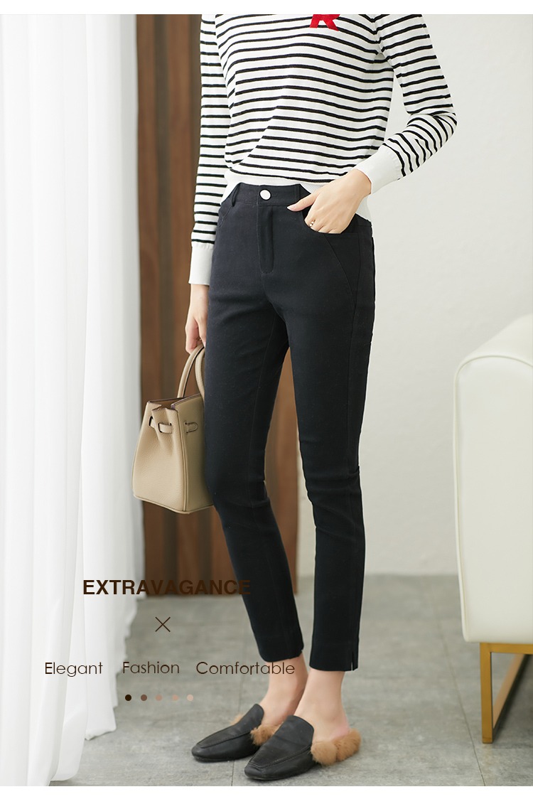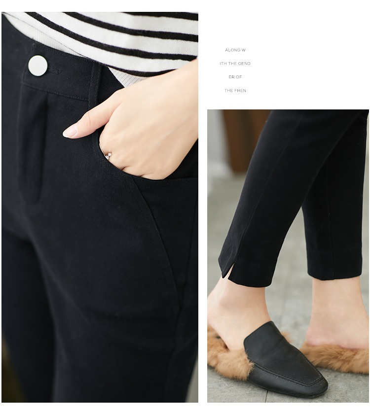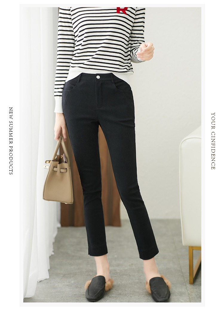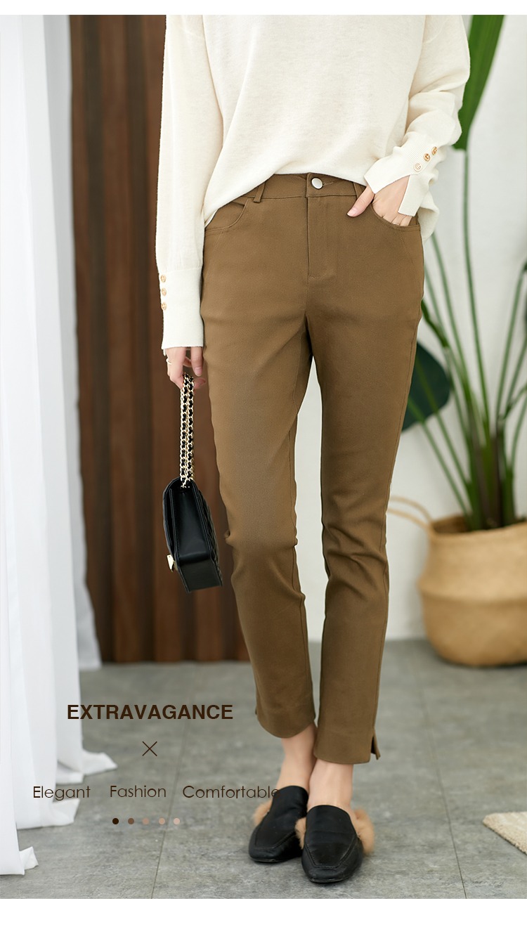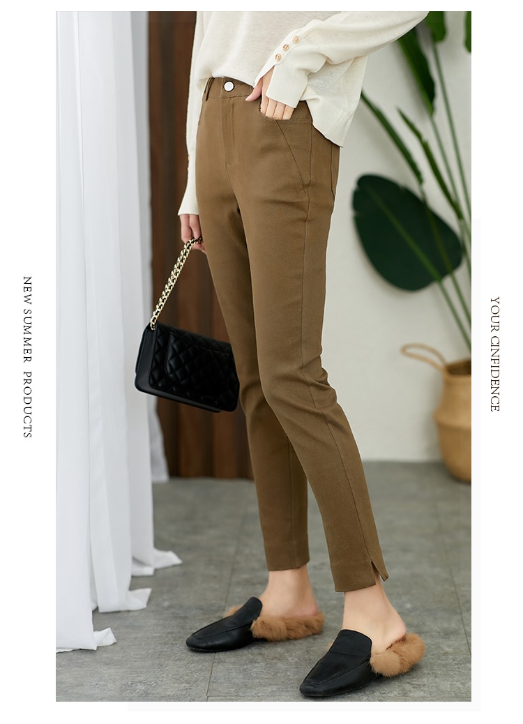 【现货7天】休闲小直筒九分裤女2023春秋修身裤脚小开叉时尚显瘦萝卜裤子