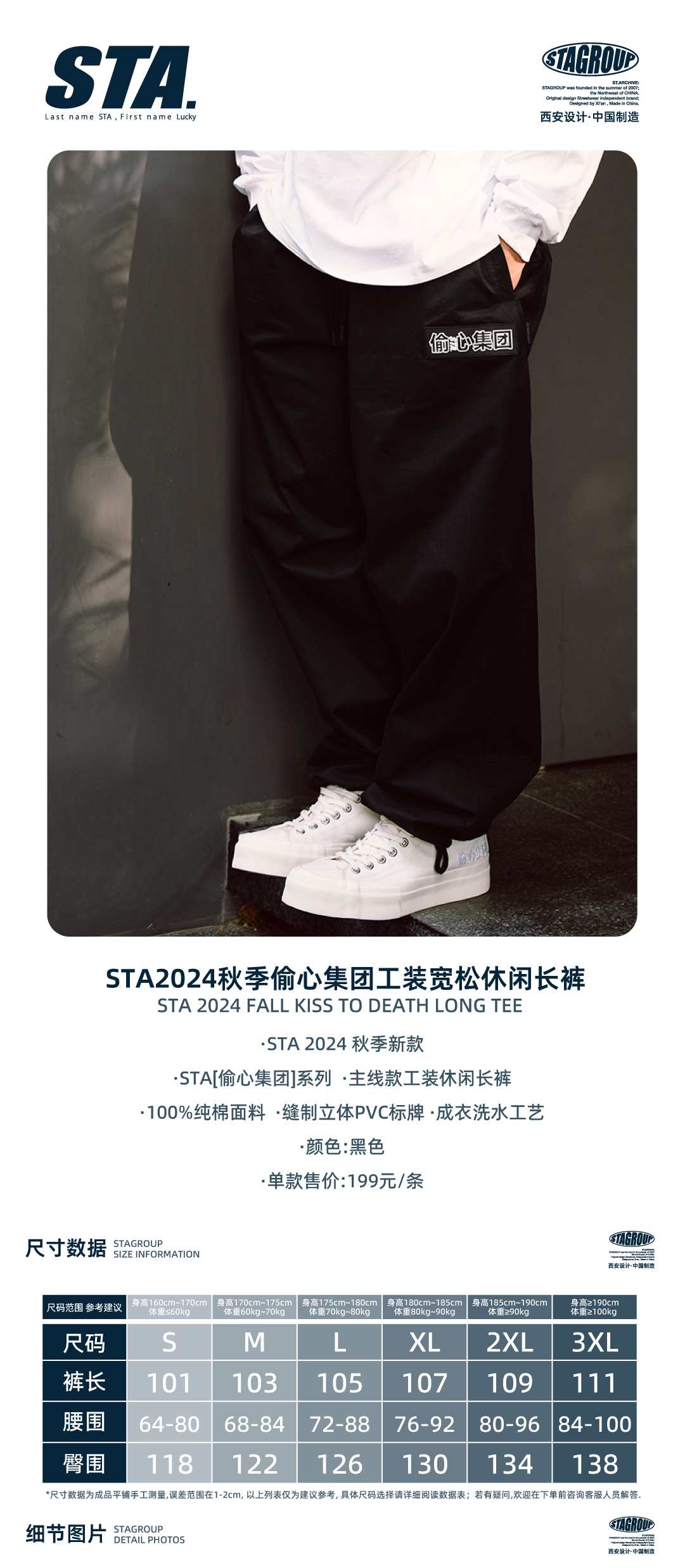STA2024秋季偷心集团经典基础黑色休闲长裤