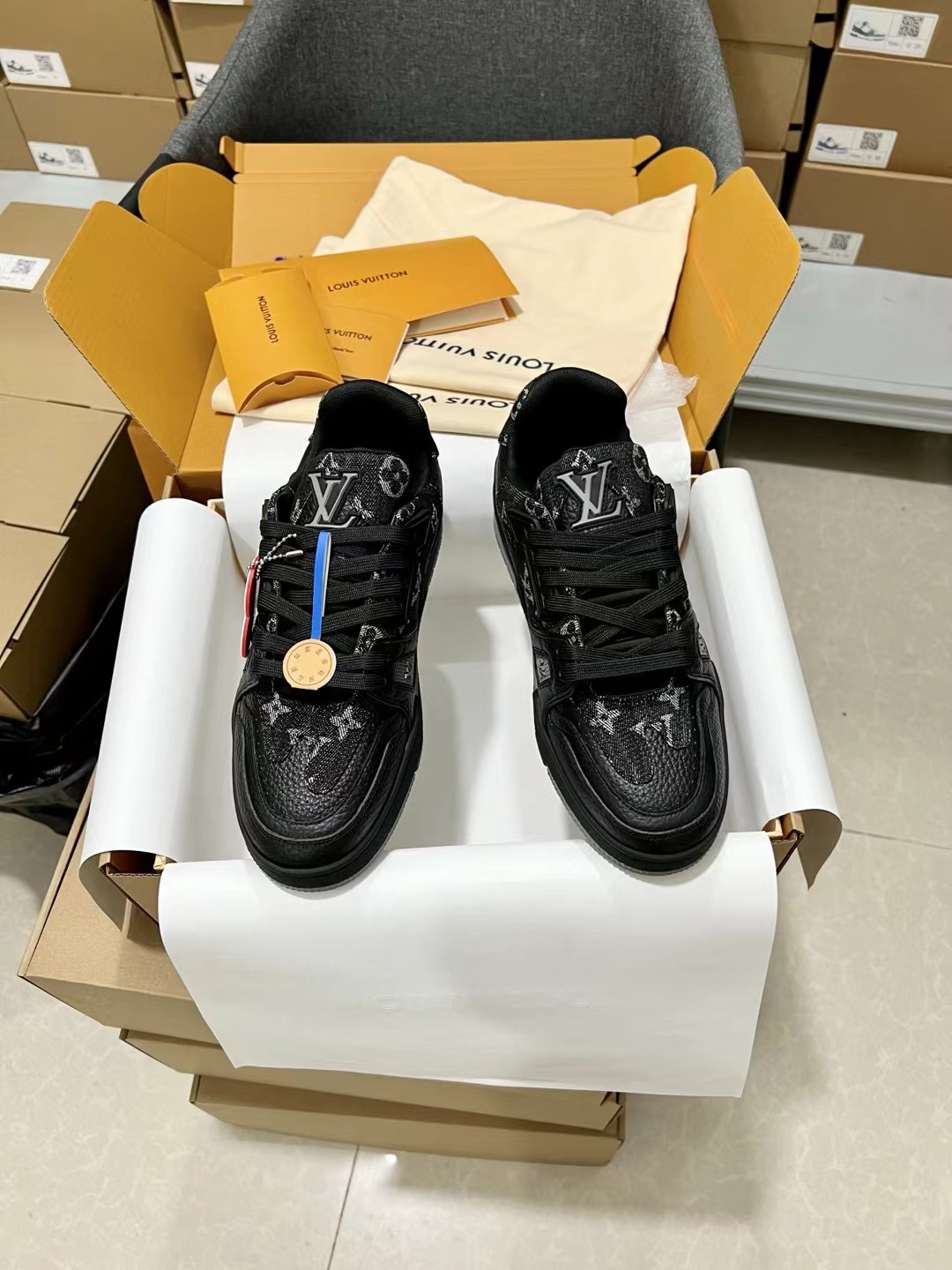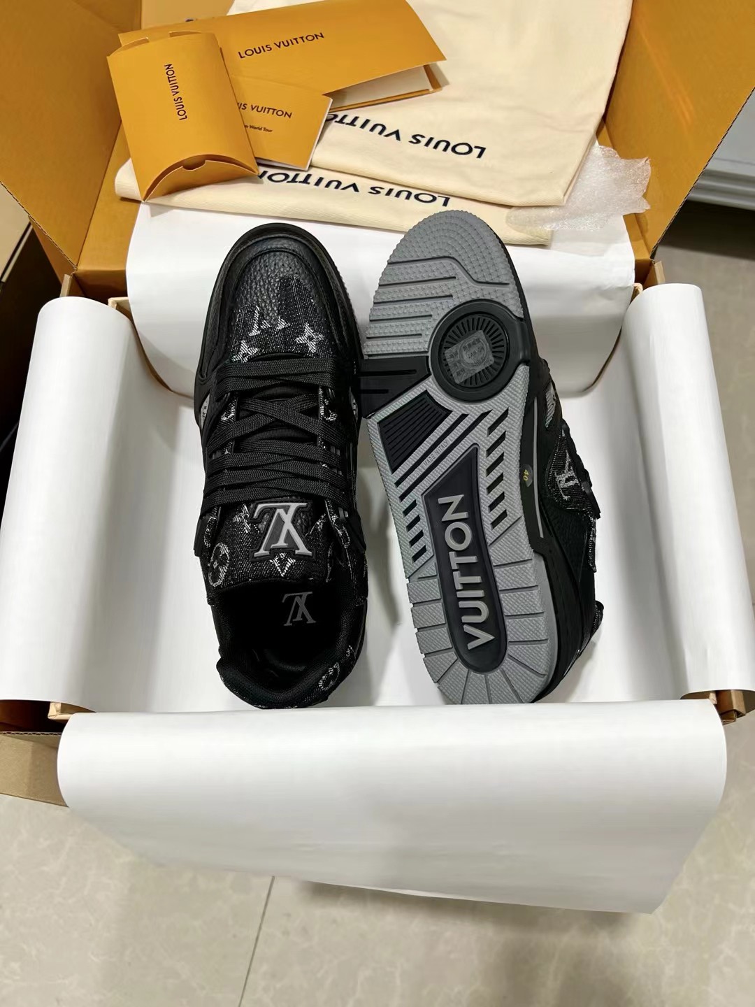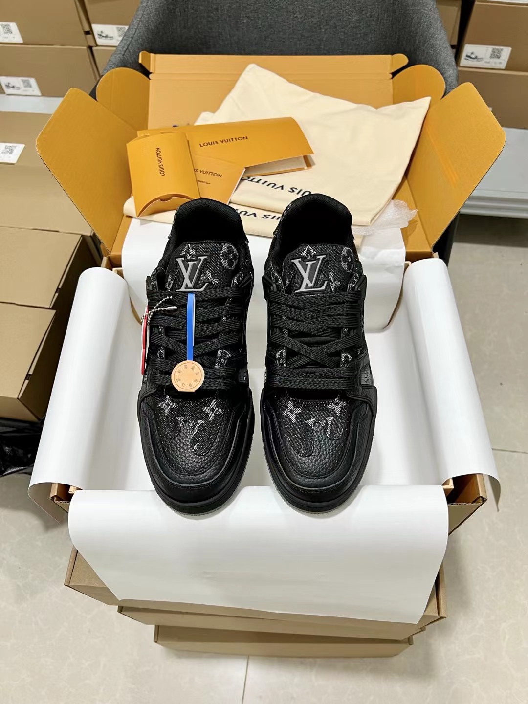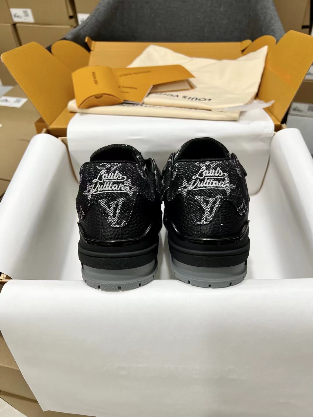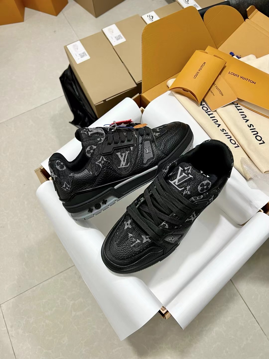 原版订制压纹粒面小牛皮(非市面超纤皮 大家要区分!)对称老花纹水洗牛仔布;所有配件辅料都是按照原版1:1定制的 就连鞋带的配色都是1:1订做。原版一致私模TPU大底。很多心机小设计必须有原版才看得的到做的好,精品就是在于细节!