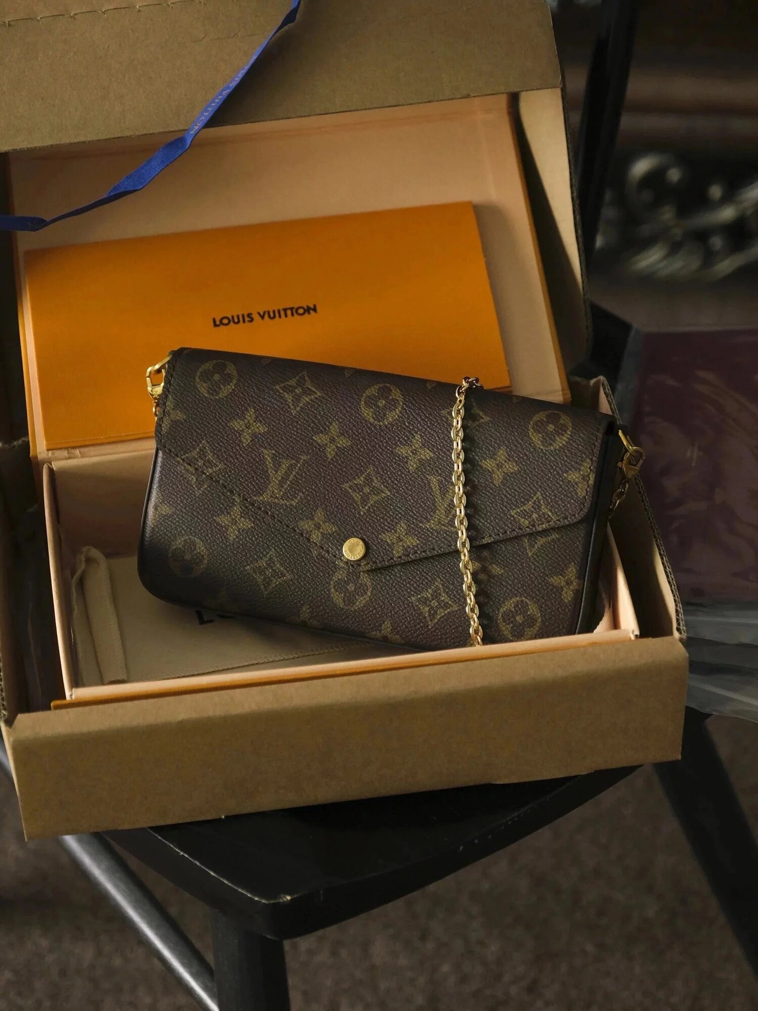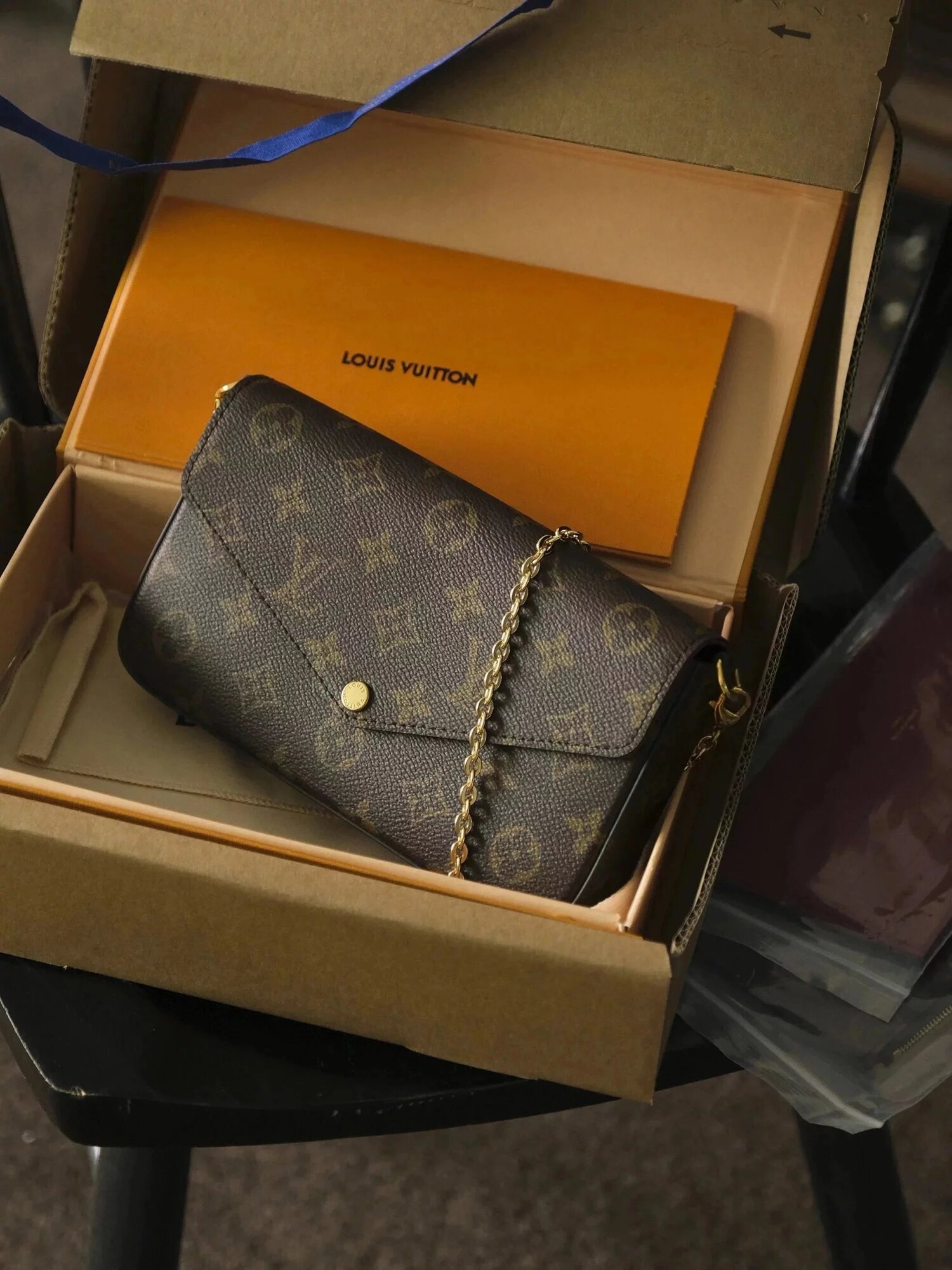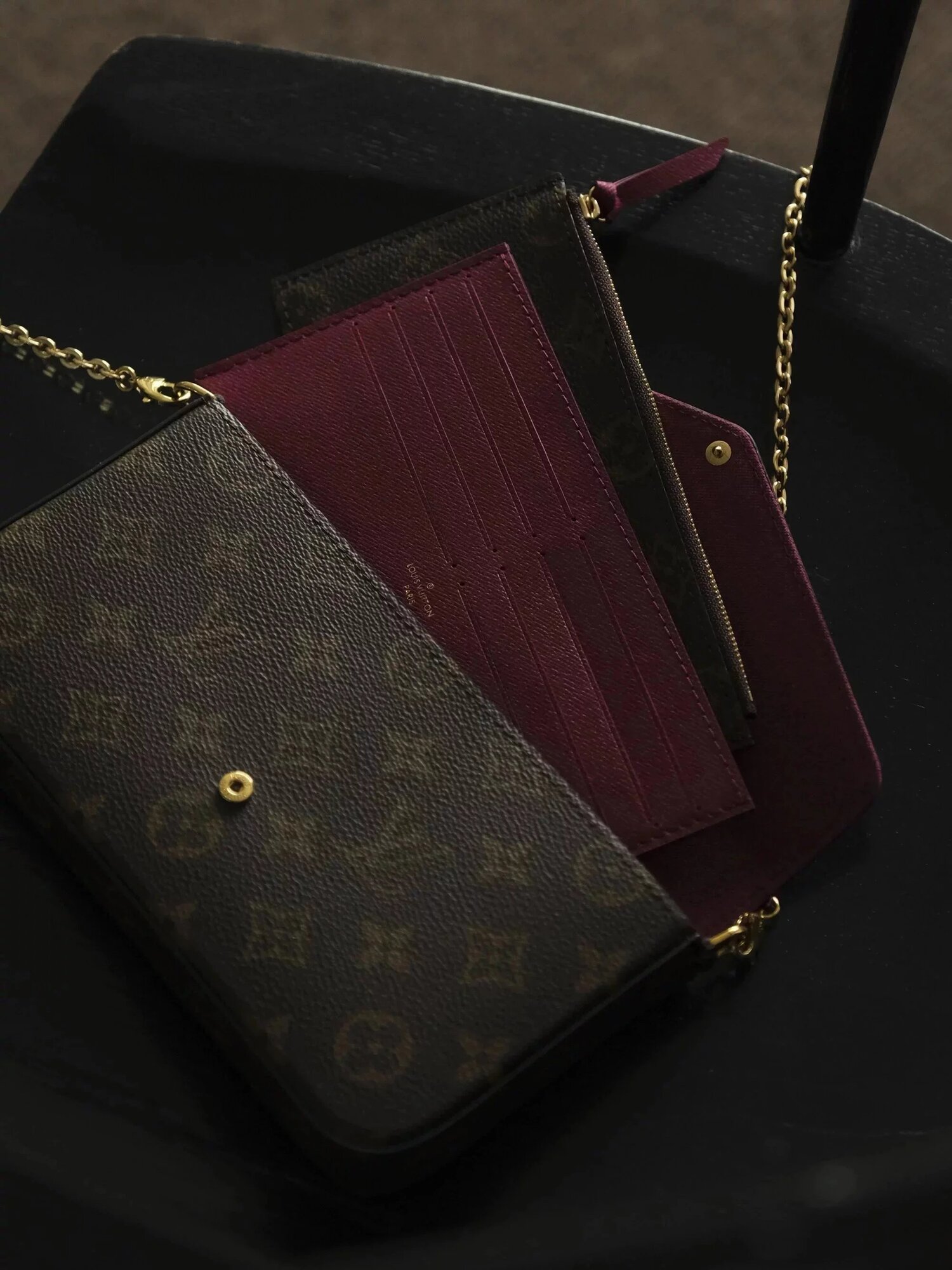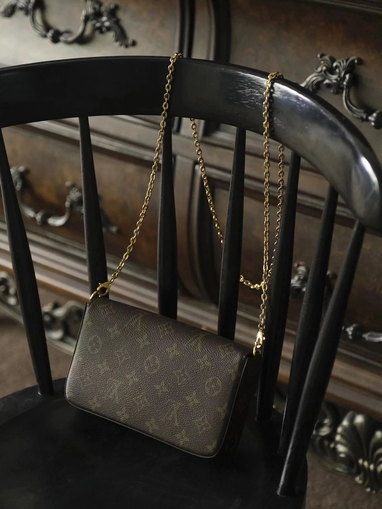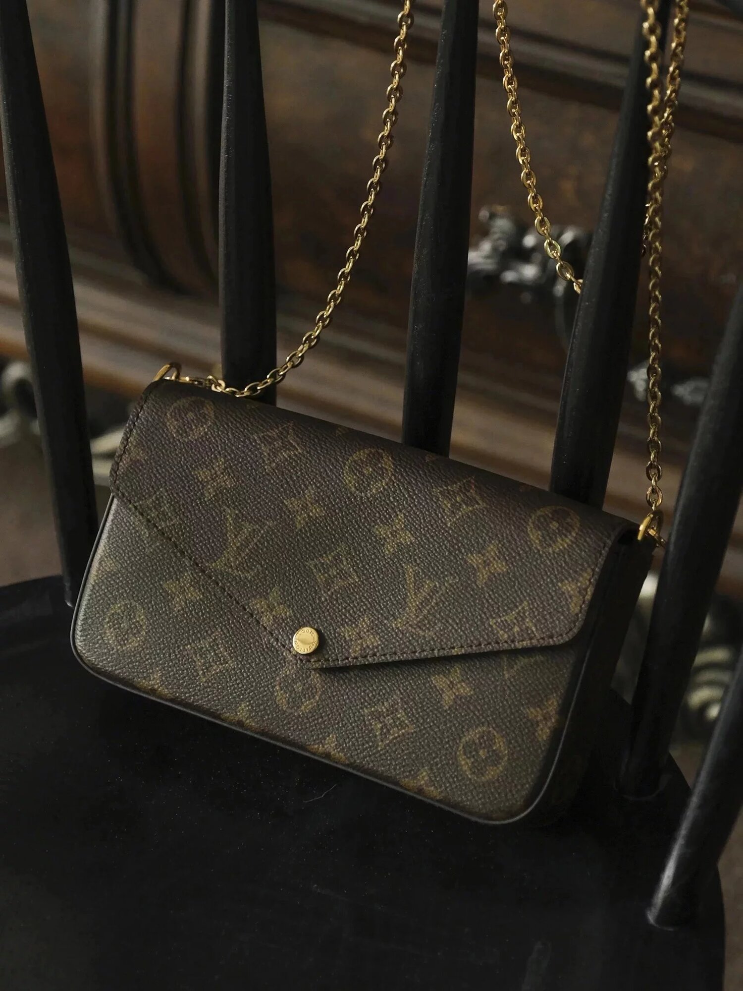 Lv三合一老花中的经典款 近几年的热款别看包身小 单肩斜挎 腋下都可 很多人认为不能装啥 不过还是能满足日常出行的 八个卡位相当够了 主要小卡包也可拿出单独使用 说三合一鸡肋的先了解清楚本来就是个小包 要那么能装可以去买neverfull购物袋了 经典百搭老花色经典 尺寸:21*11*2